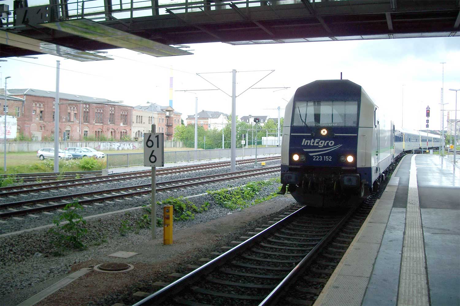 Chemnitz Hbf | 61,80 | km 79,73 der Strecke Dresden Hbf -0,048 - Chemnitz Hbf 79,73 - Zwickau Hbf 128,35 - Abzw. Werdau Bogendreieck (Neumarker Spitze) 136,23 (DW) |