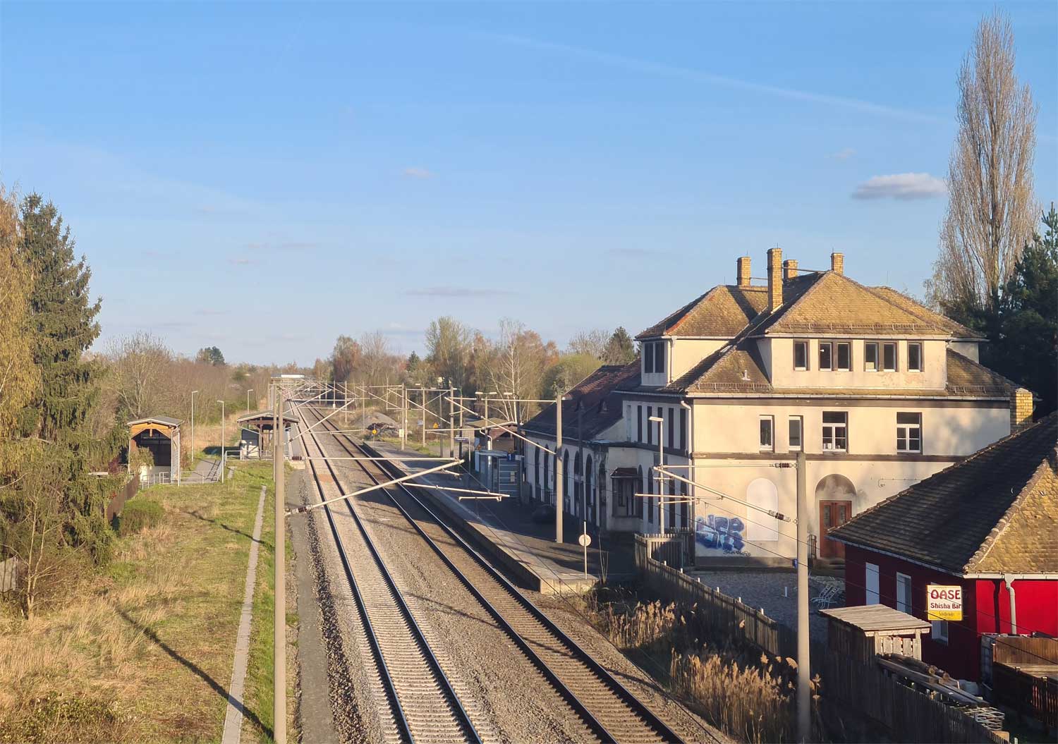 km 21,12 der Strecke Leipzig Bayerischer Bf 0,12 - Altenburg Hbf 38,63 - Werdau 73,81 - Reichenbach (Vogtl) 90,96 - Plauen ob. Bf 116,11 - Hof (Saale) 164,8 (LH) | ||