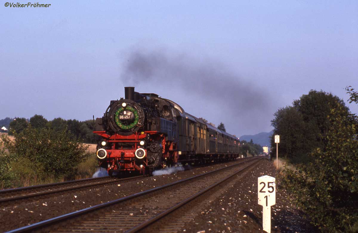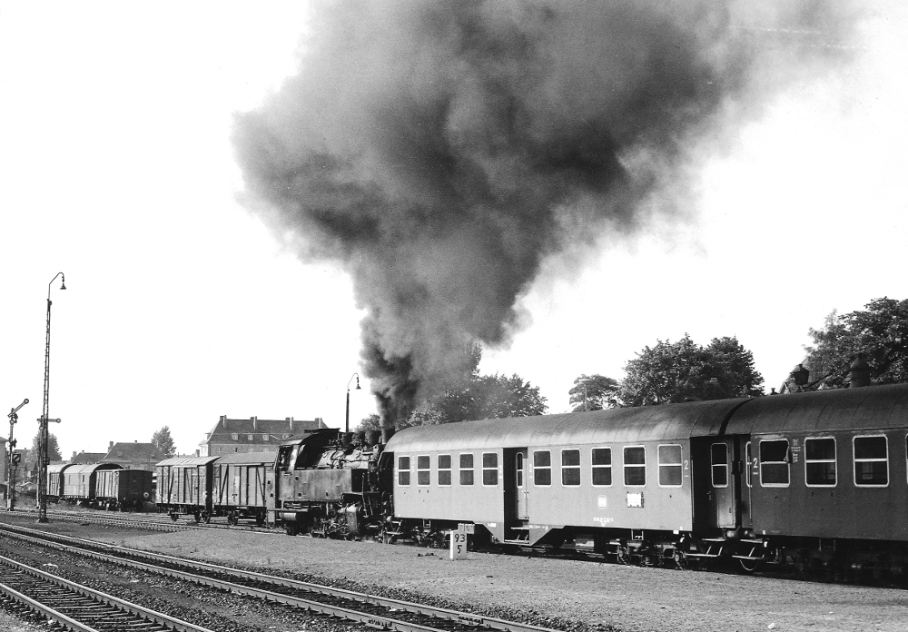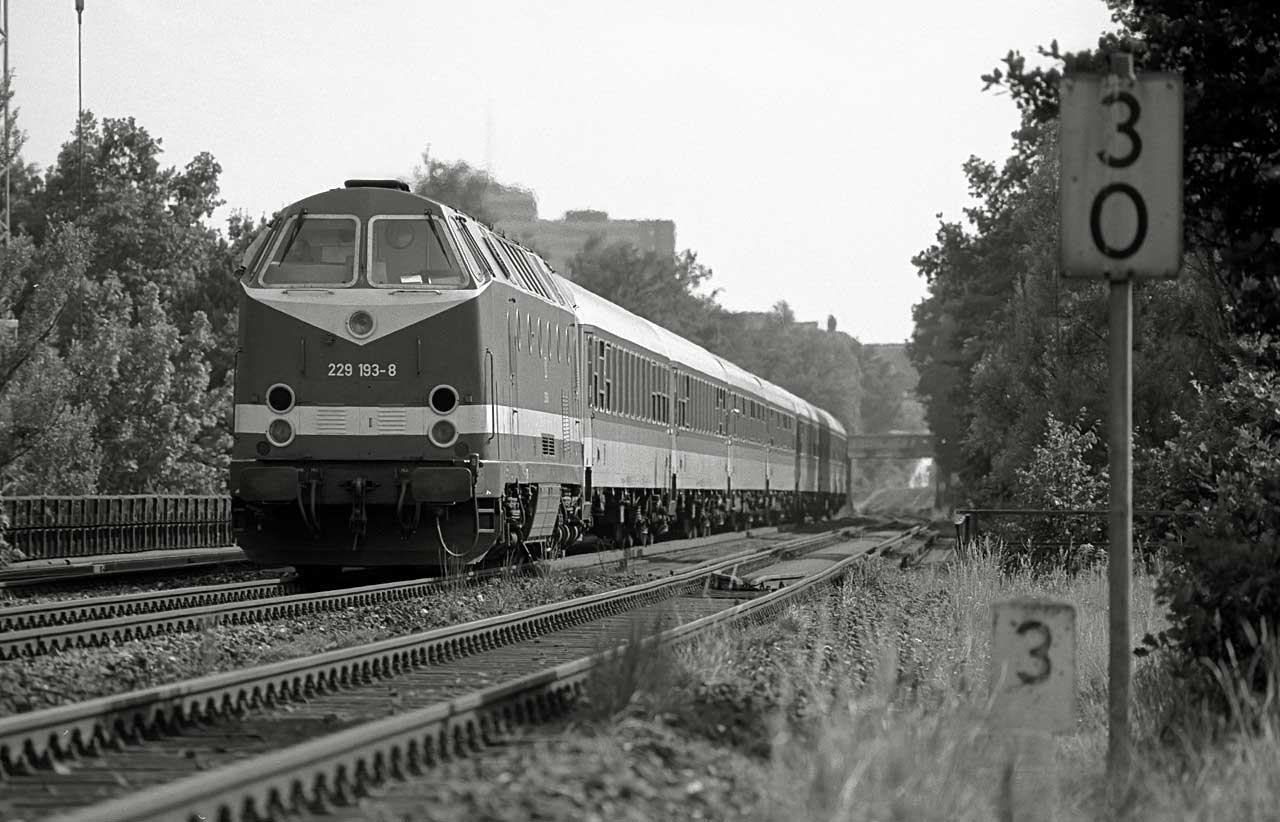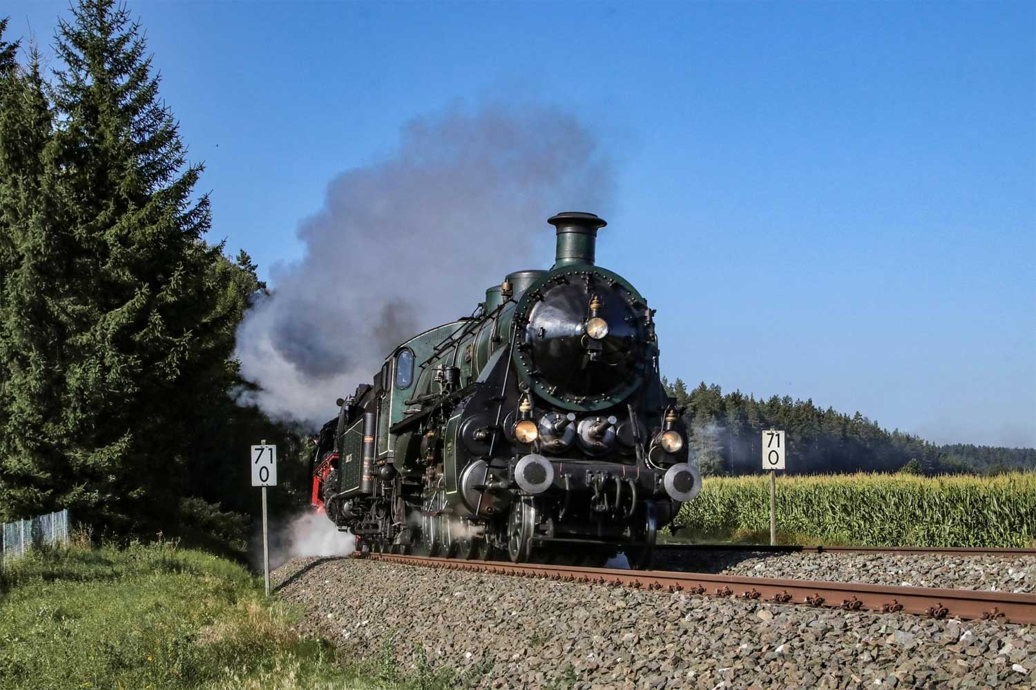 wurde wegen der erforderlichen Dampfheizung ab/bis Schirnding von tschechischen Dampfern befördert.