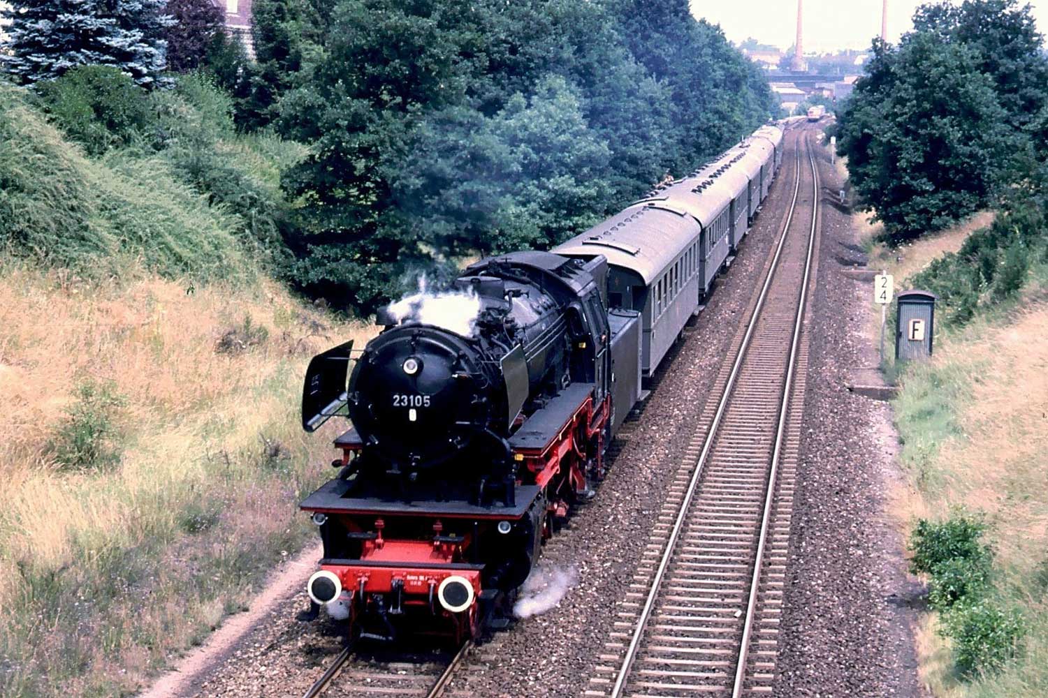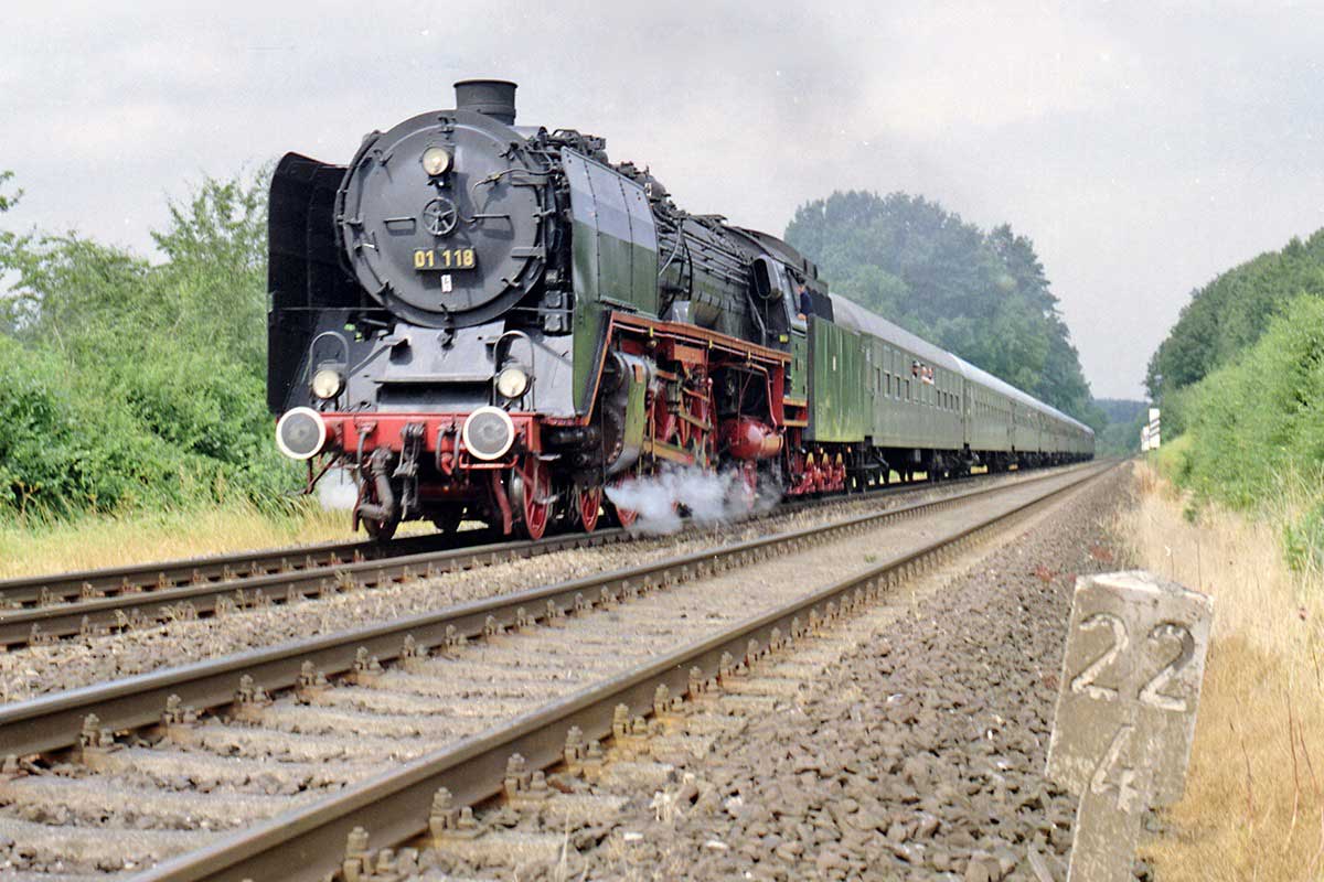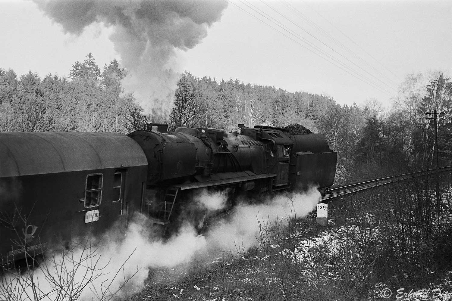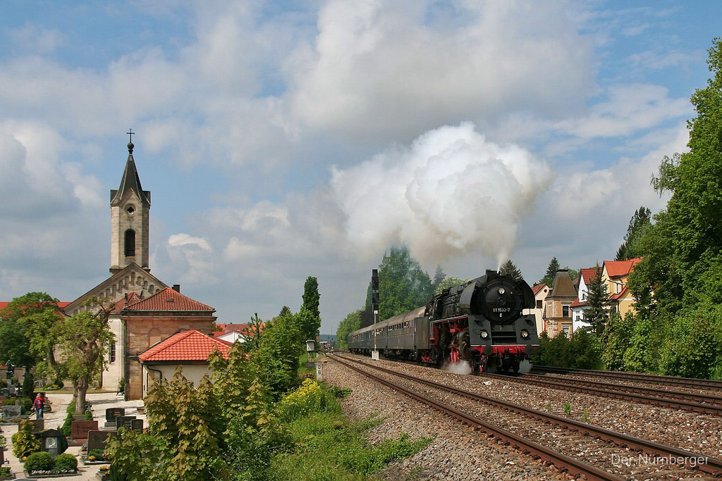 wurde wegen der erforderlichen Dampfheizung ab/bis Schirnding von tschechischen Dampfern befördert.