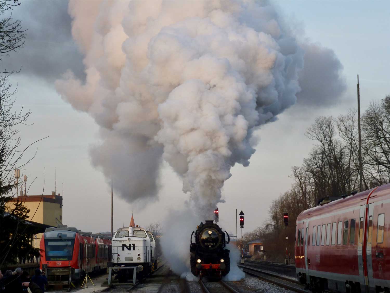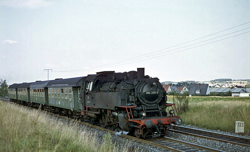 Die 064 389 hatte nachmittags den 4455 nach Schirnding gebracht und kehrte jetzt mit dem 4456 Schirnding (ab 16:21 Uhr) – Fichtelberg zurück.
