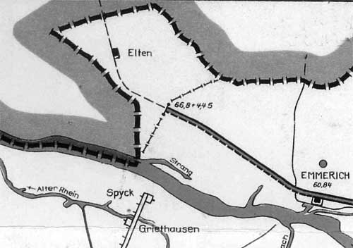 Elten | 69,7 | km 11,7 der Strecke Kleve 0,0 - Spyck 5,09 - Trajekt über den Rhein (bis 1926) - Welle 7,85 - Elten 11,7 |