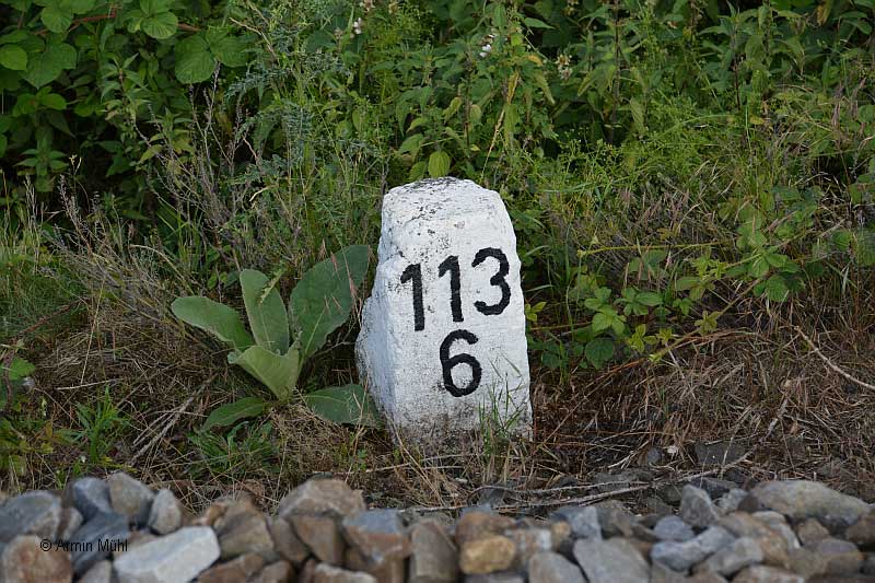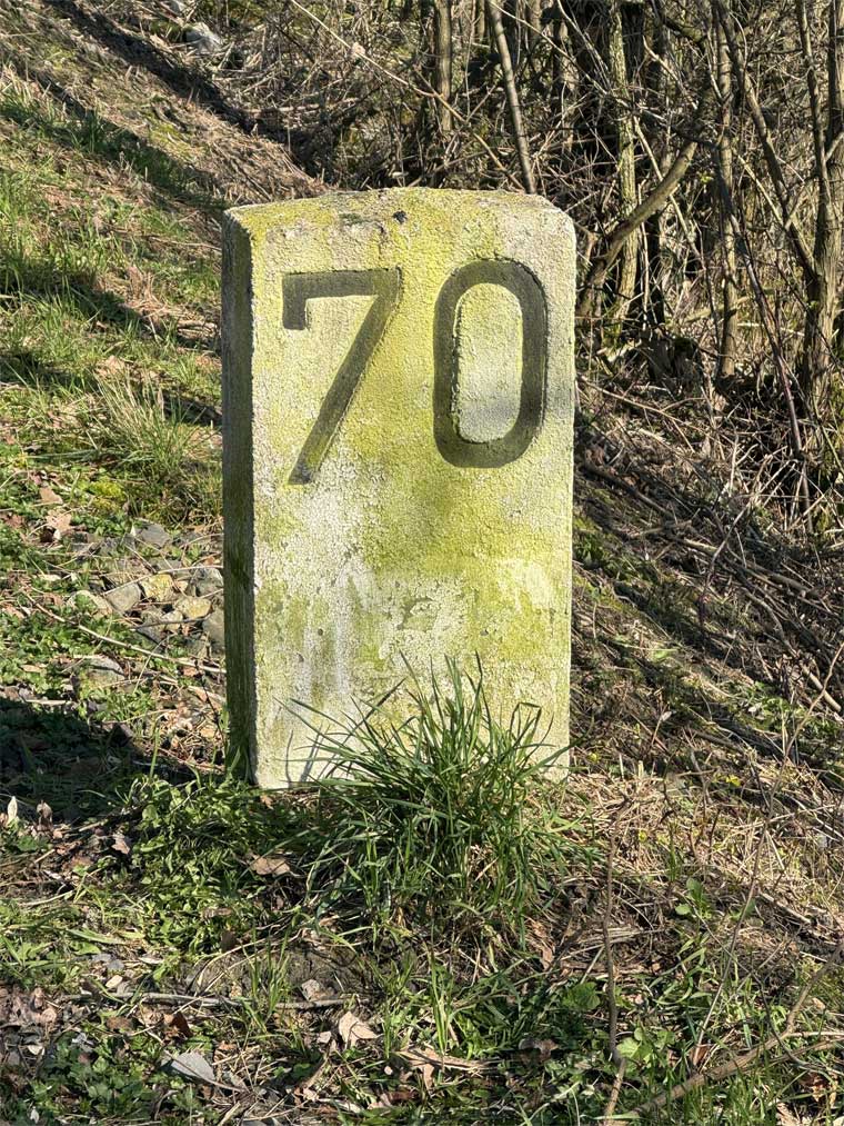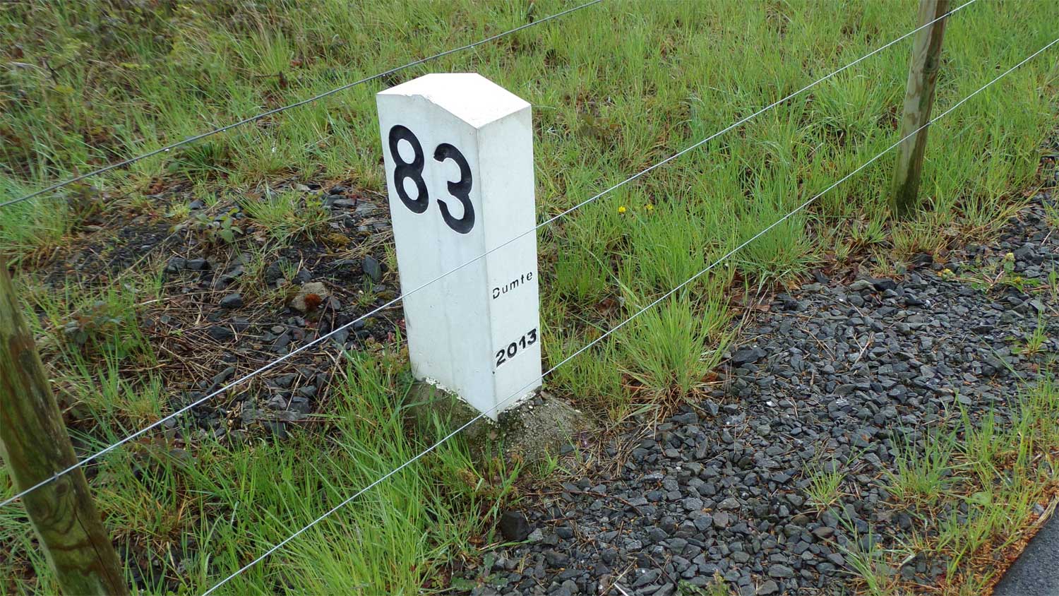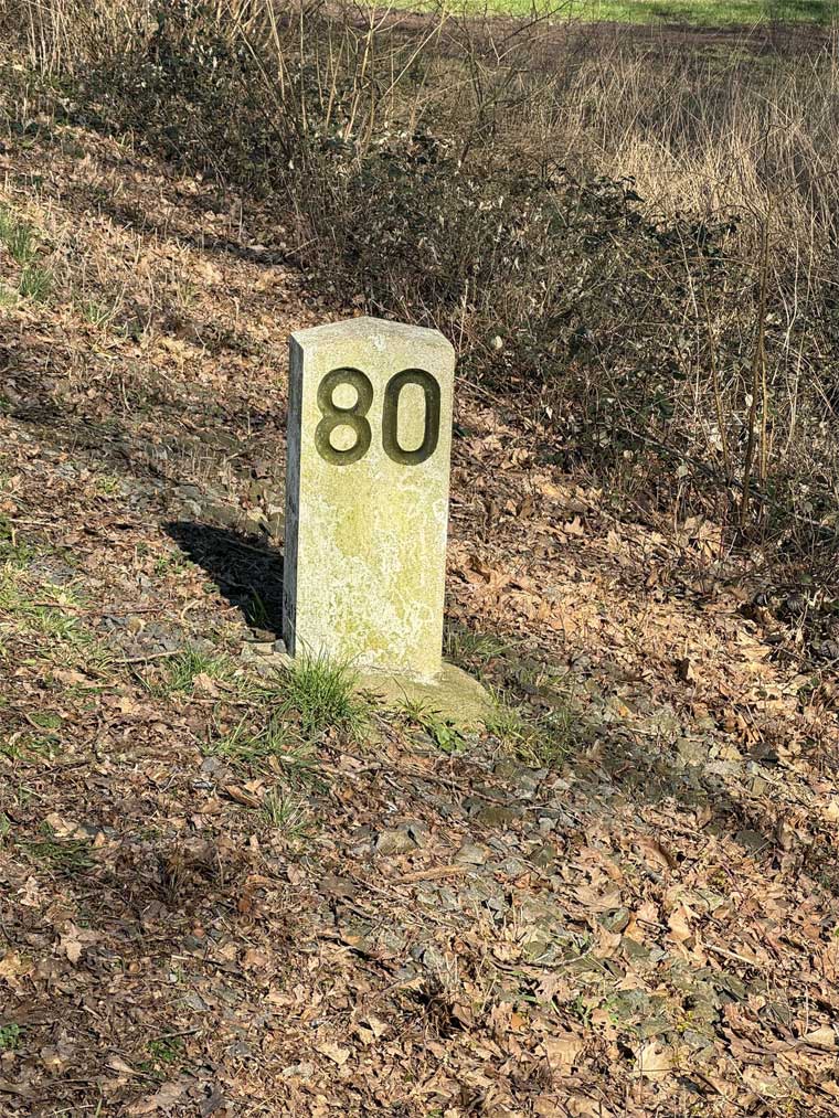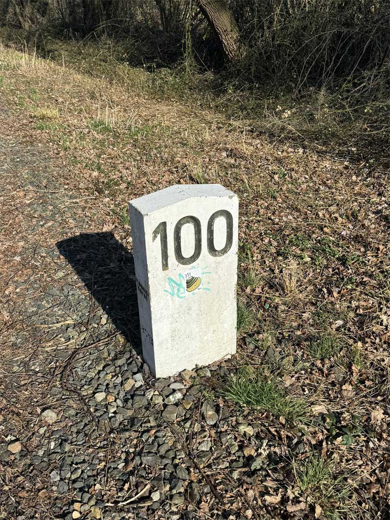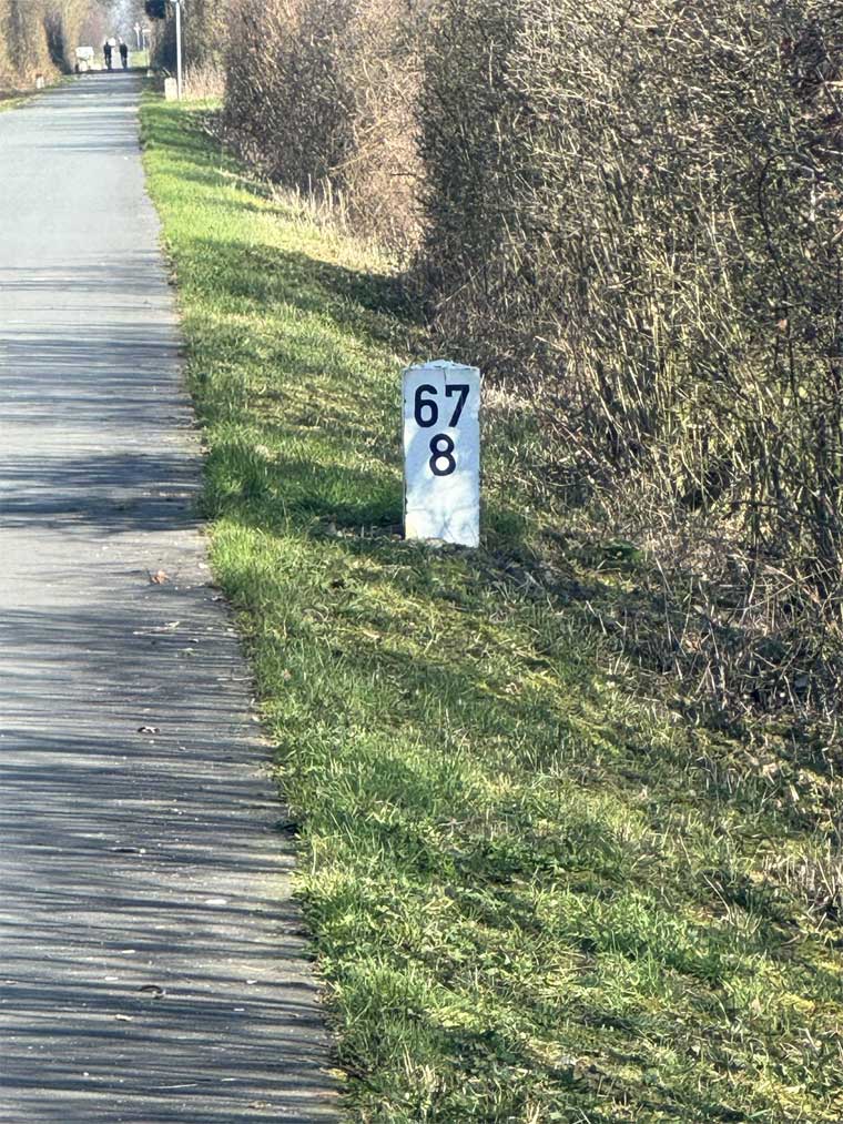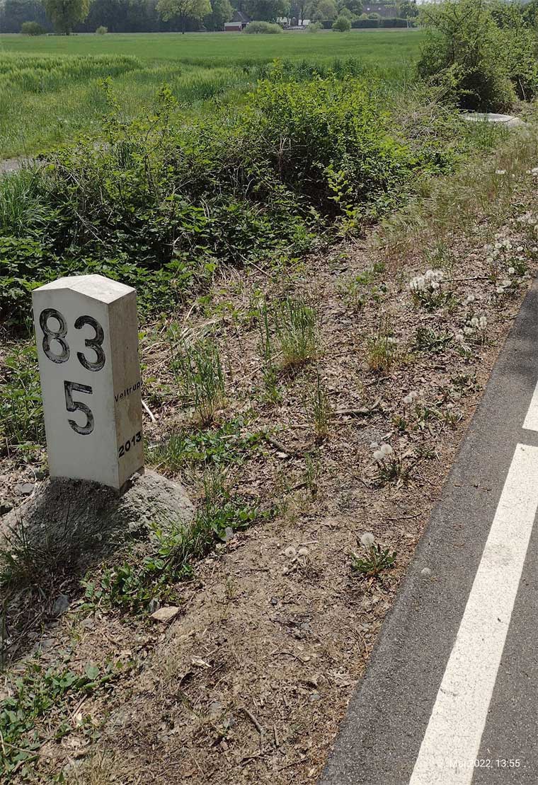 km 83,0 - liebevoll restaurierte Kilometersteine am Rande des Radweges