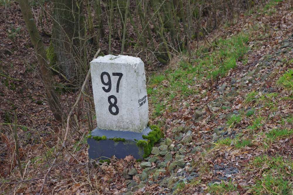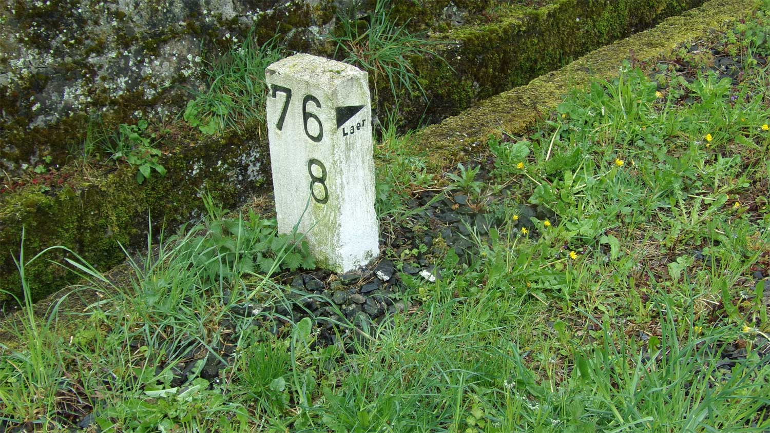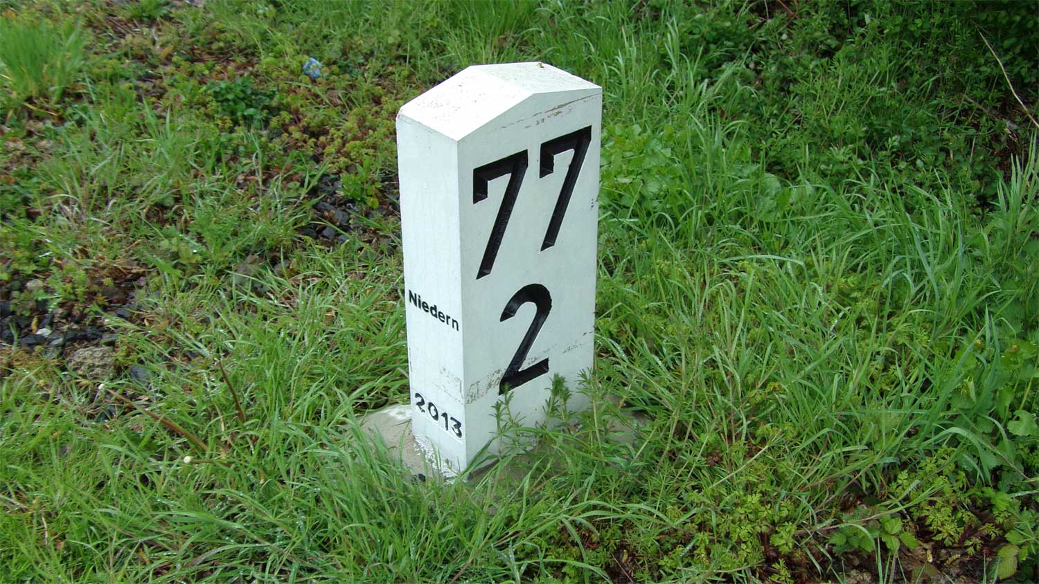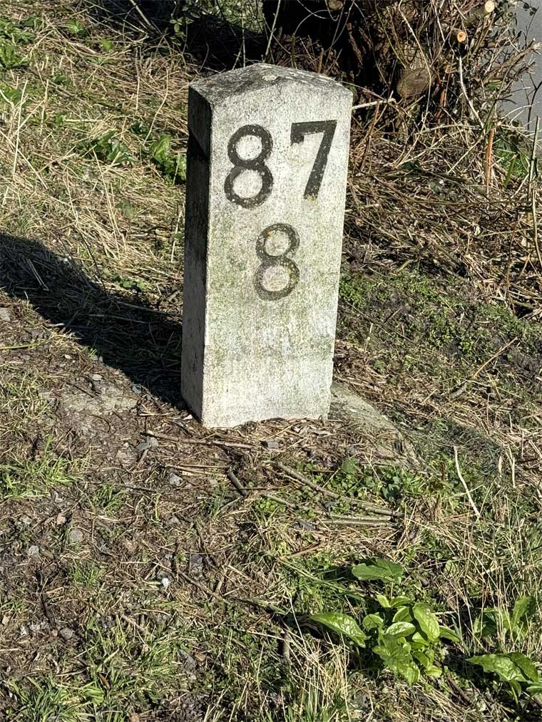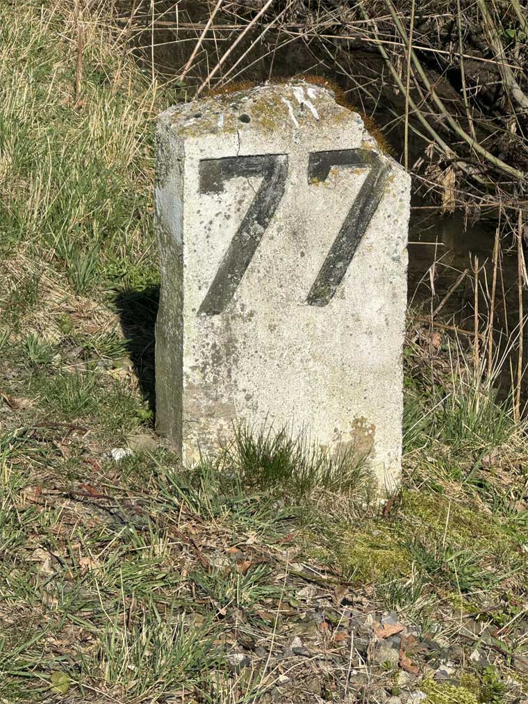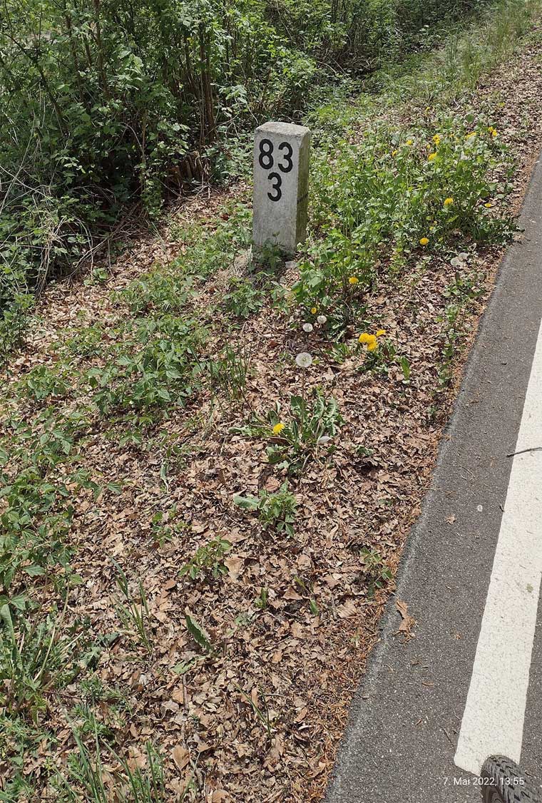 km 83,0 - liebevoll restaurierte Kilometersteine am Rande des Radweges