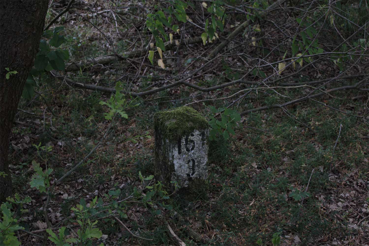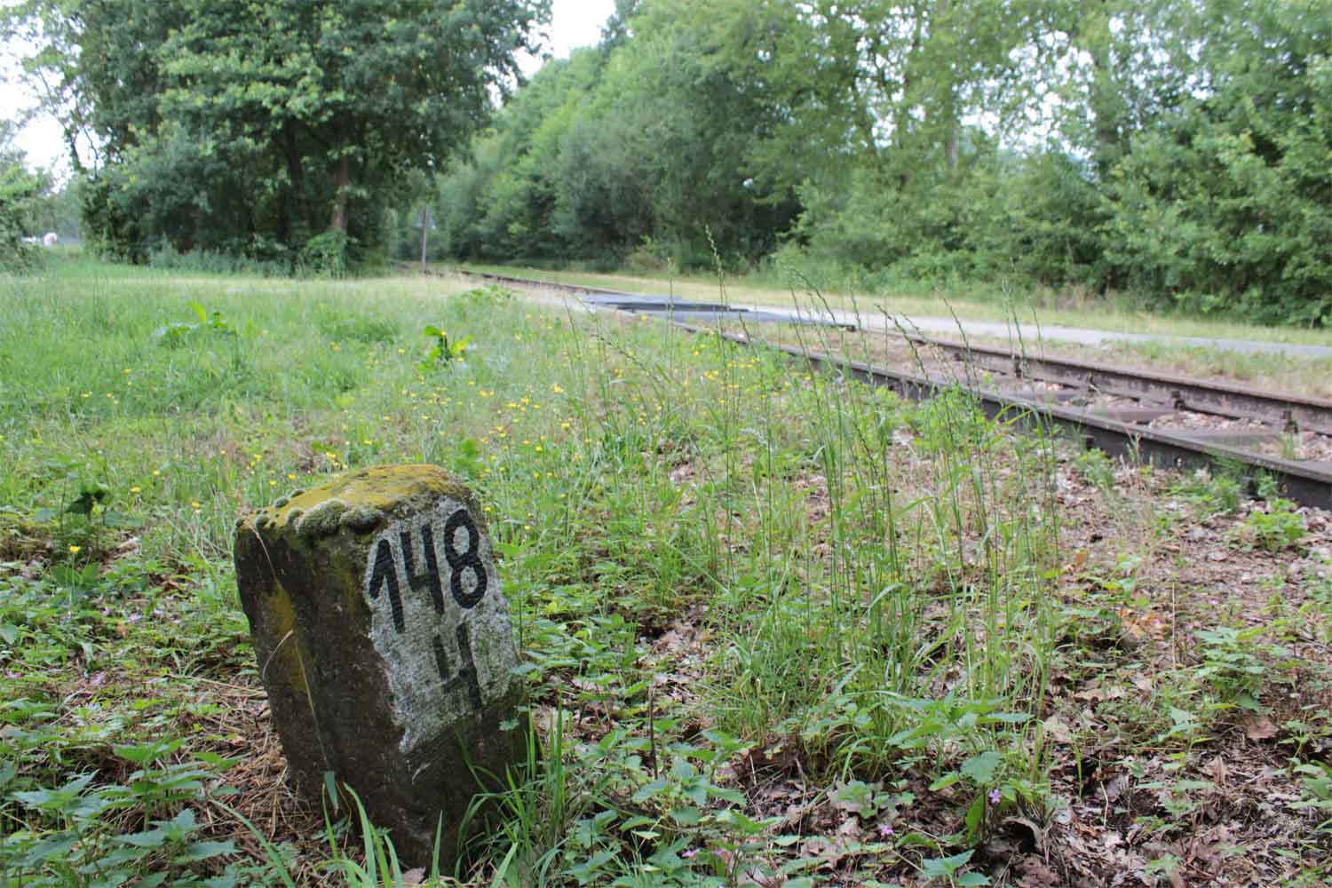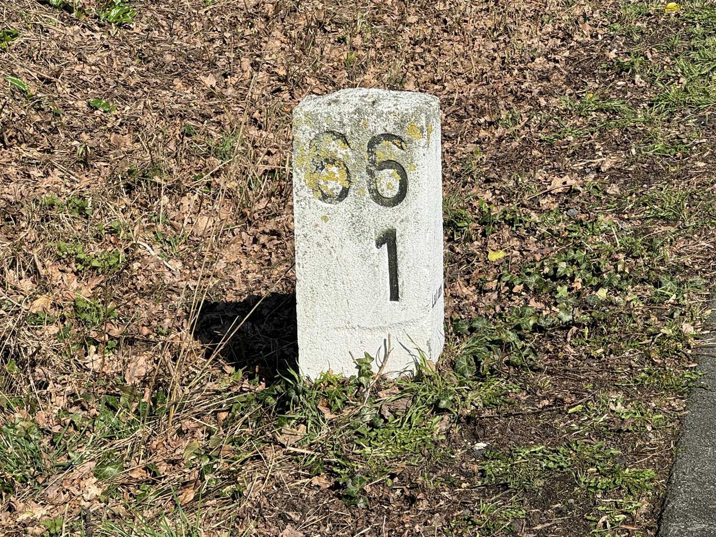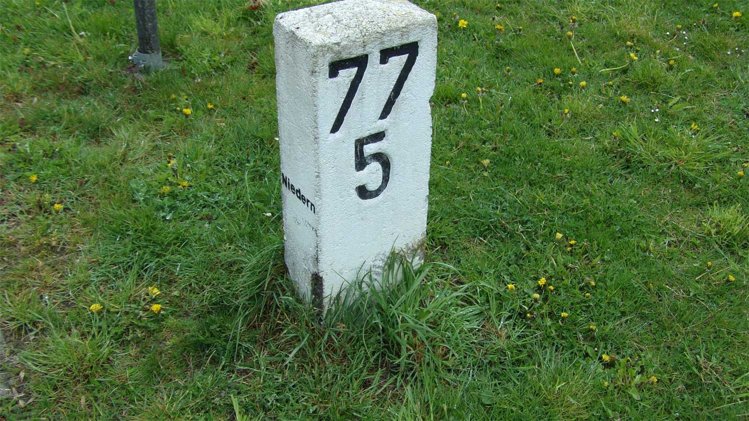 km 83,0 - liebevoll restaurierte Kilometersteine am Rande des Radweges