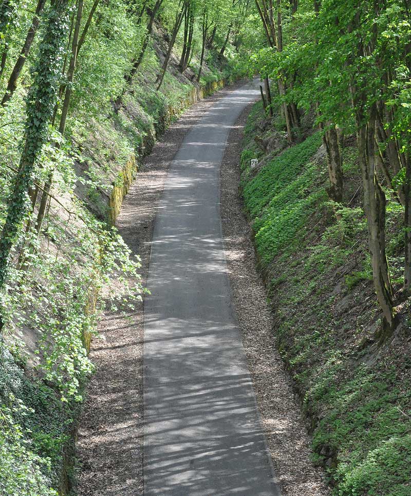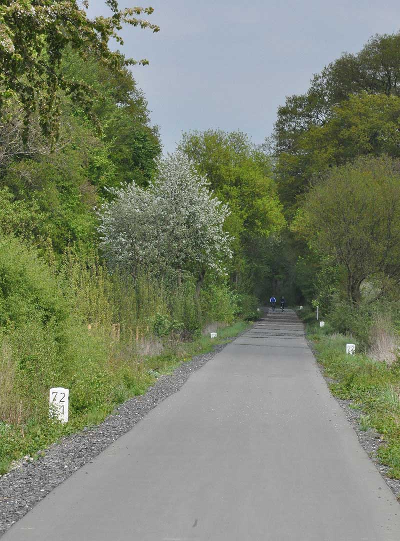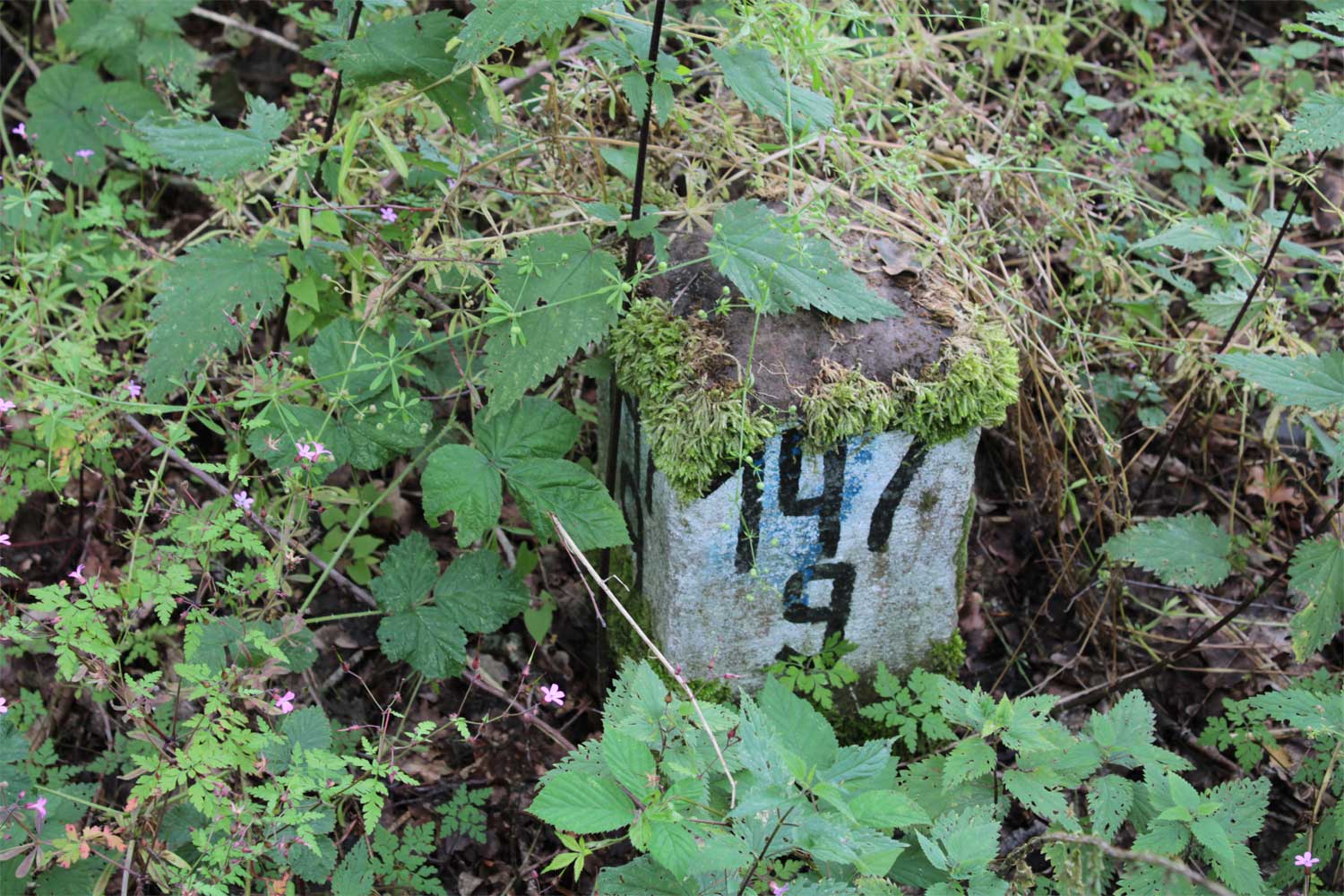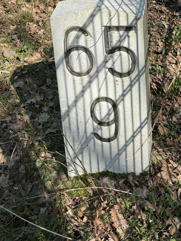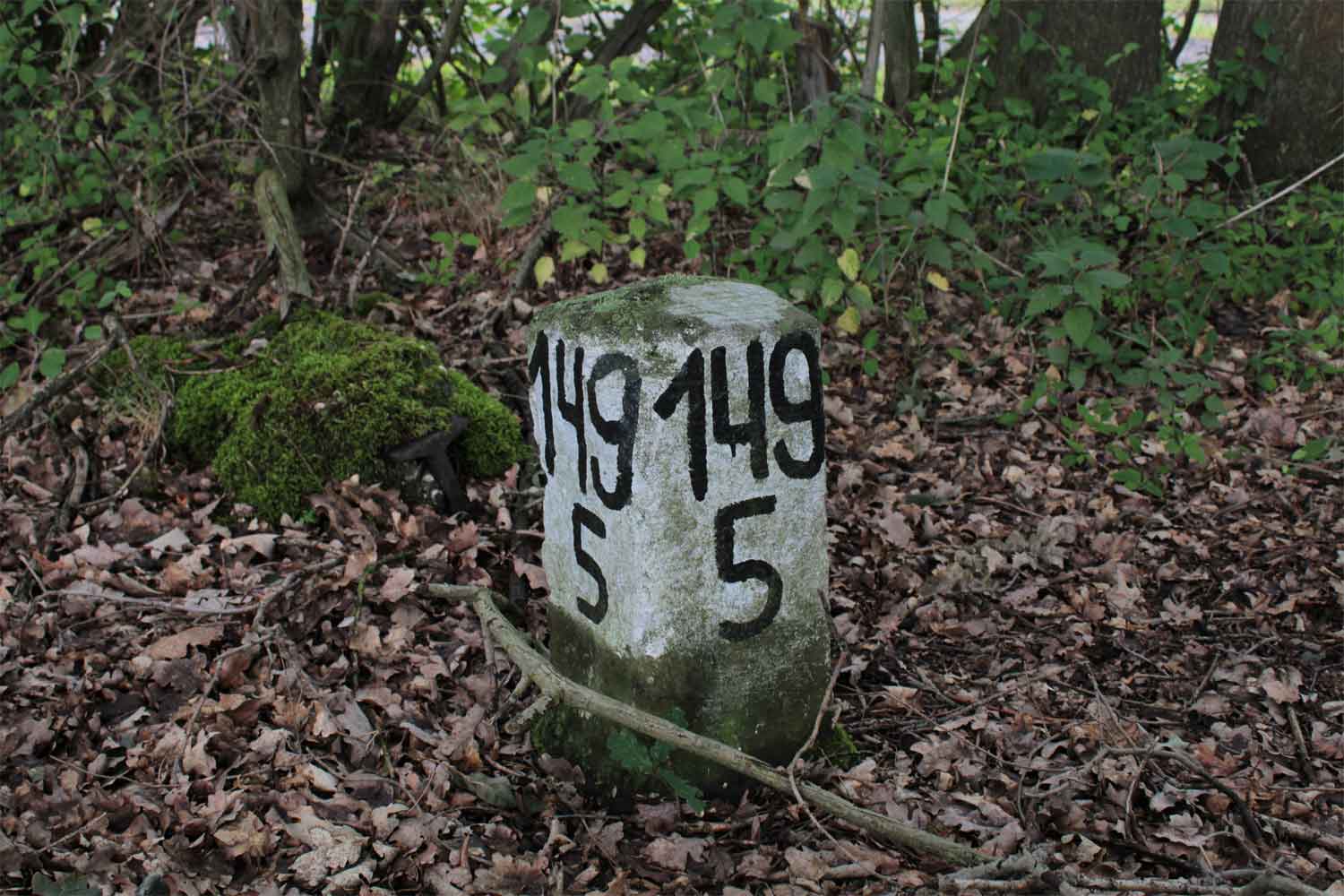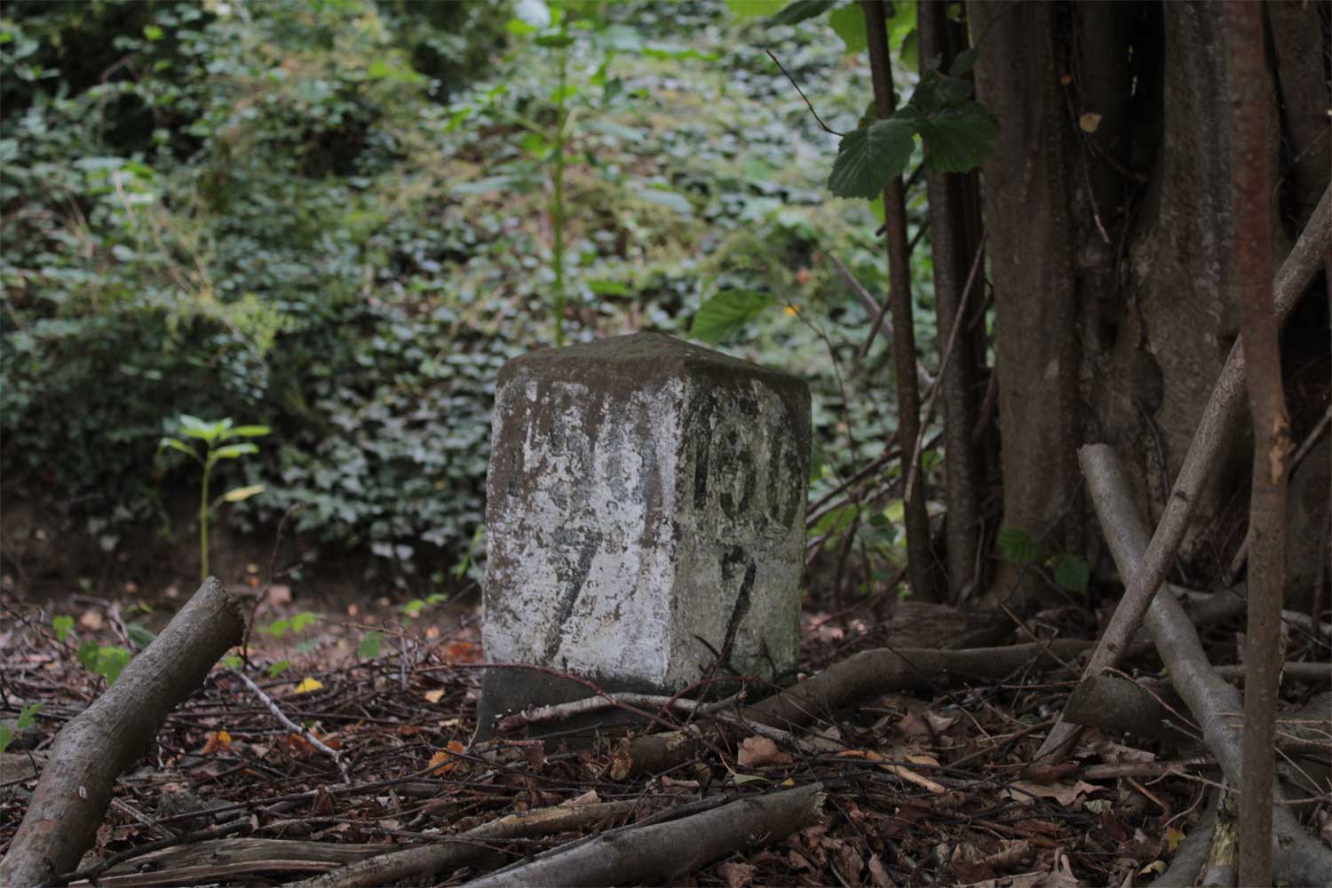km 83,0 - liebevoll restaurierte Kilometersteine am Rande des Radweges