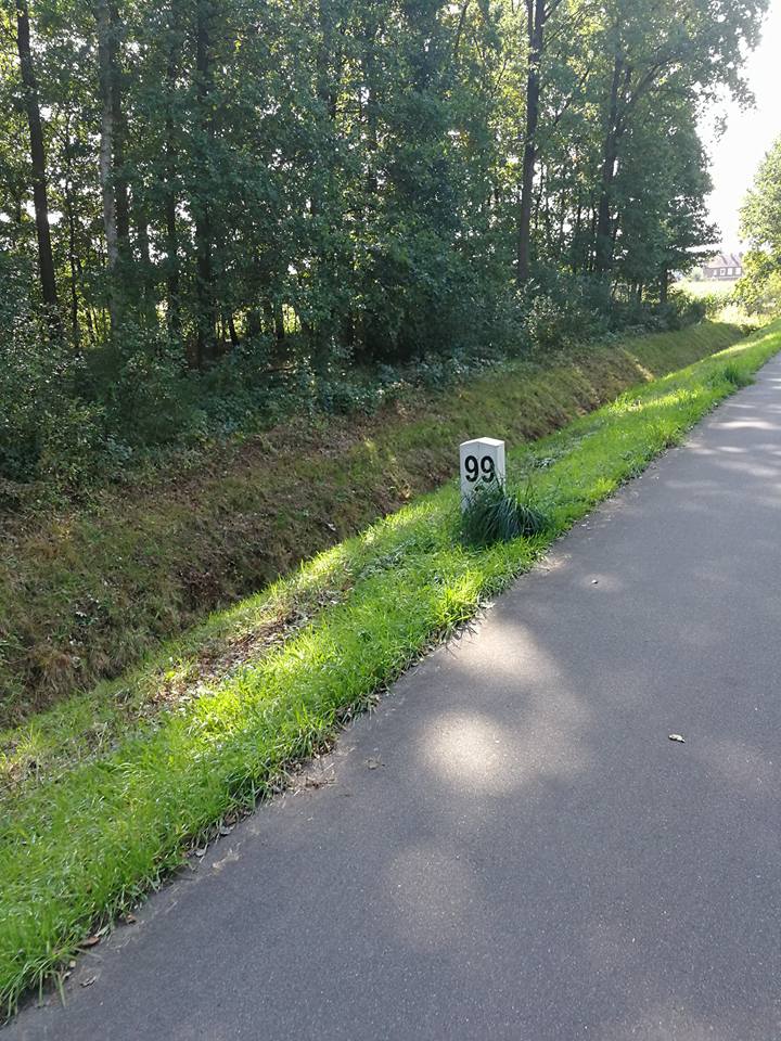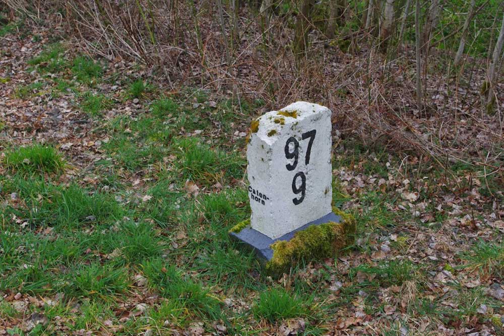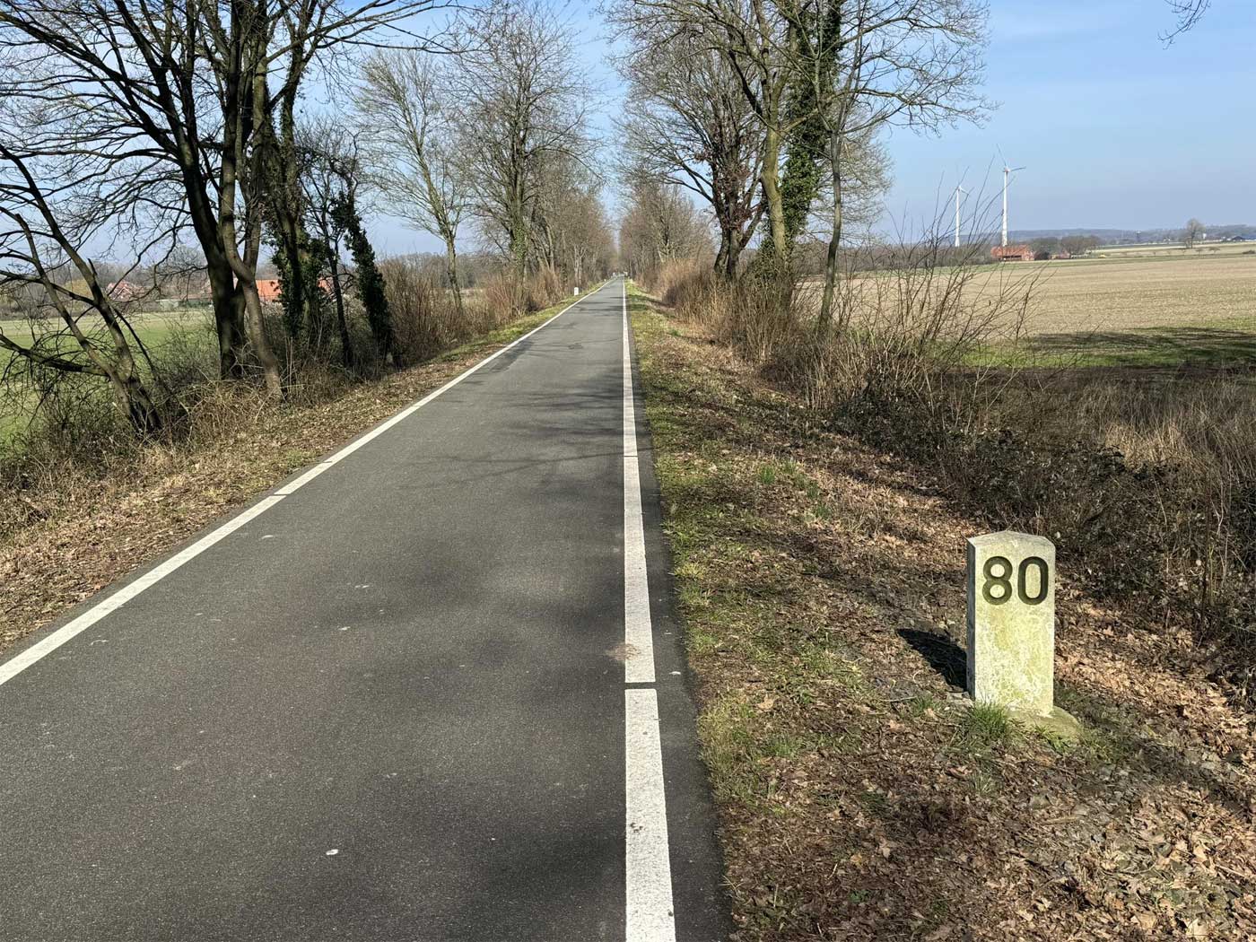 km 97,8 zwischen St. Arnold und Hauenhorst - liebevoll restaurierte Kilometersteine am Rande des Radweges