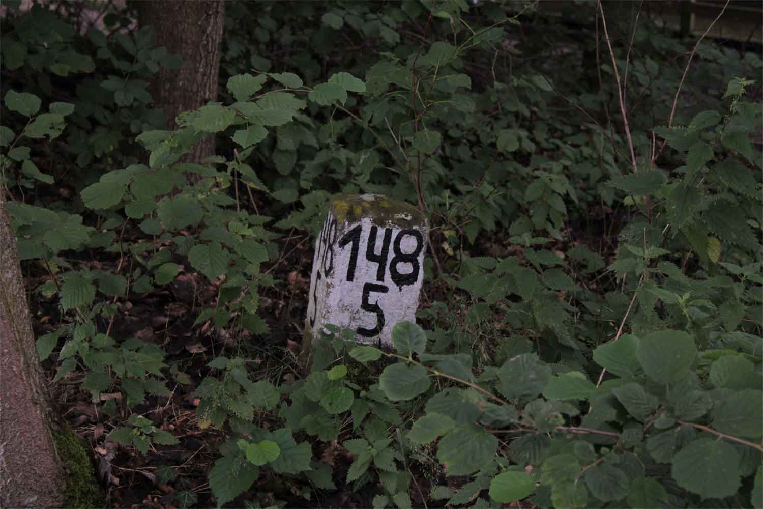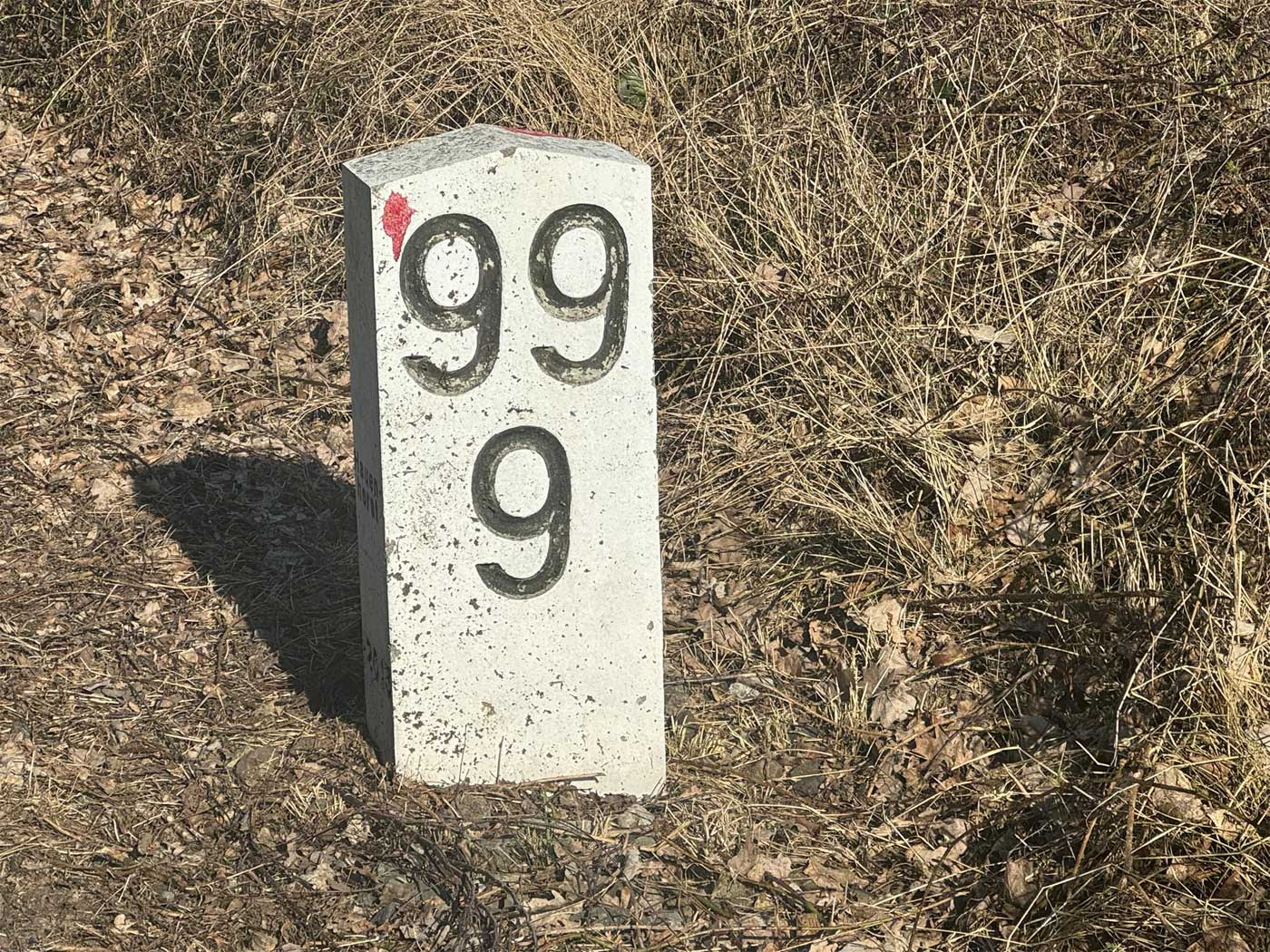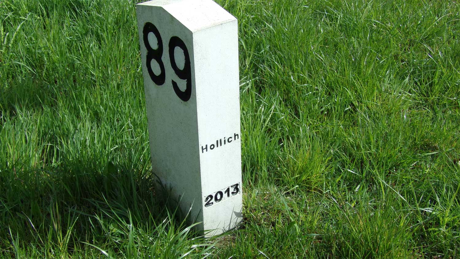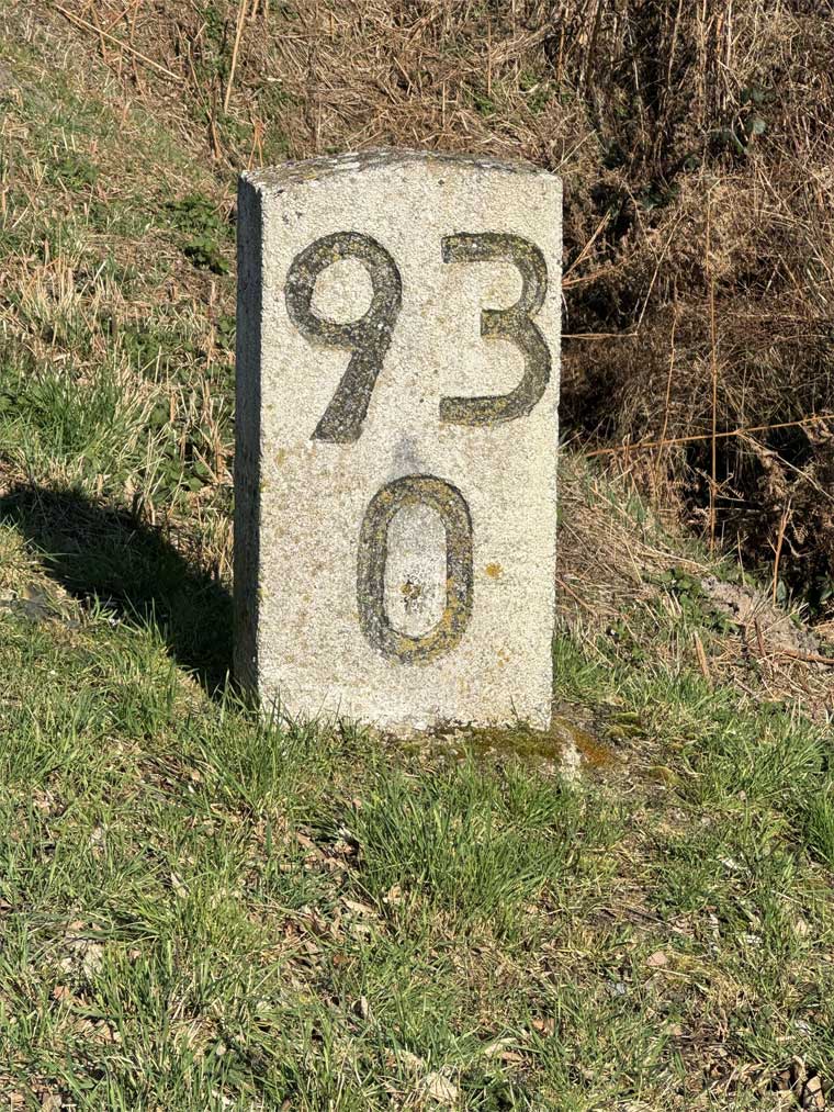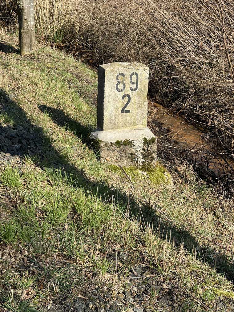km 89,0 - liebevoll restaurierte Kilometersteine am Rande des Radweges