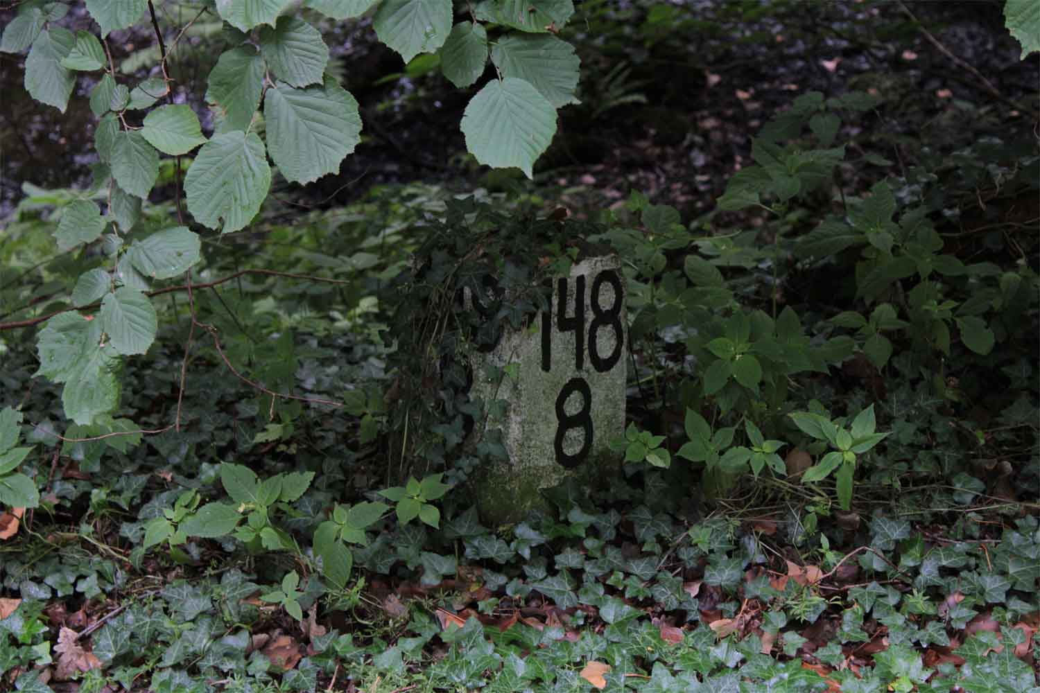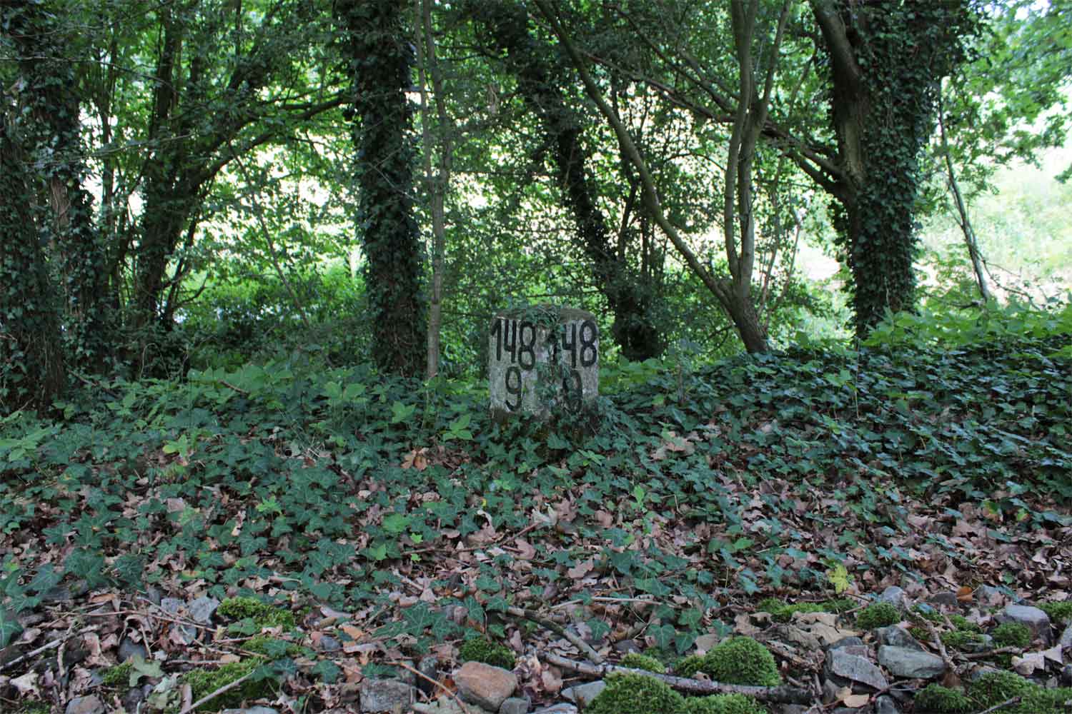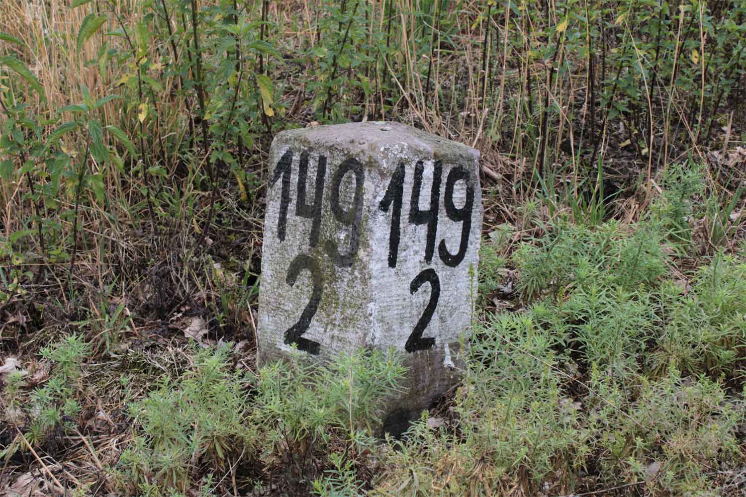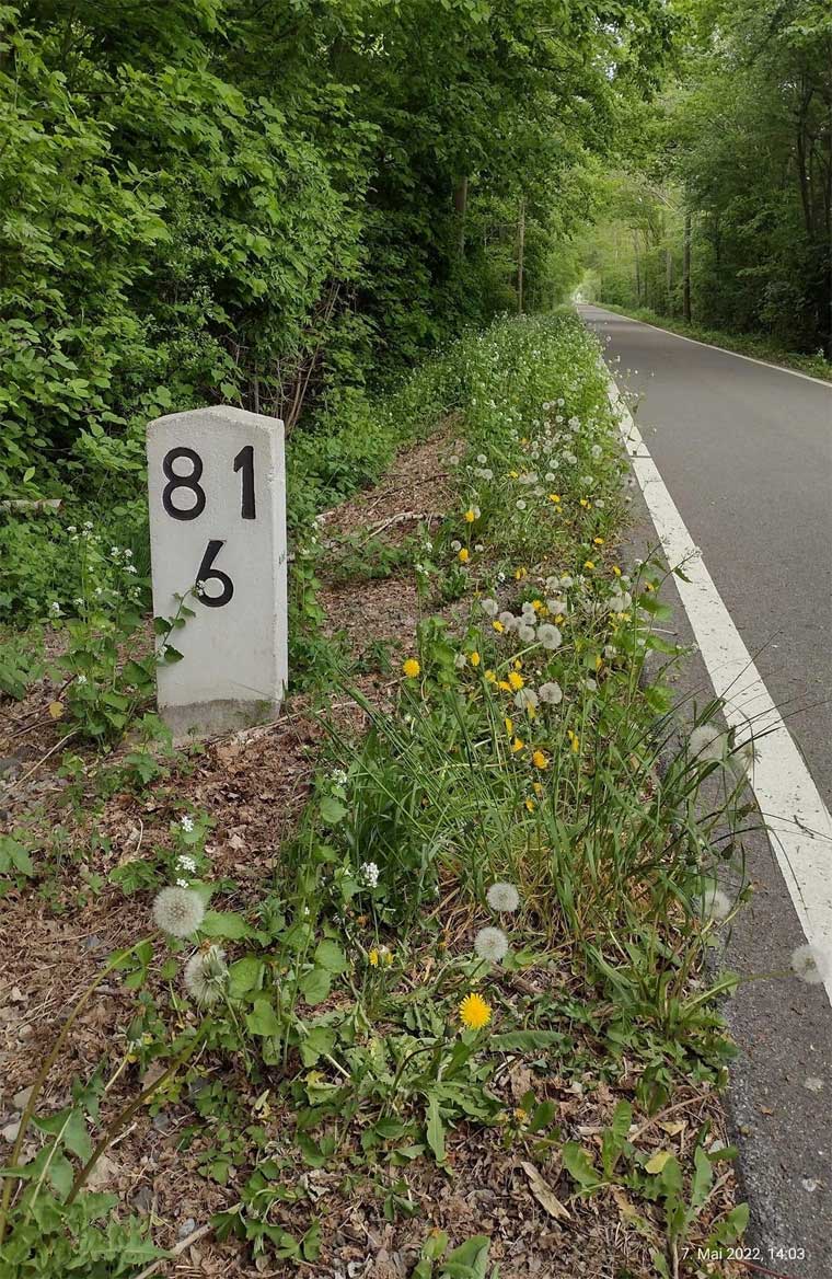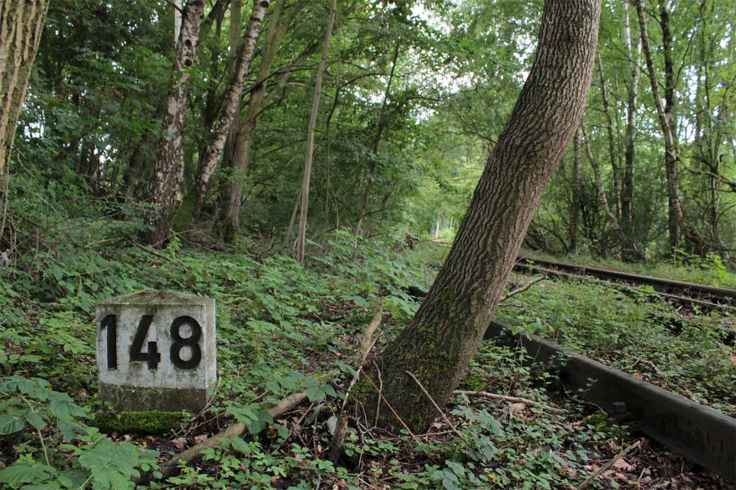km 89,0 - liebevoll restaurierte Kilometersteine am Rande des Radweges