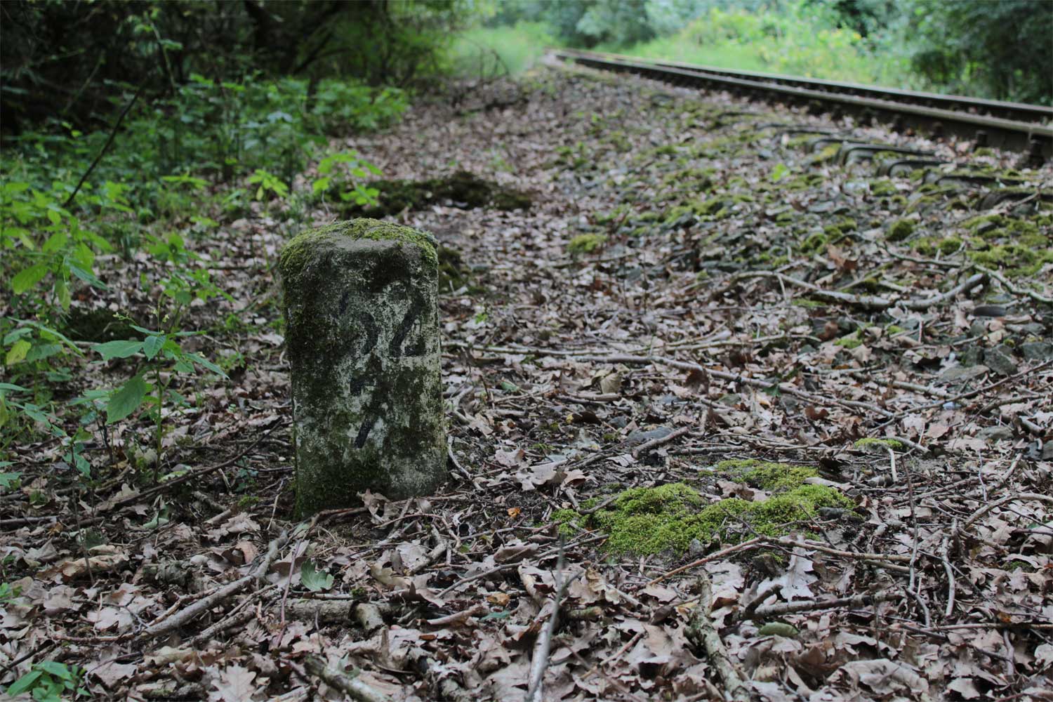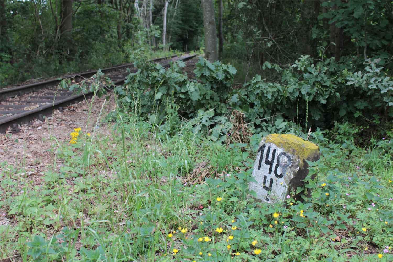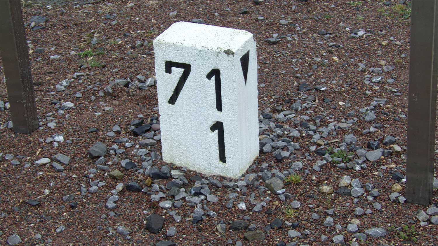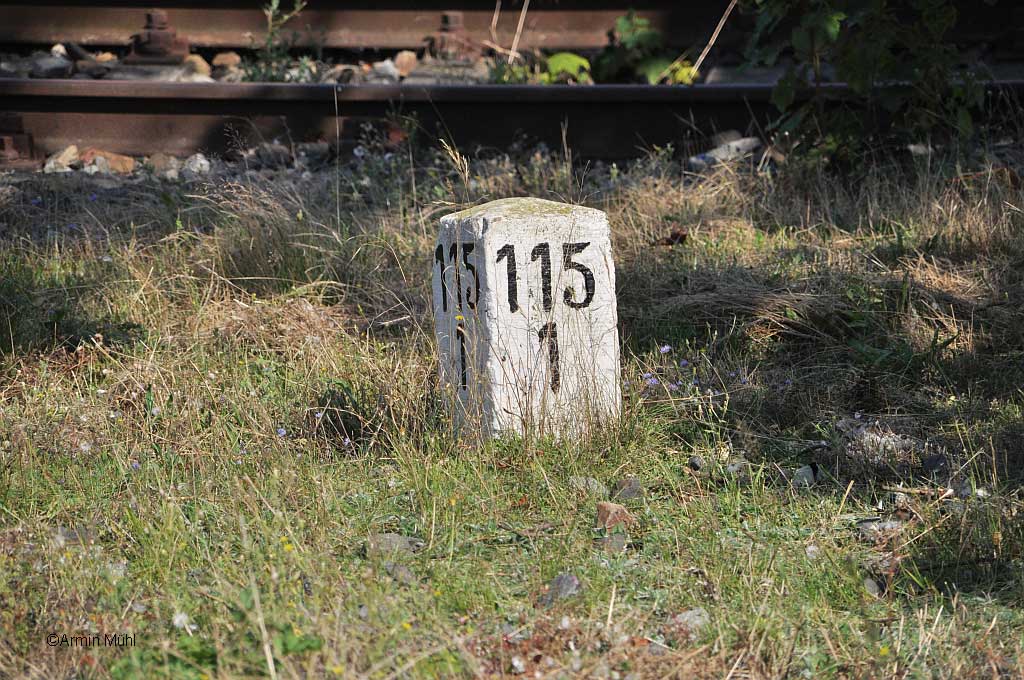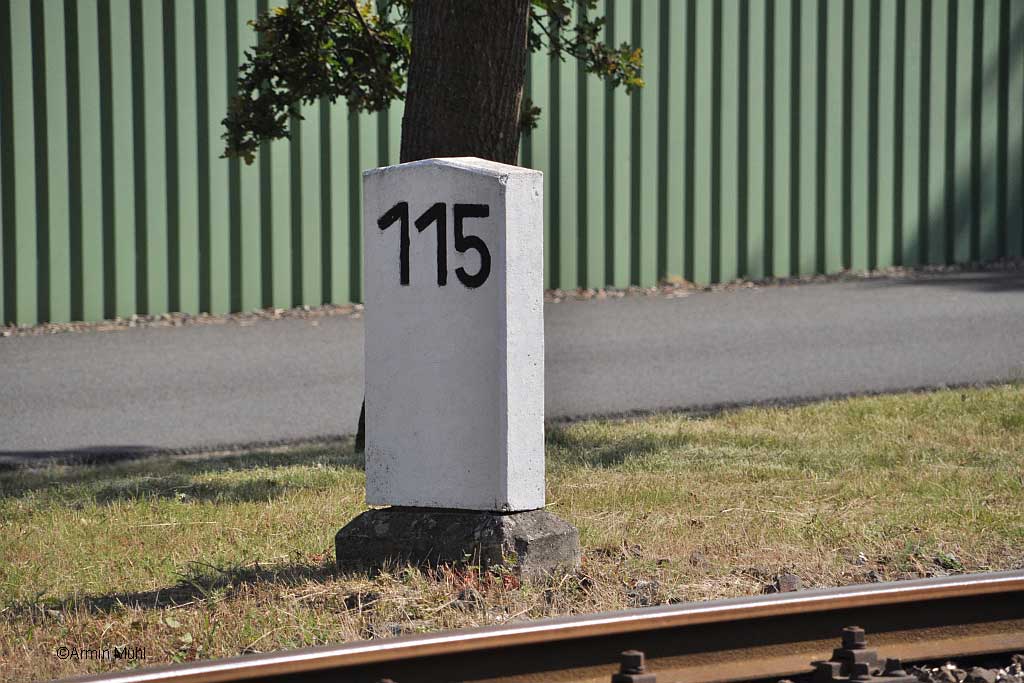 Der Kilometerstein wurde vom Bahnhofseigentümer aufgestellt.