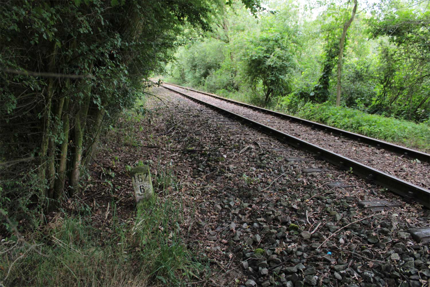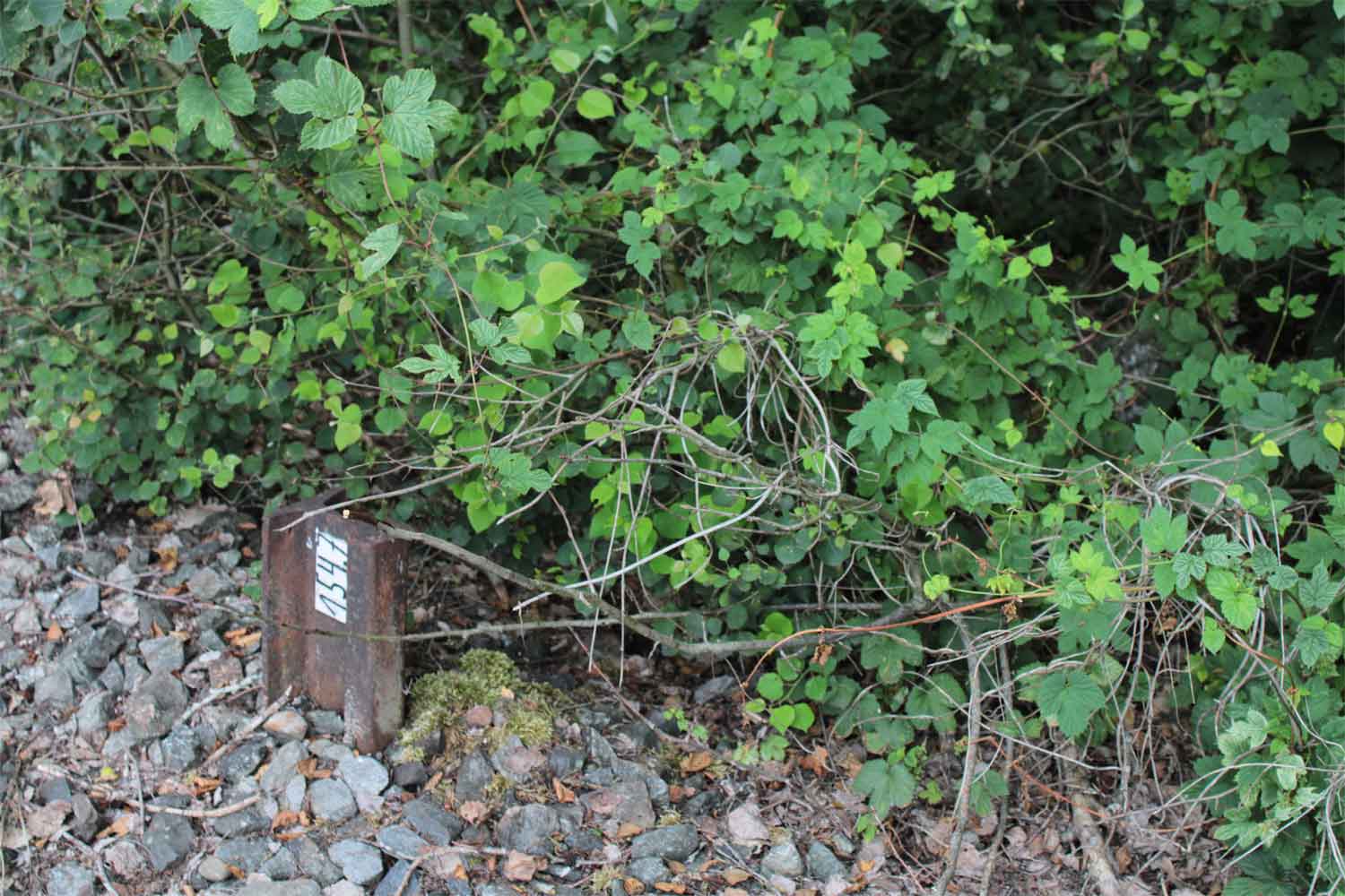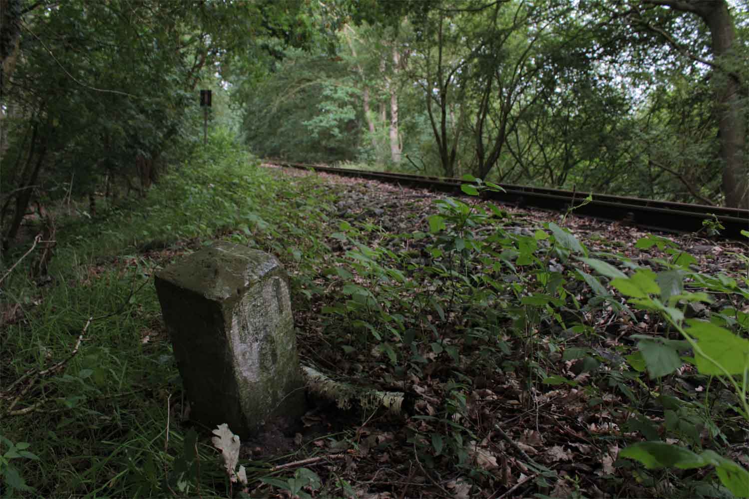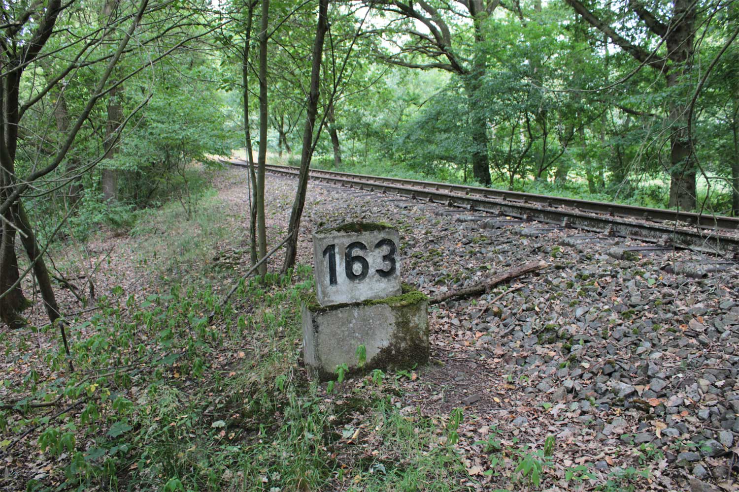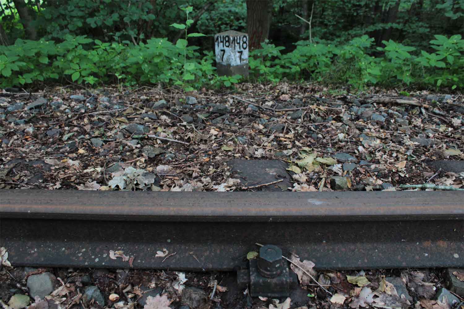 Der Kilometerstein wurde vom Bahnhofseigentümer aufgestellt.