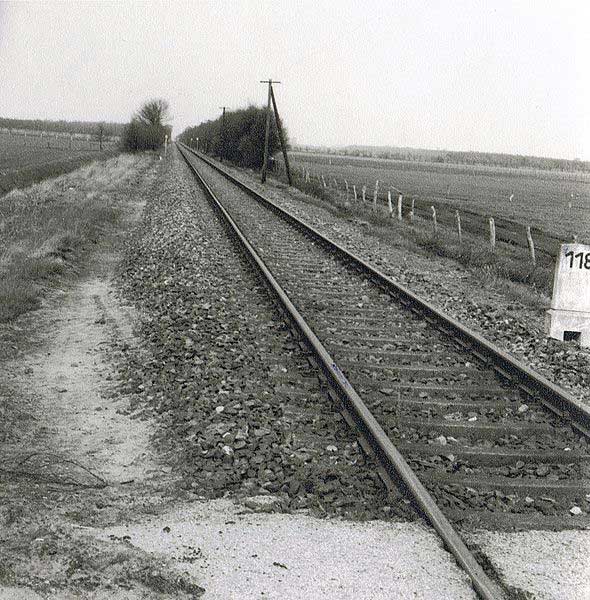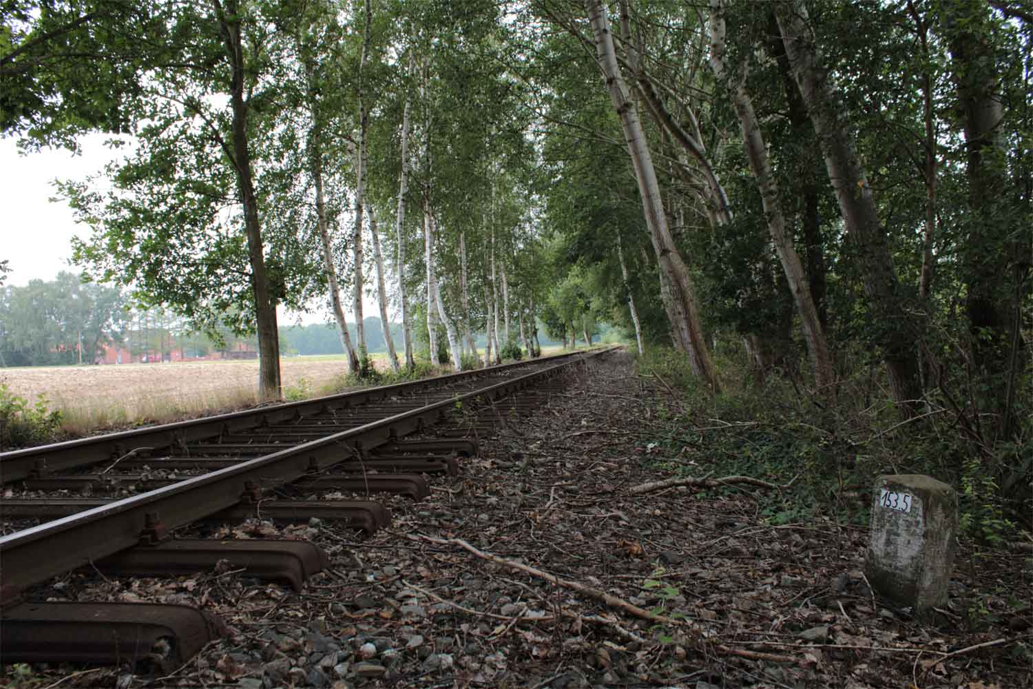 km 55,3 der Strecke Lingen-Kanalhafen -1,7 - Lingen (Ems) Kleinbf 0,0 - Quakenbrück 55,3 (Kleinbahn Lingen–Berge–Quakenbrück) Spurweite 750 mm