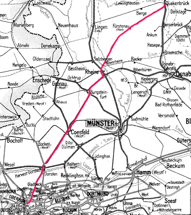Oberhausen Hbf 0,0 - Coesfeld (Westf) 58,46 - Rheine 104,68 - Quakenbrück 165,34