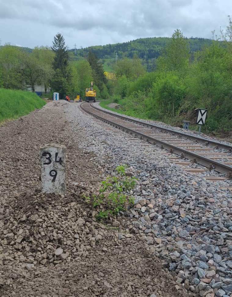 km 33,9 und 34,0 in Fützen - Schienenmesszug 725/726 002
