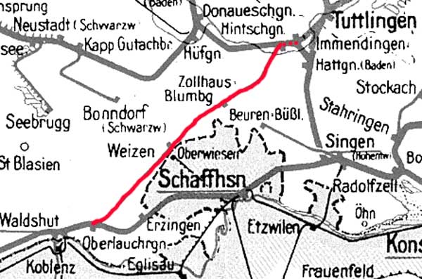 Oberlauchringen 0,0 - Weizen 20,40 - Zollhaus-Blumberg 45,97 - Hintschingen 61,498 - (Immendingen 64,95) (Wutachtalbahn, sog. Strategische Bahn)