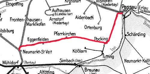 Passau Hbf 0,0 - Pocking 34,0 - Abzw Elsenbach 94,9 - (Neumarkt-St. Veith 97,24) (1946)