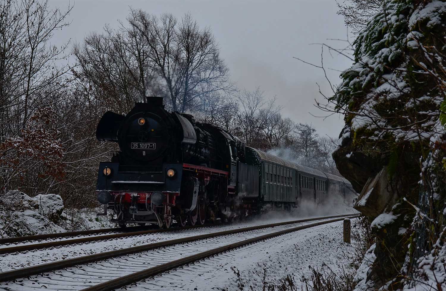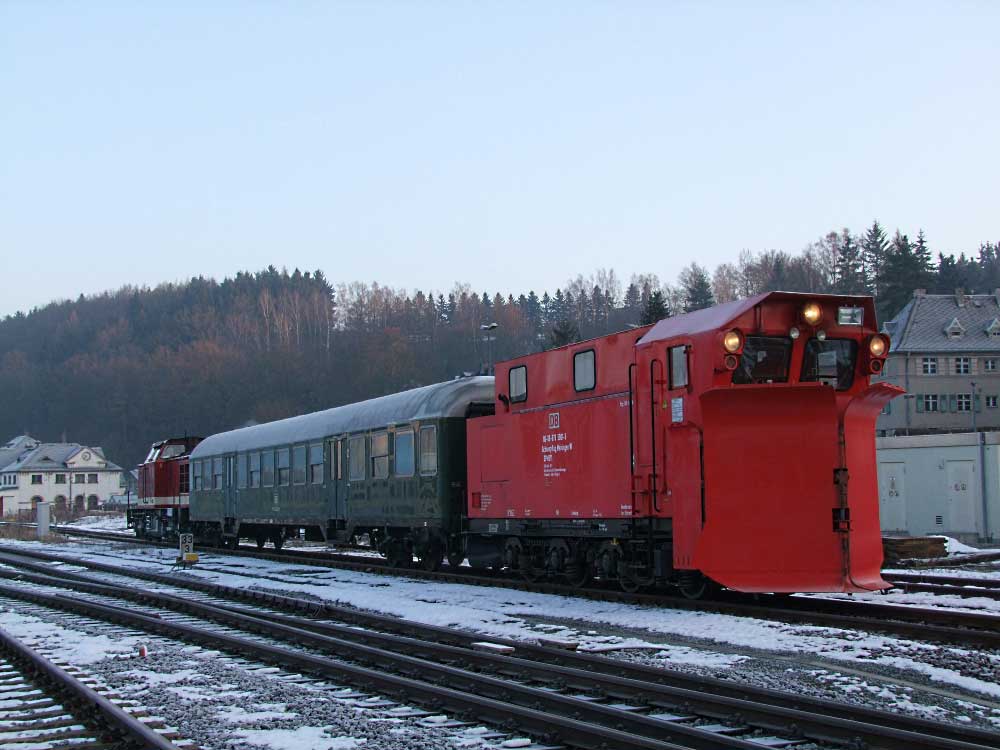 km 33,3 in Adorf (Vogtl) - 112 565 (Press) mit Schneepflug bei Schulungsfahrten
