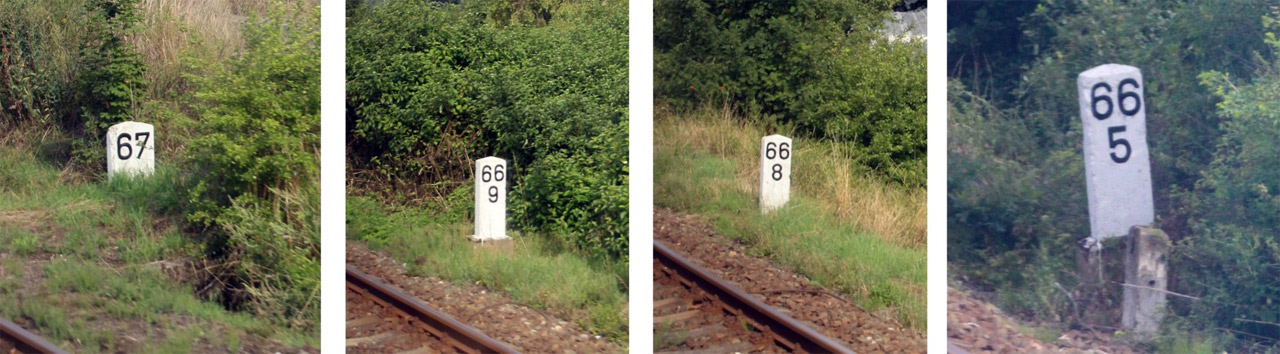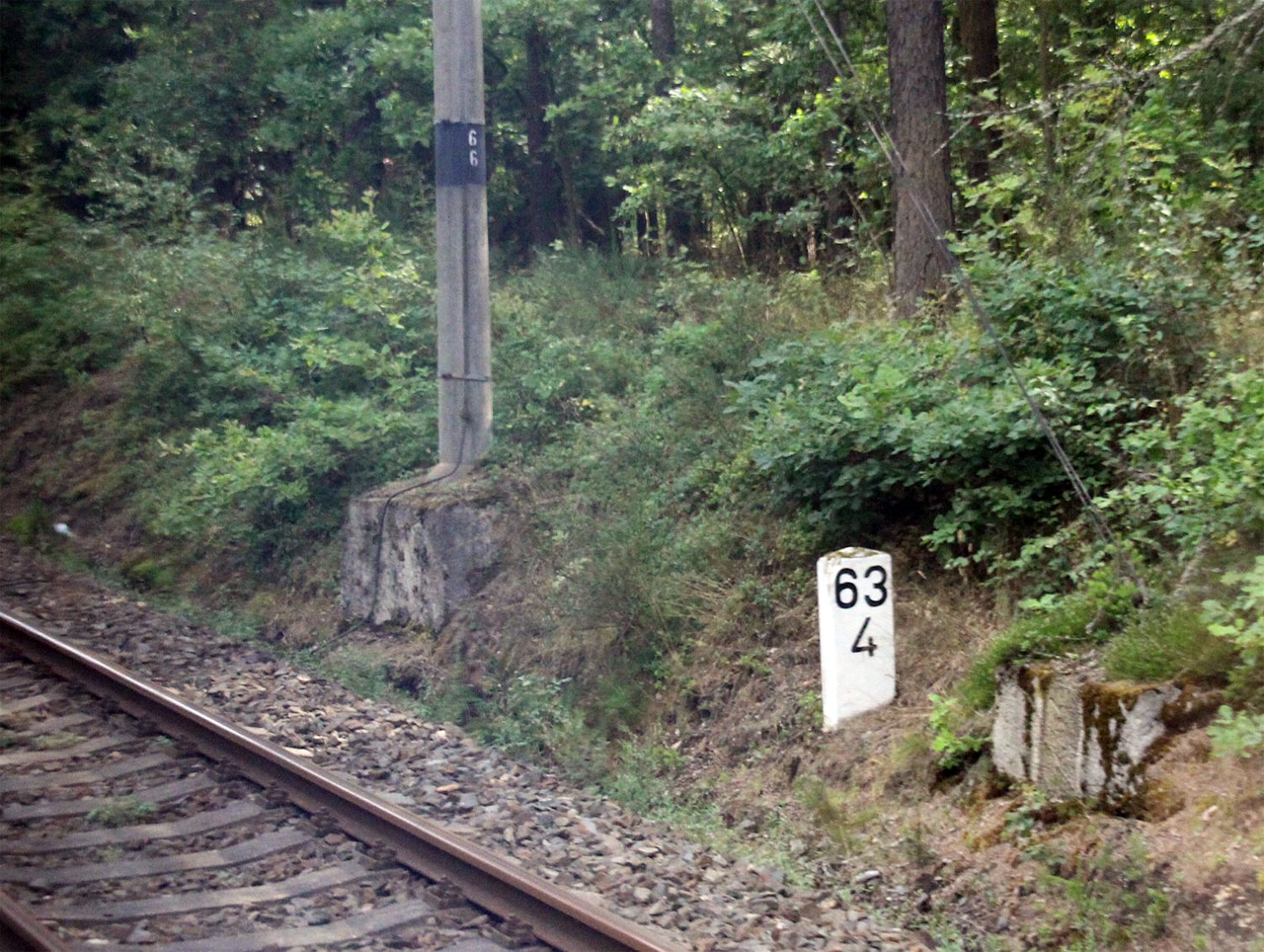 67,840 km 6,58 der Strecke Cheb (Eger) 0,0 - Aš (Asch) 27,550 - Streckenunterbrechung - Selb-Plößberg 34,82 - Oberkotzau 54,54