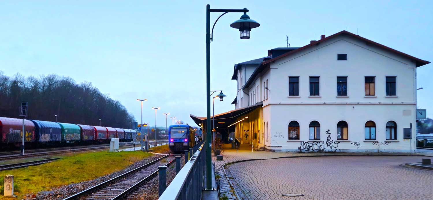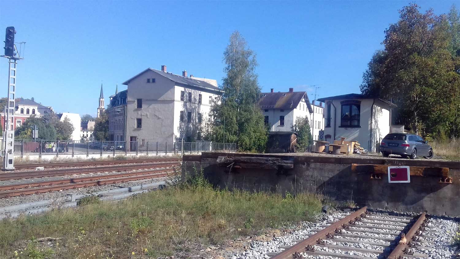 Plauen (Vogtl)  ob. Bf 0,40 km 116,11 der Strecke Leipzig Bayerischer Bf 0,12 - Altenburg Hbf 38,63 - Werdau 73,81 - Reichenbach (Vogtl) 90,96 - Plauen ob. Bf 116,11 - Hof (Saale) 164,8