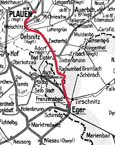 Plauen (Vogtl) ob Bf 0,40 - Adorf (Vogtl) 33,14 - Staatsgrenze Deutschland/Tschechien  - Eger 74,49 (PE)