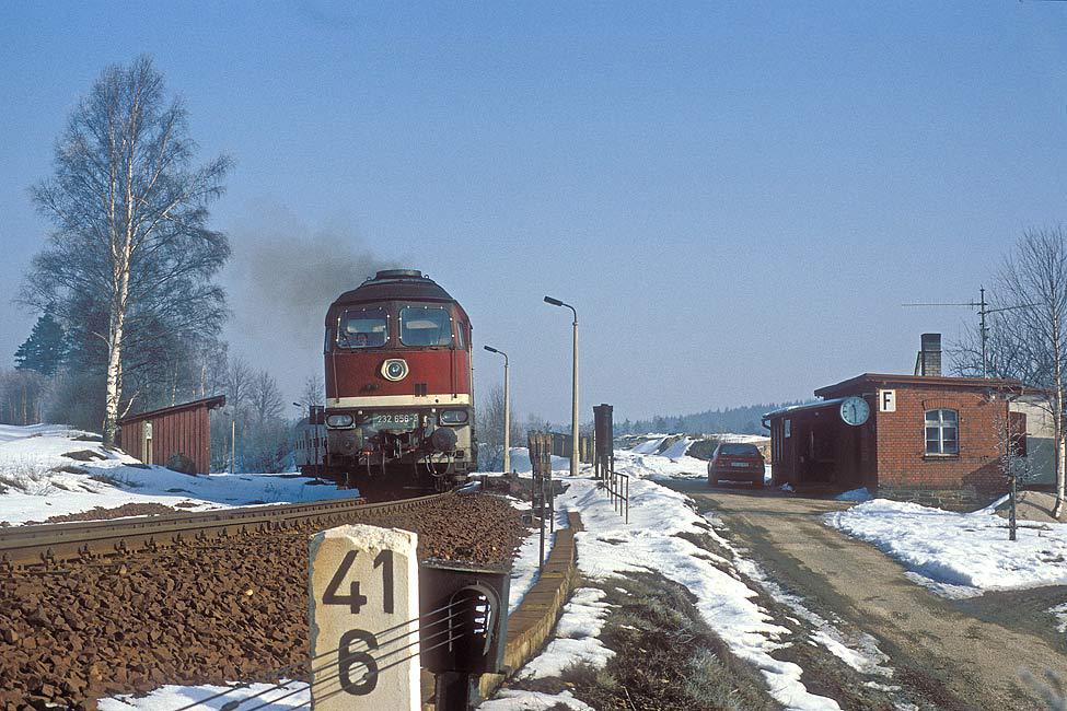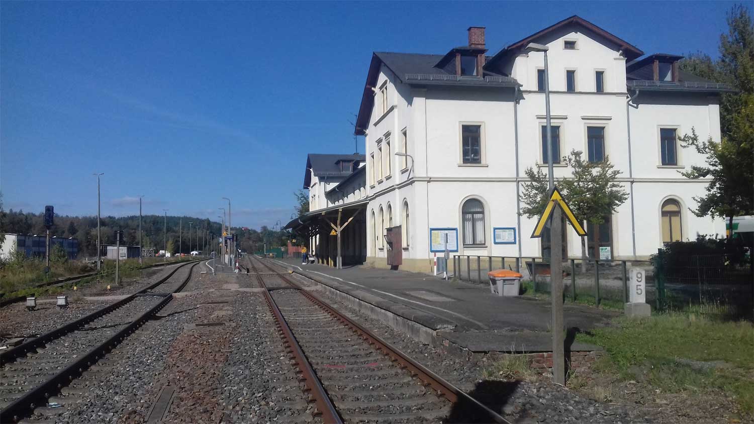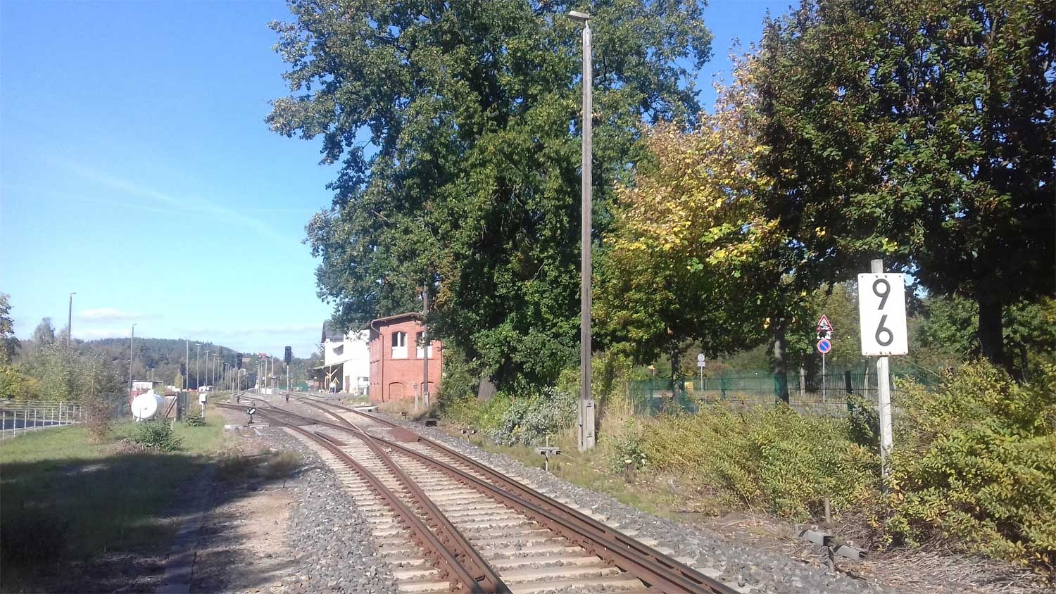 Weischlitz 9,45 km 59,90 der Strecke Gera Süd -0,12 - Wünschendorf (Elster) 9,40 - Greiz 30,66 - Weischlitz 59,90 (GWz)