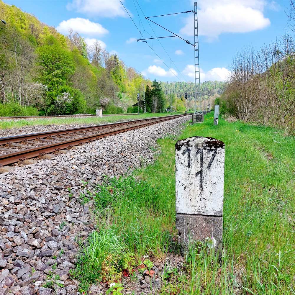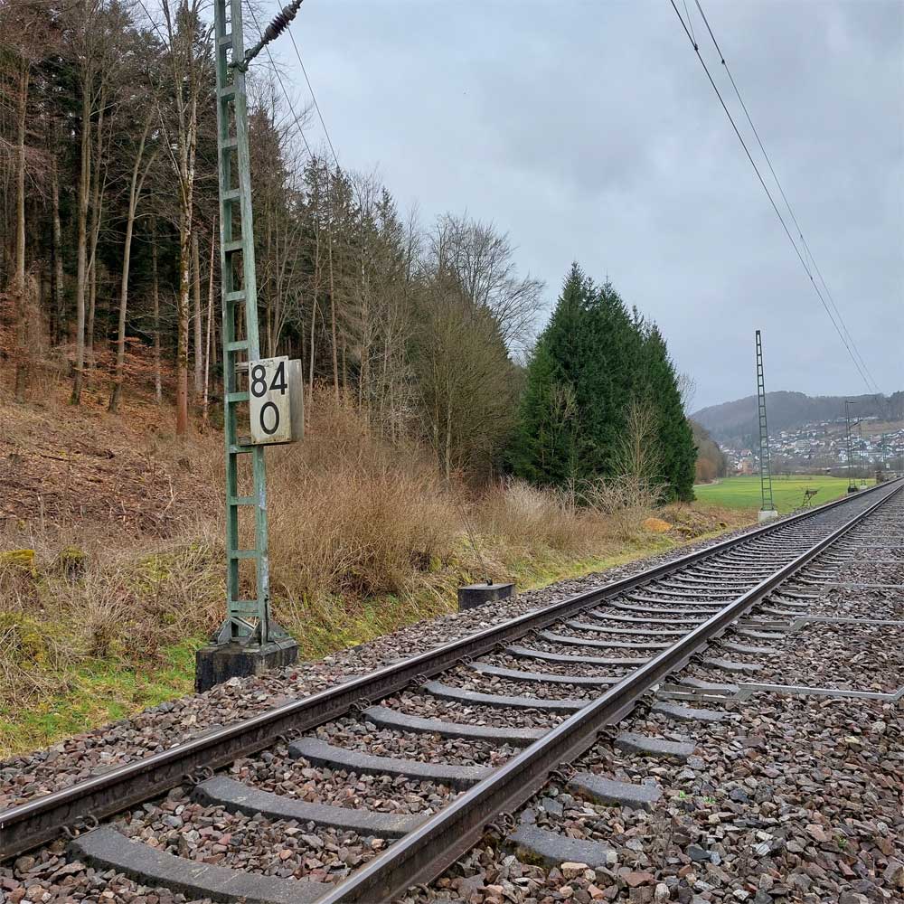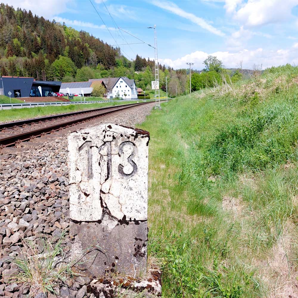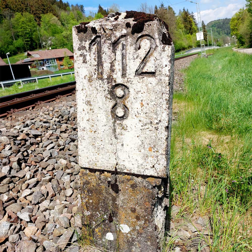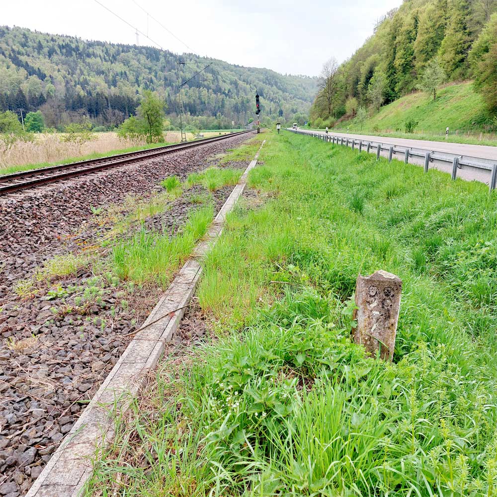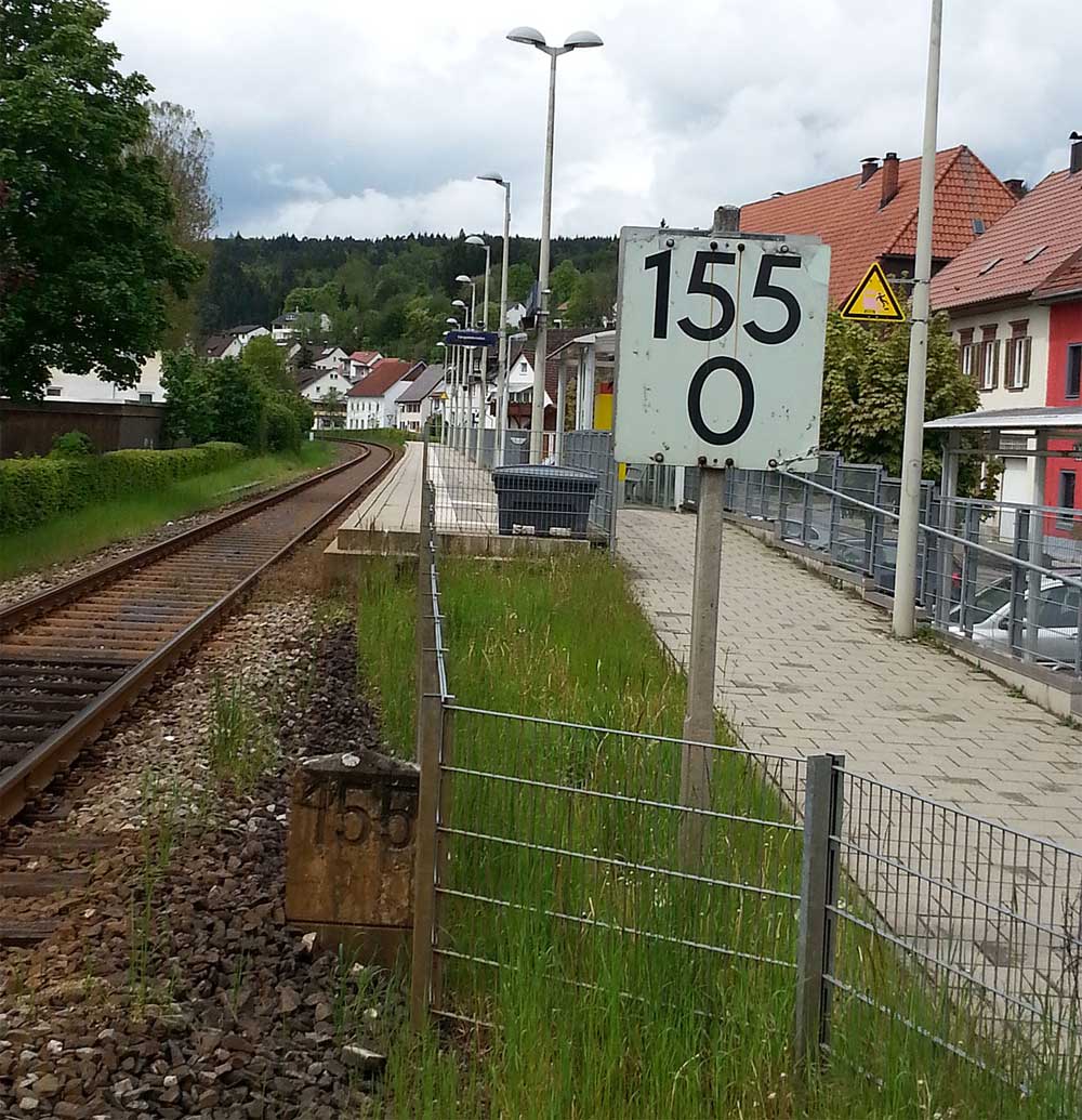 km 119,02 der Strecke Offenburg 0,0 - Villingen 85,86 - Donaueschingen 99,72 - Immendingen 119,02 - Singen (Hohentwiel) 149,14