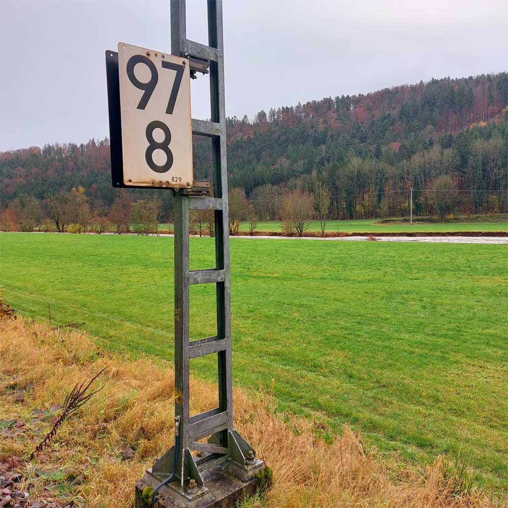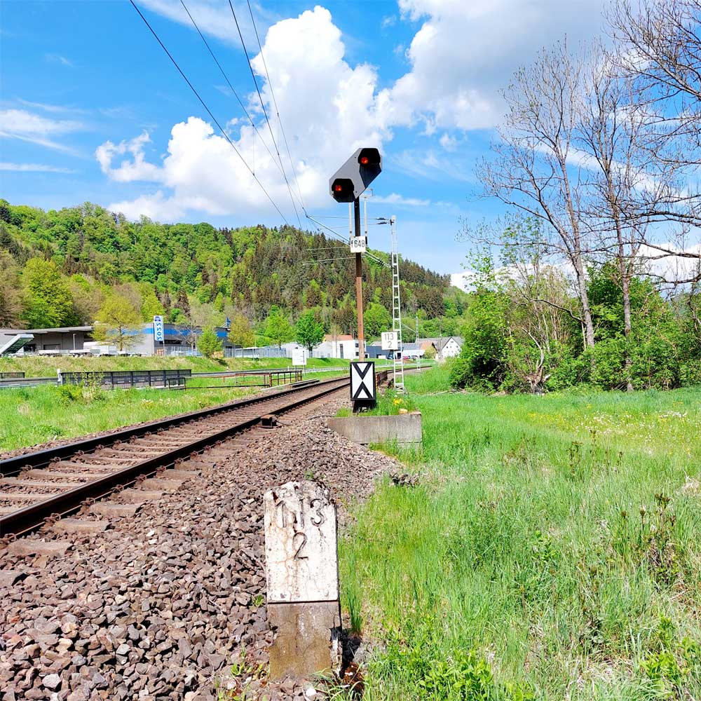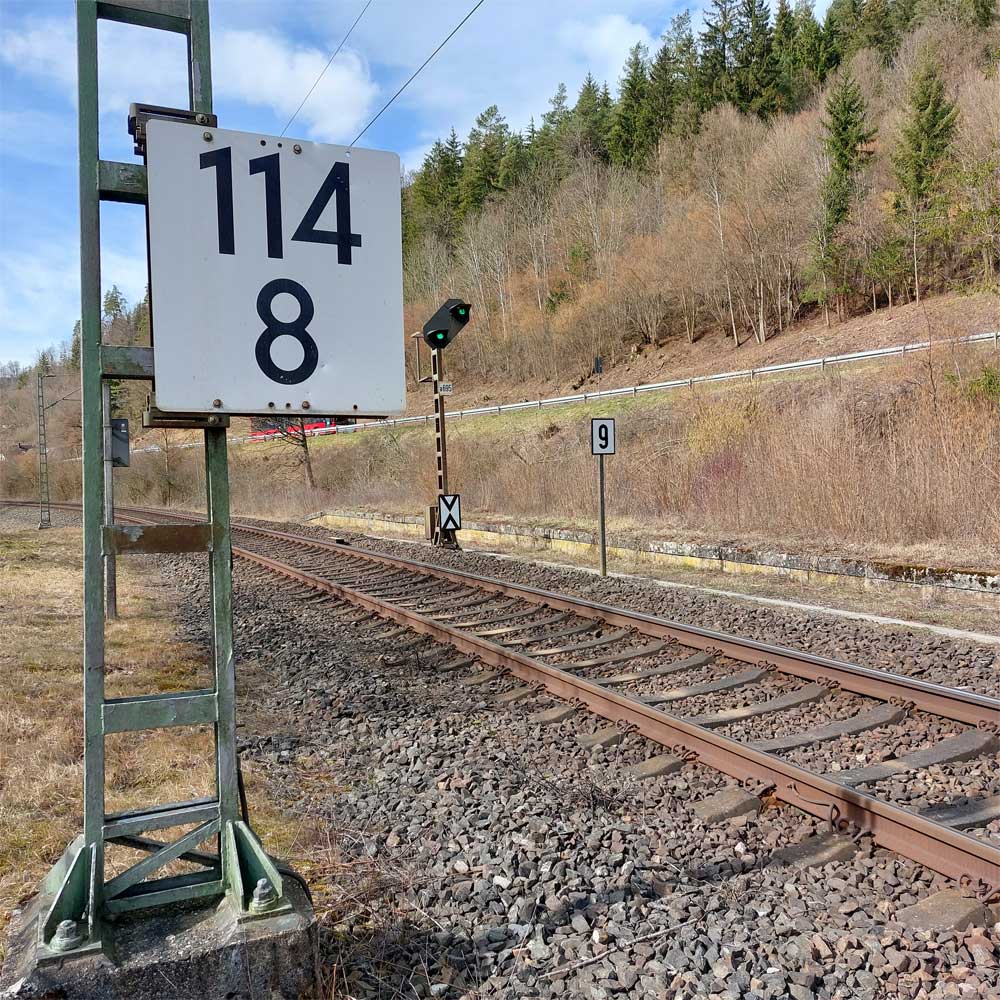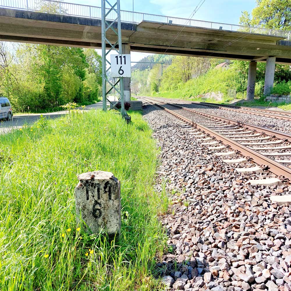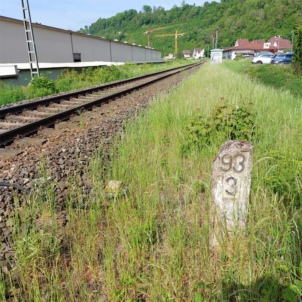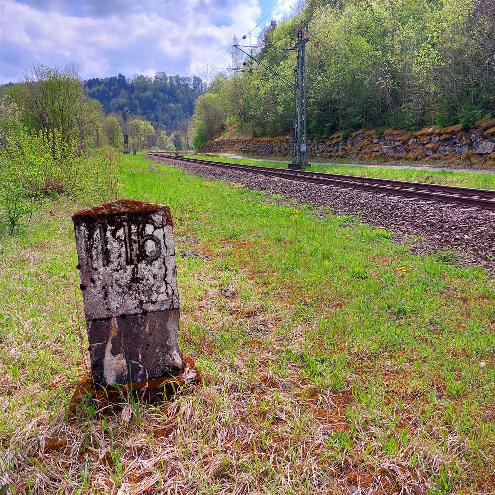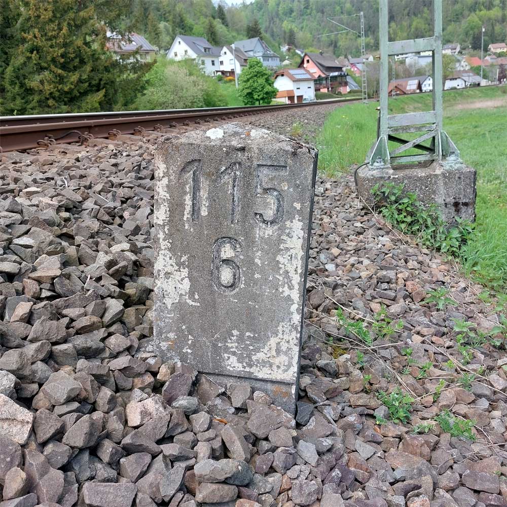 km 119,02 der Strecke Offenburg 0,0 - Villingen 85,86 - Donaueschingen 99,72 - Immendingen 119,02 - Singen (Hohentwiel) 149,14