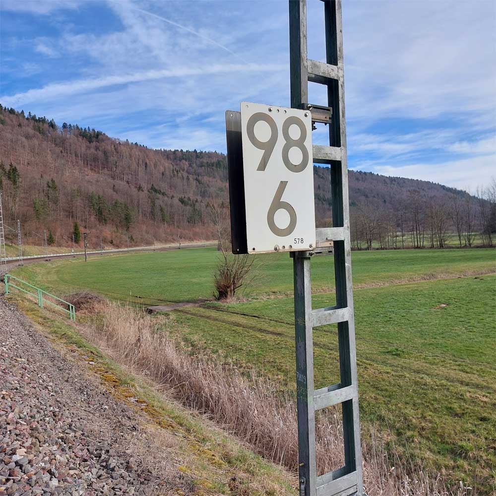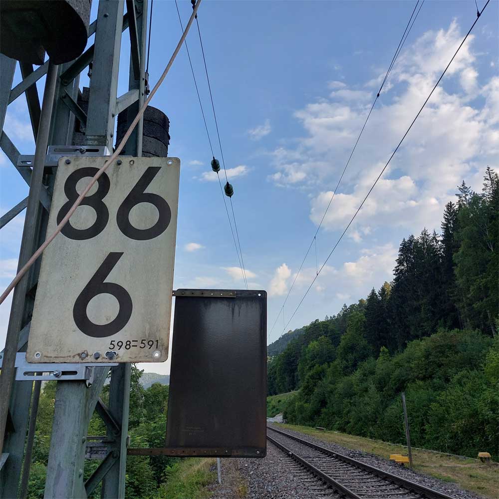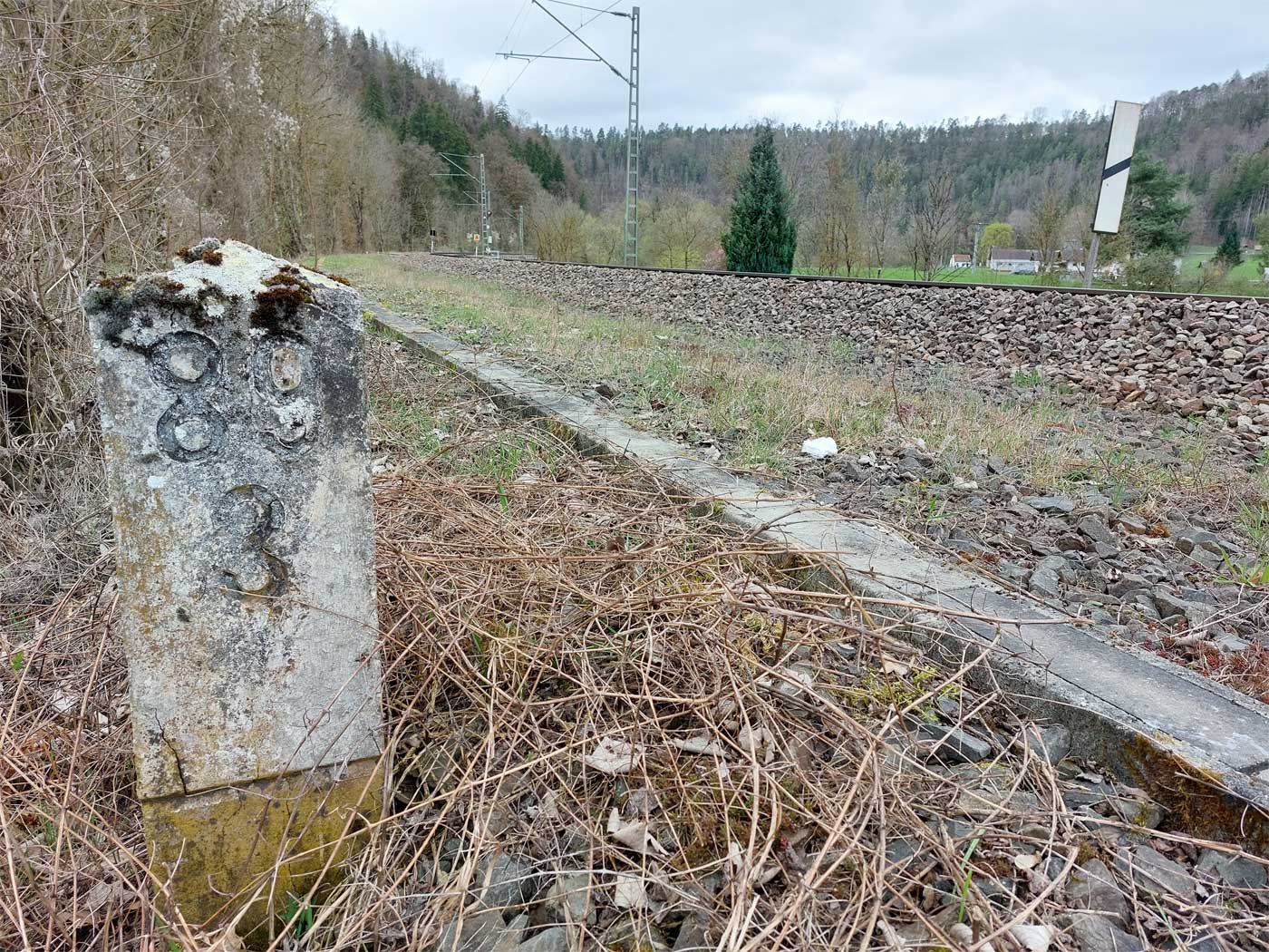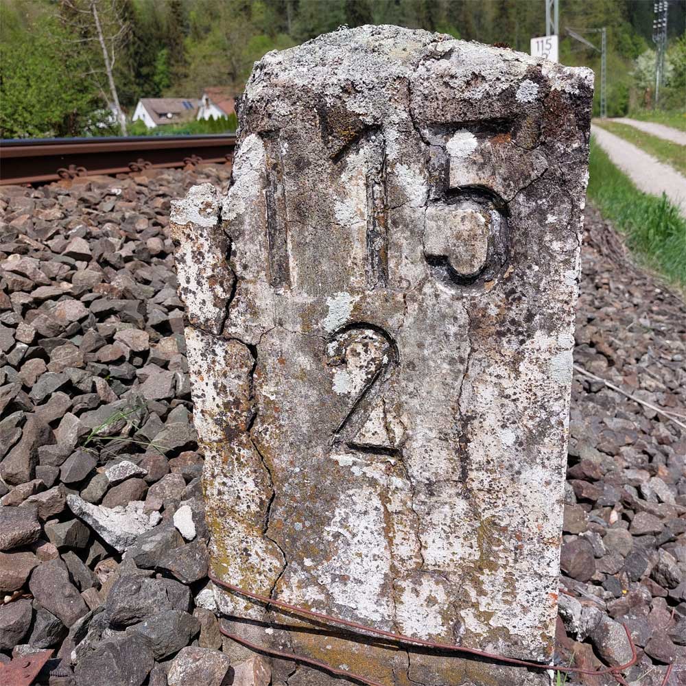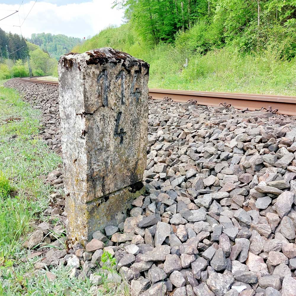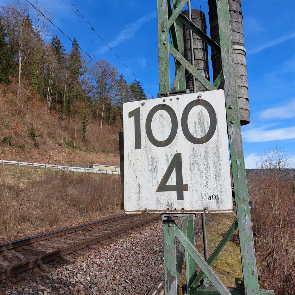 km 119,02 der Strecke Offenburg 0,0 - Villingen 85,86 - Donaueschingen 99,72 - Immendingen 119,02 - Singen (Hohentwiel) 149,14