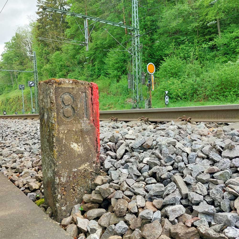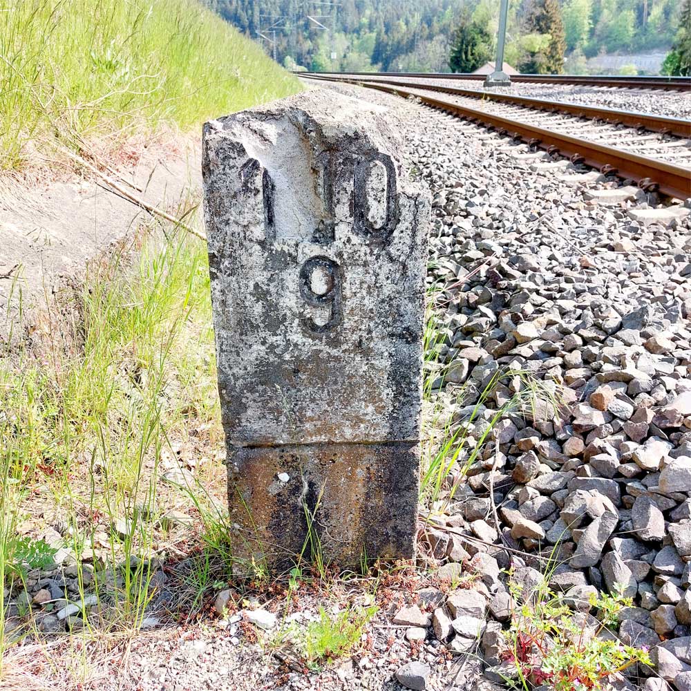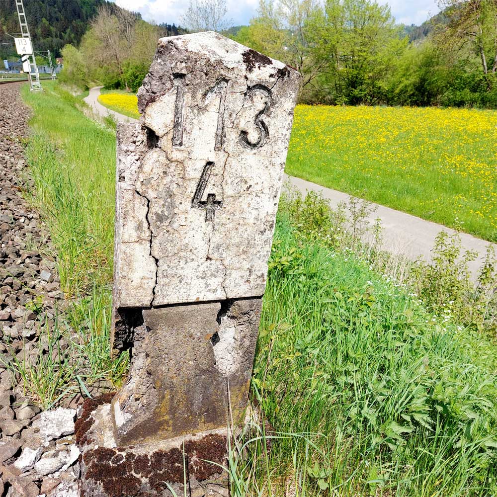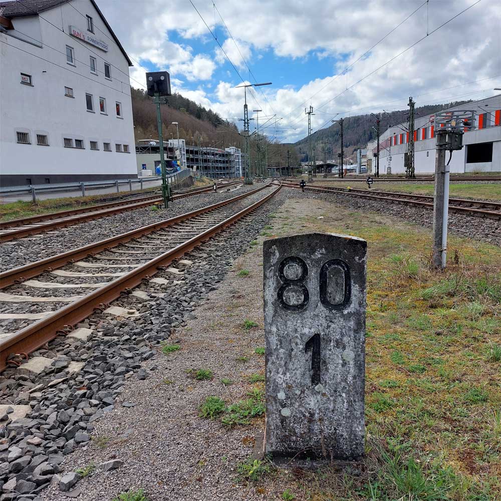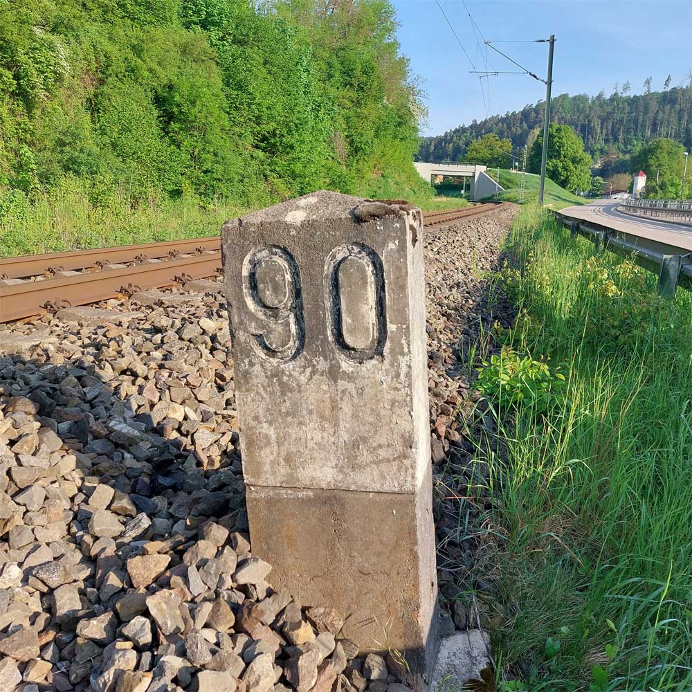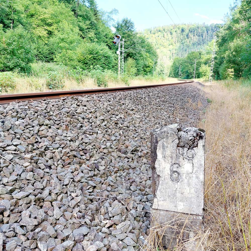 km 119,02 der Strecke Offenburg 0,0 - Villingen 85,86 - Donaueschingen 99,72 - Immendingen 119,02 - Singen (Hohentwiel) 149,14