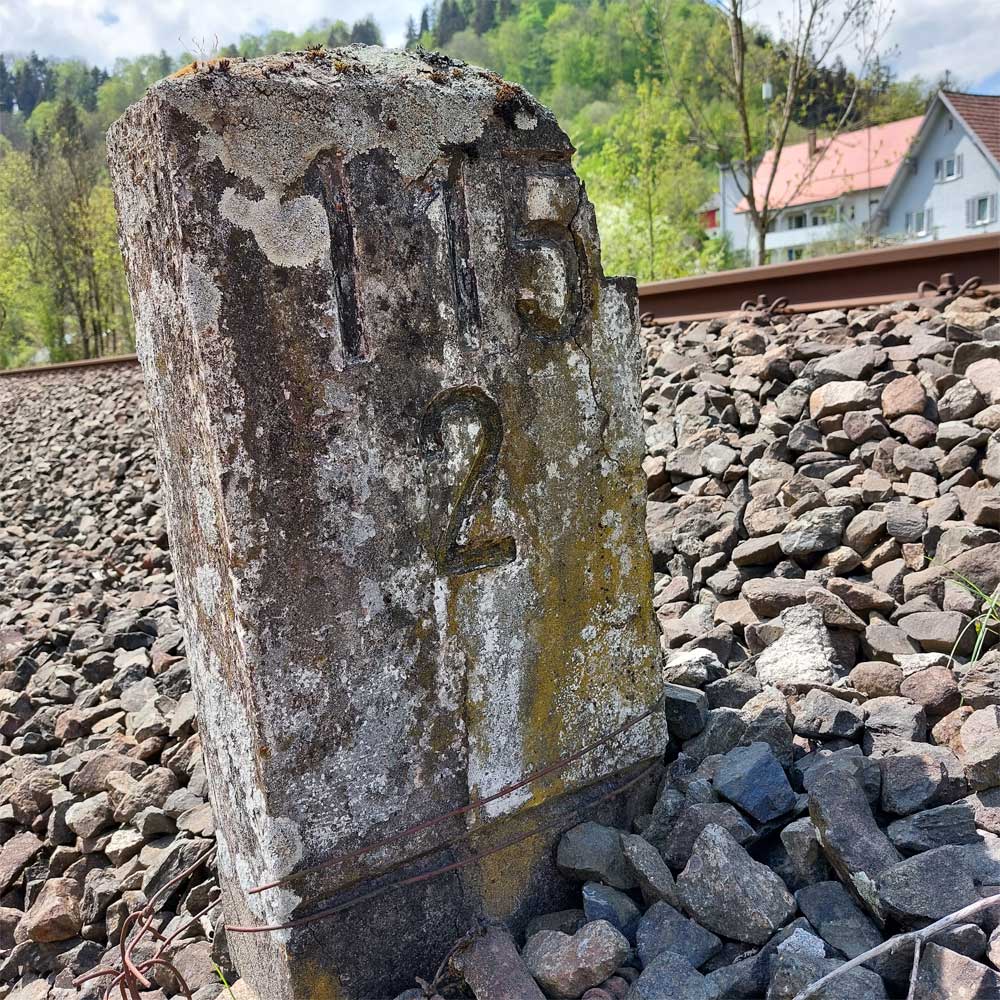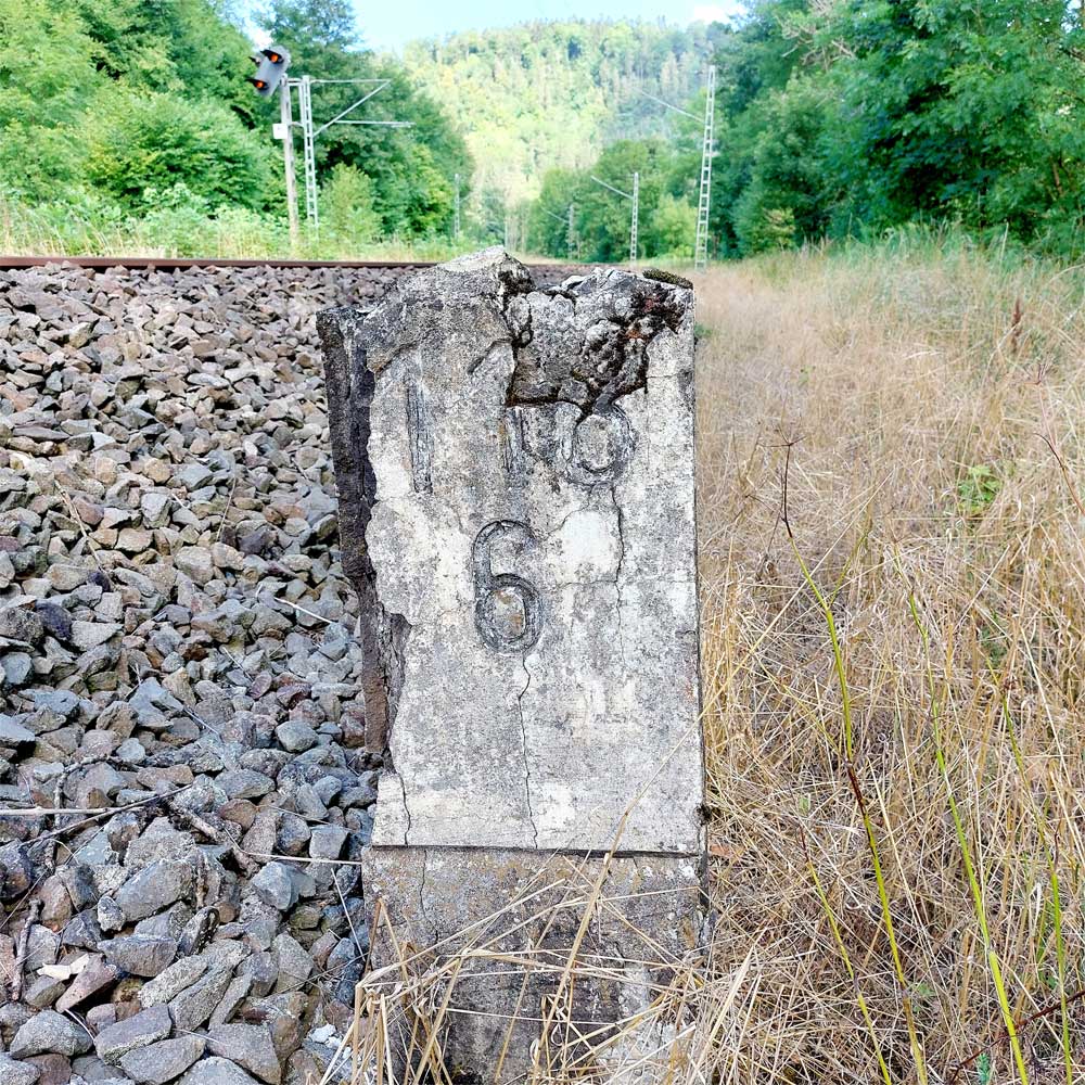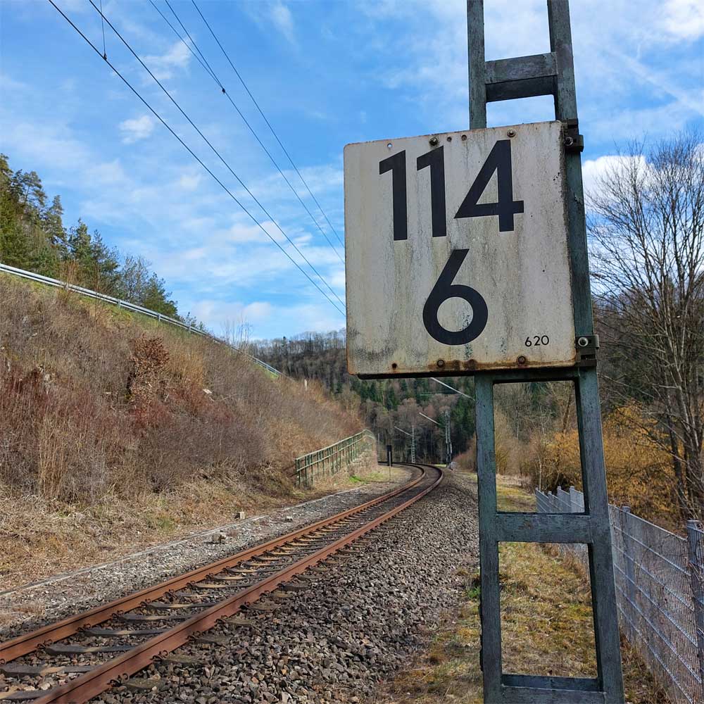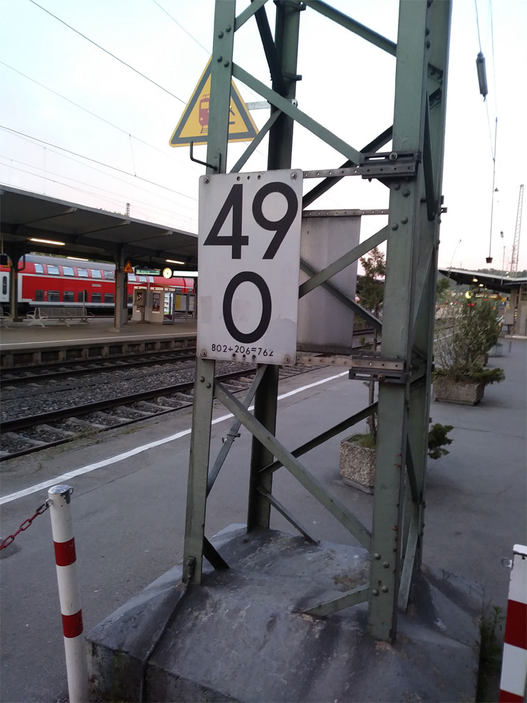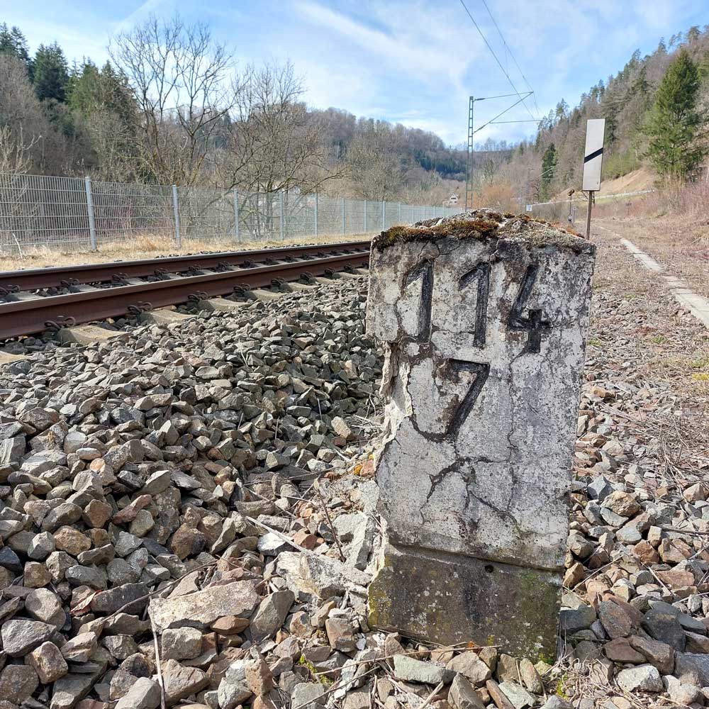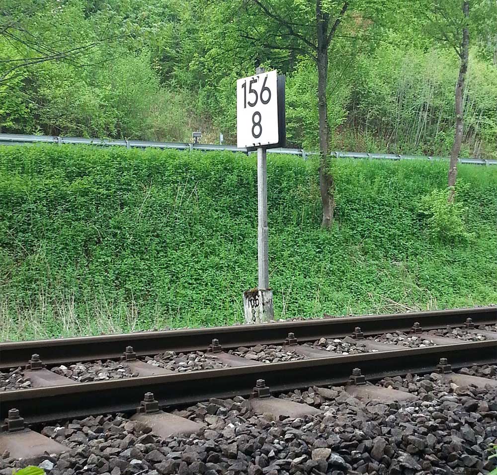 km 119,02 der Strecke Offenburg 0,0 - Villingen 85,86 - Donaueschingen 99,72 - Immendingen 119,02 - Singen (Hohentwiel) 149,14