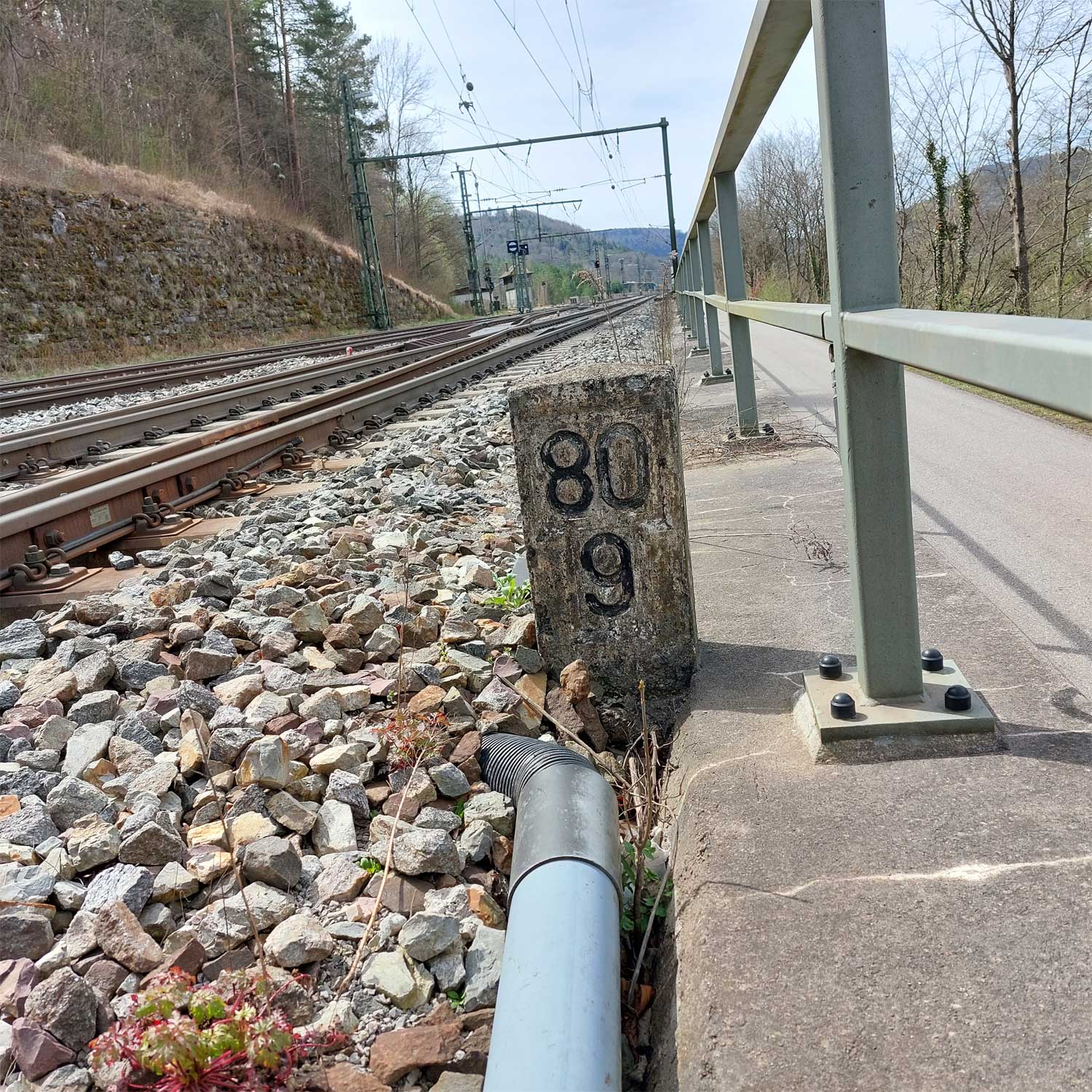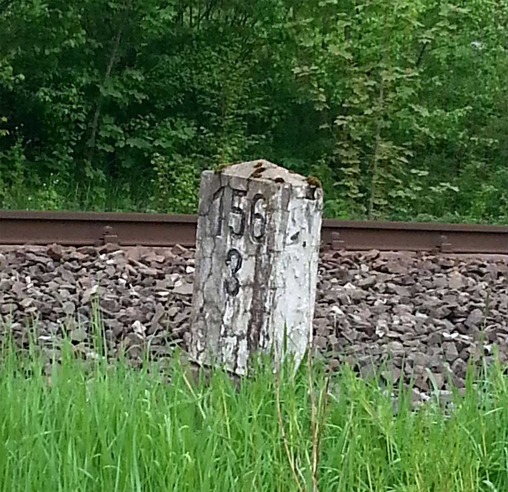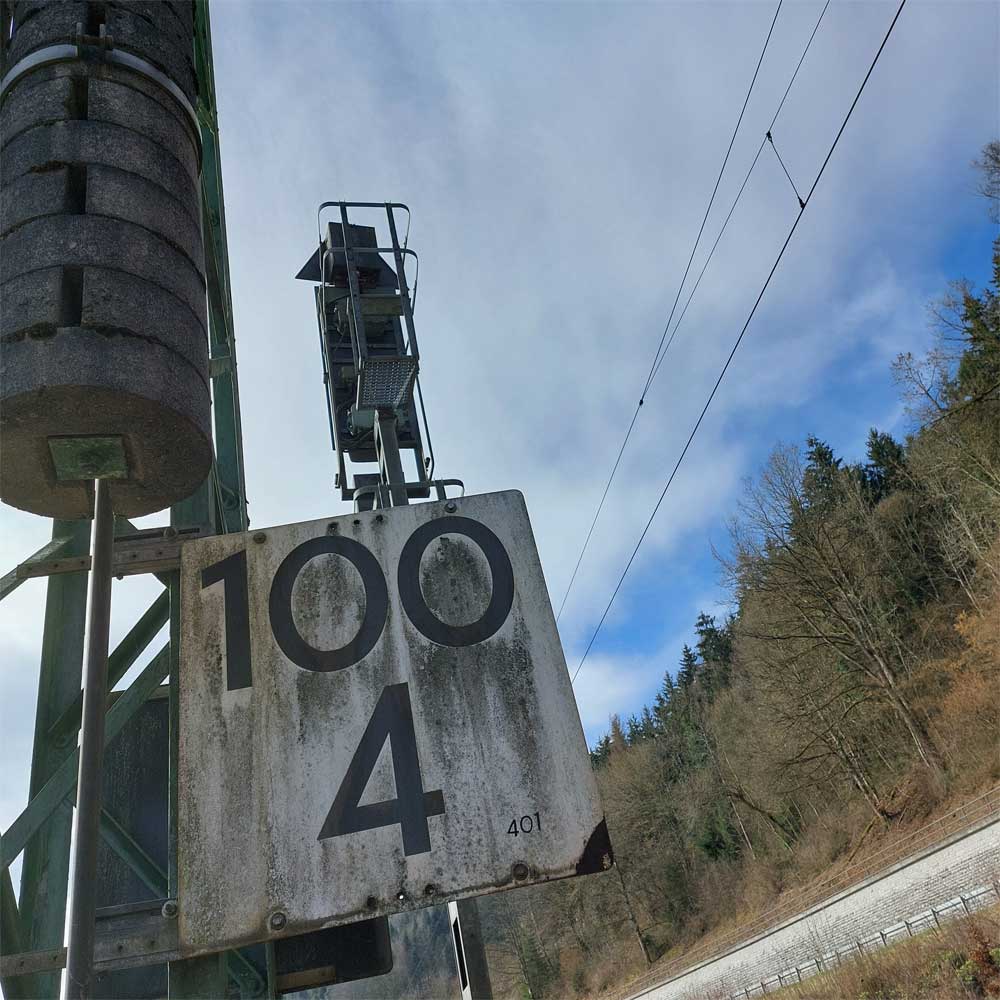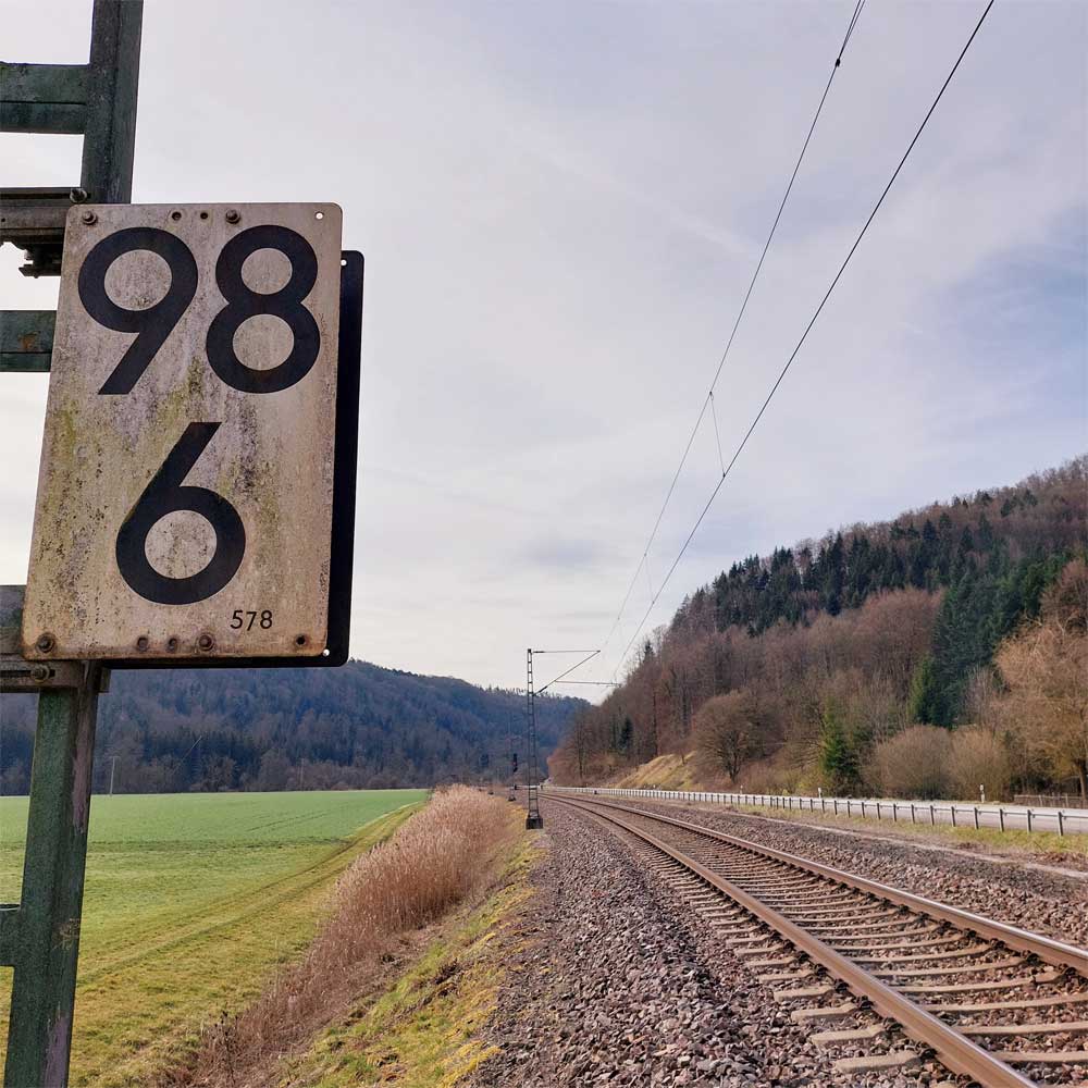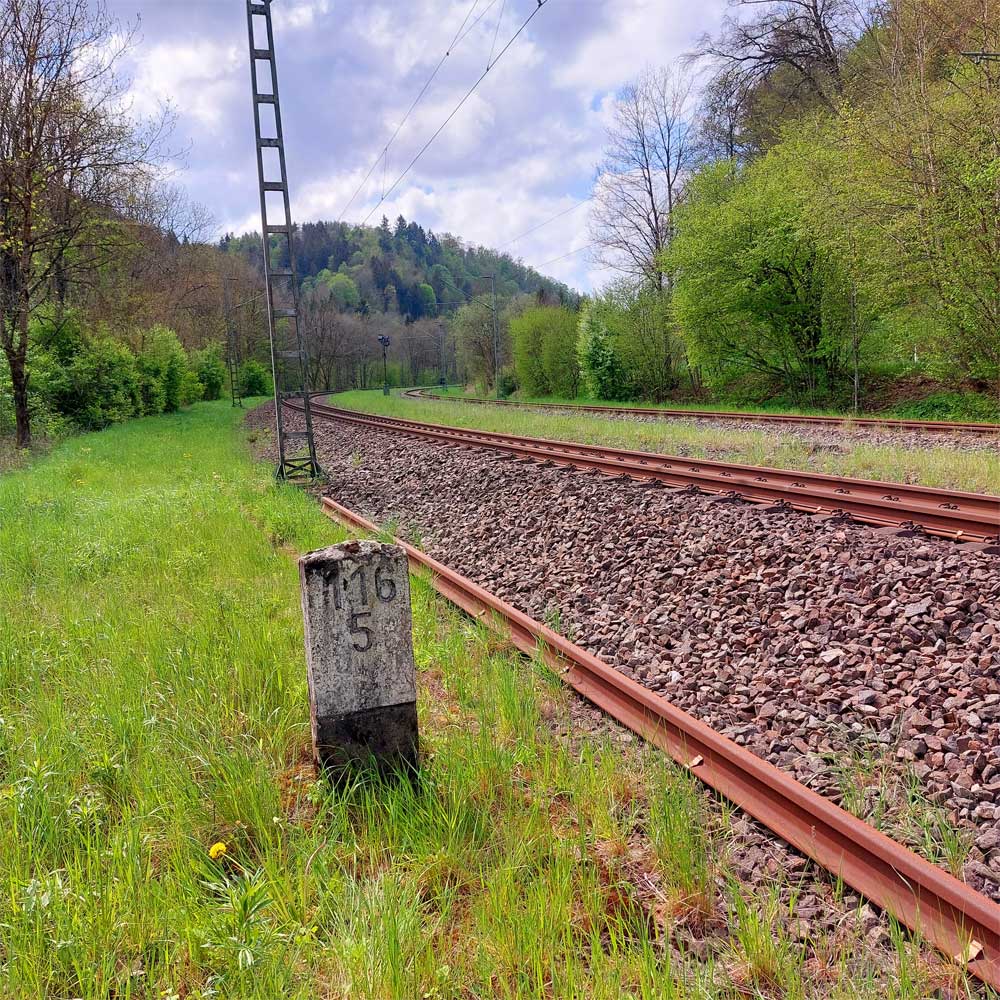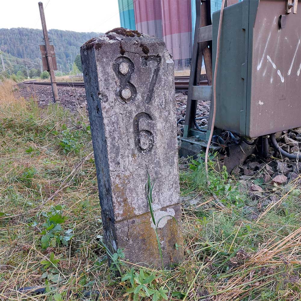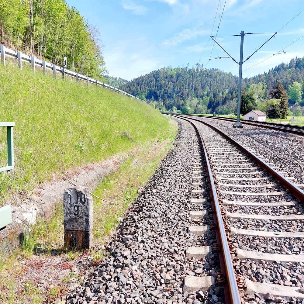 km 119,02 der Strecke Offenburg 0,0 - Villingen 85,86 - Donaueschingen 99,72 - Immendingen 119,02 - Singen (Hohentwiel) 149,14