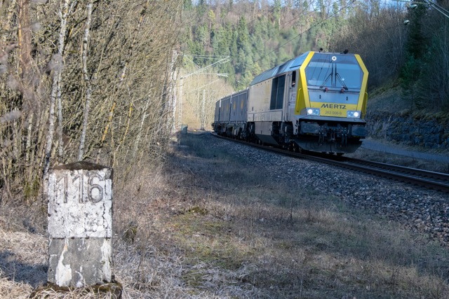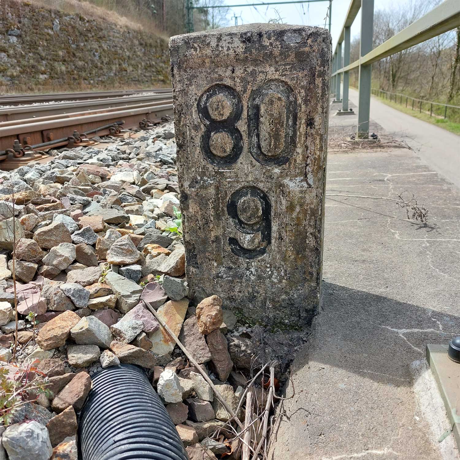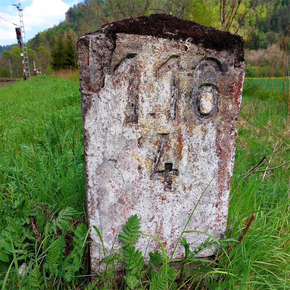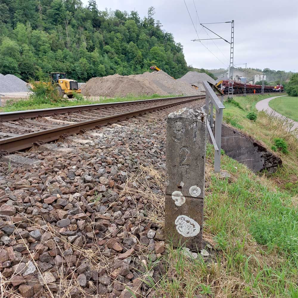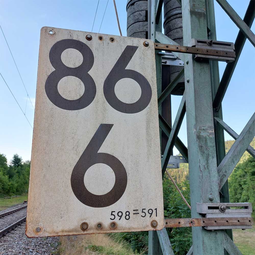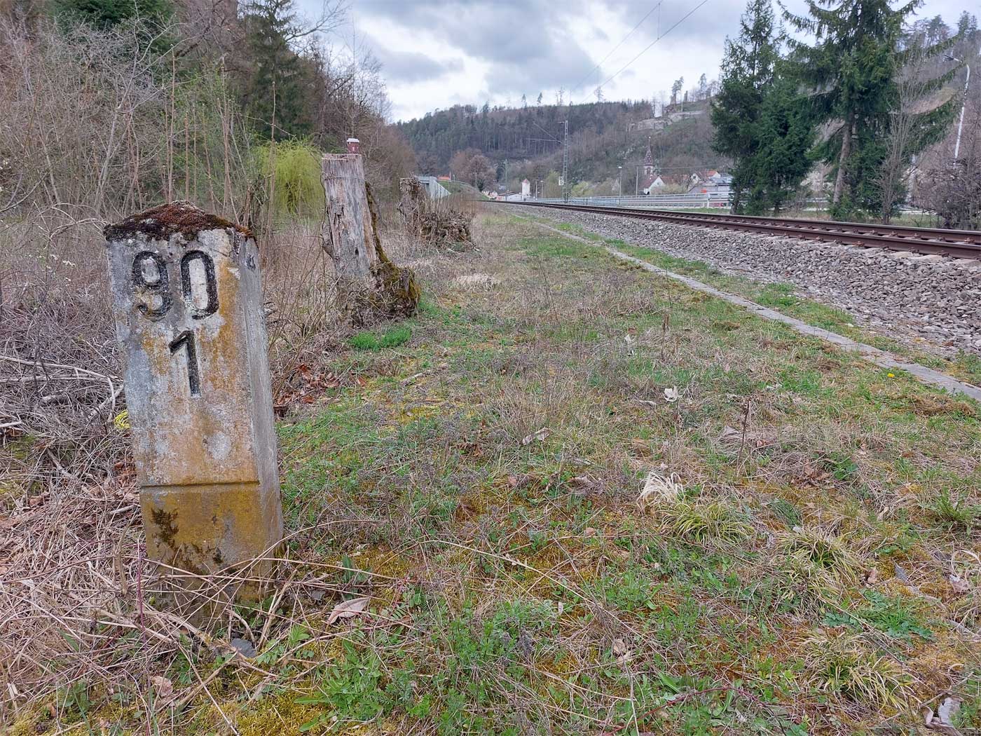 km 119,02 der Strecke Offenburg 0,0 - Villingen 85,86 - Donaueschingen 99,72 - Immendingen 119,02 - Singen (Hohentwiel) 149,14