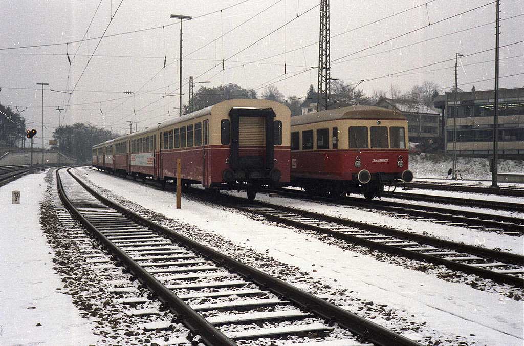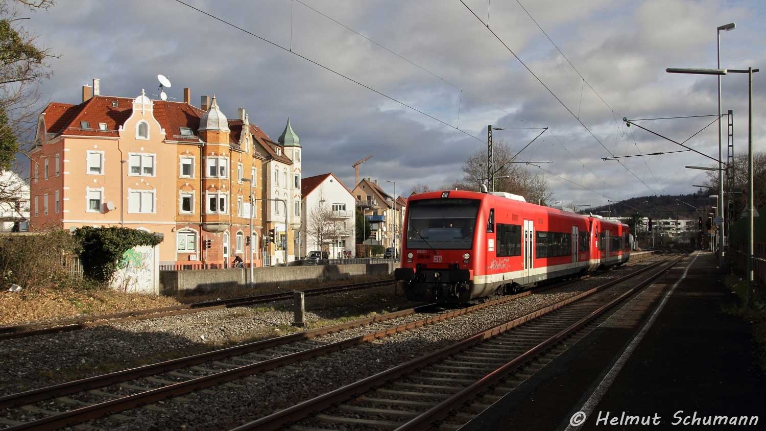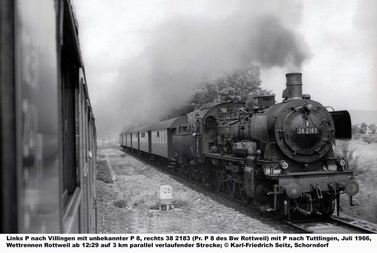 Der Zug links befindet sich auf der Strecke Rottweil 0,0 - Villingen (Schwarzw) 26,867