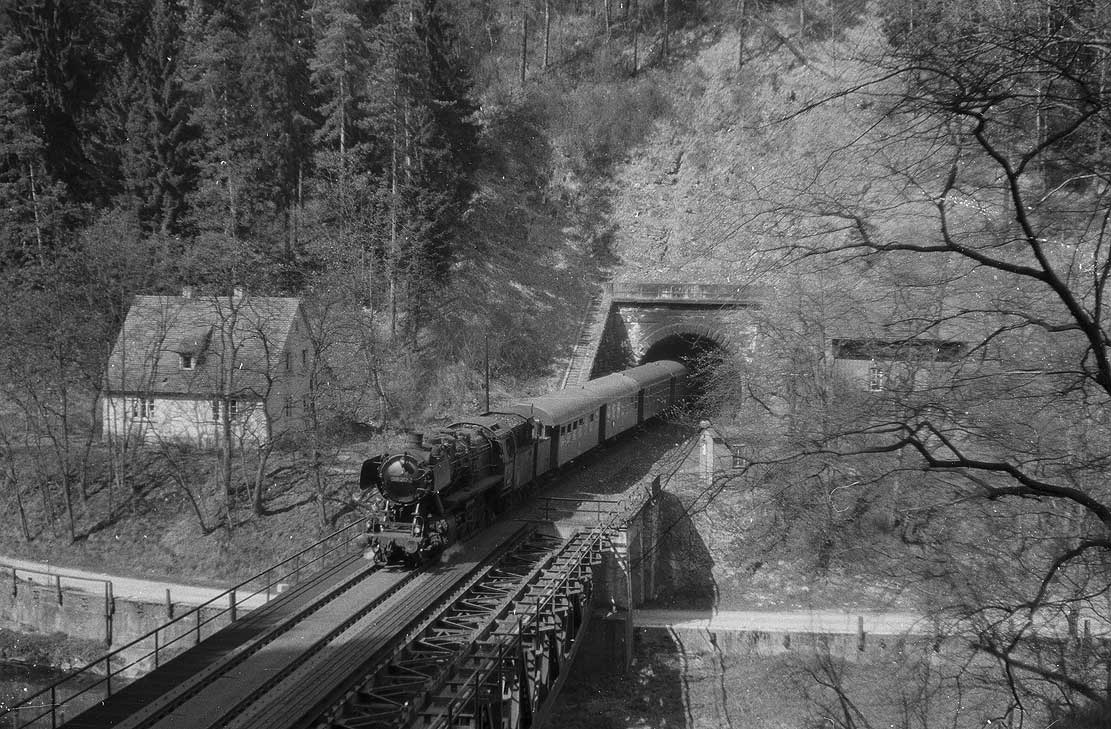 Das noch heute existierende Primtalviadukt der am 26. Sept. 1971 stillgelegten Strecke Balingen (Württ) 0,0 - Rottweil 28,93