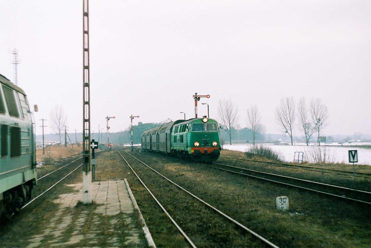 km 298,175 der Strecke Warschau Hbf 0,0 - Golabki 10,720 - Bednary 72,060 - Lowitsch 80,636 - Rbd Grenze Ostbahn/Posen 99,000 - Kutno 125,904 - Warthbrücken 175,571 - Konin 204,352 - Wreschen 255,225 - Posen (Warthel) Hbf 303,840