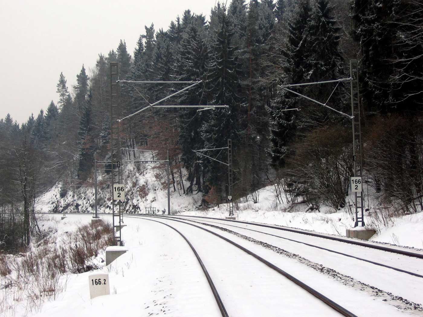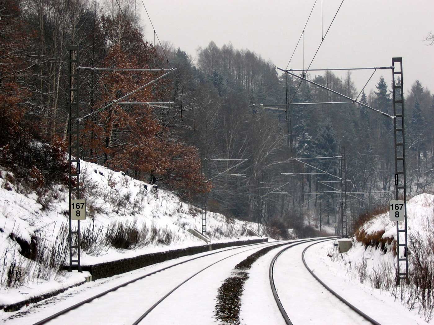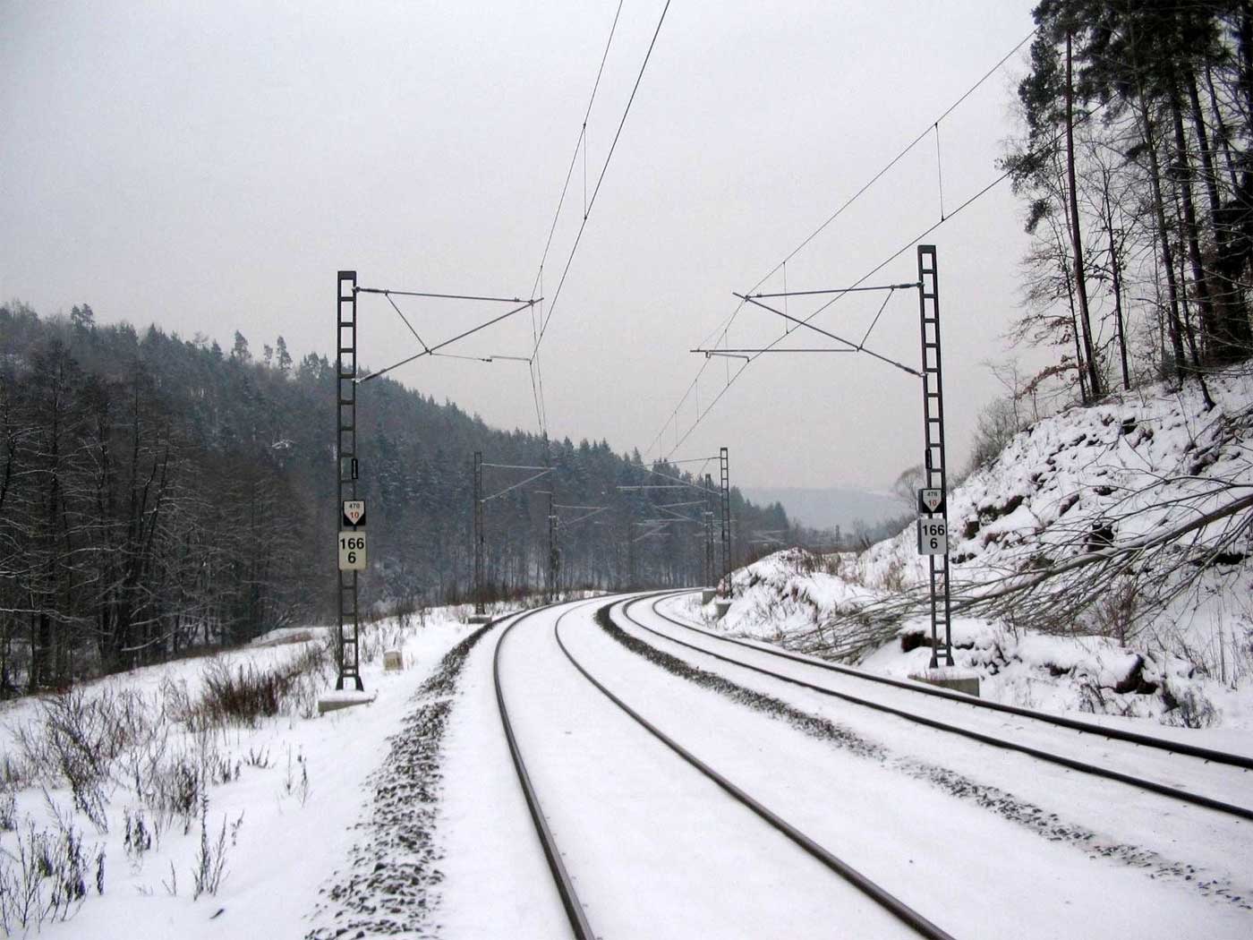 km 233,3 (Stein) und km 233,4 (Tafel) zwischen Tršnice (Tirschnitz) und Cheb (Eger) - Blick Richtung Cheb (Eger)
