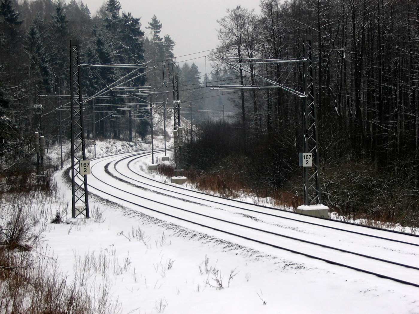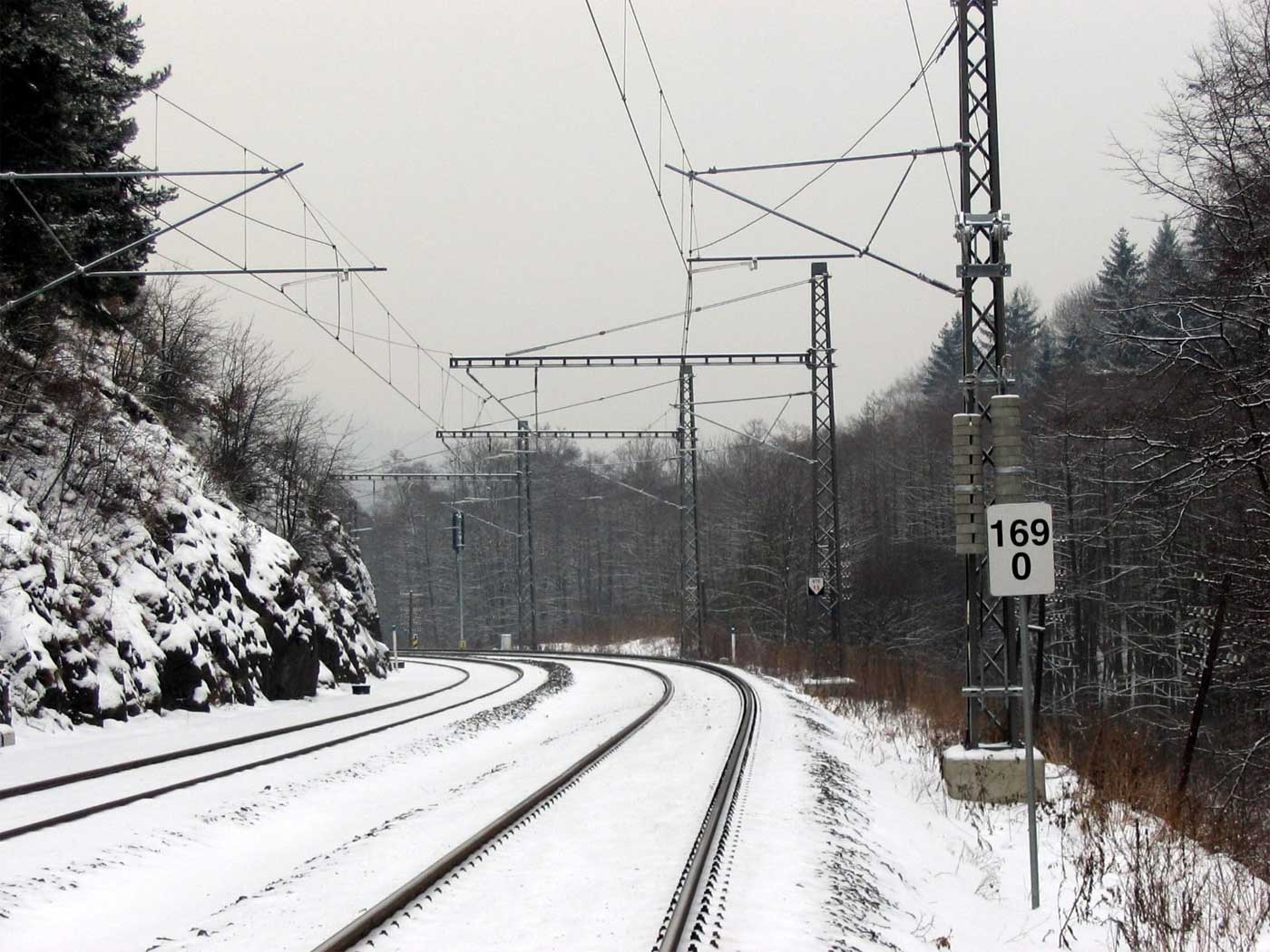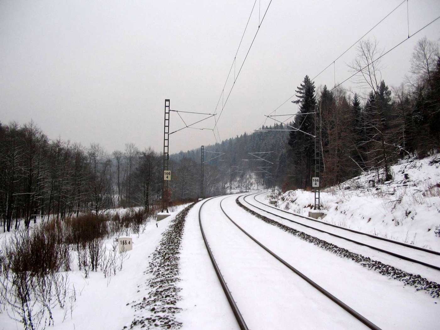 km 233,3 (Stein) und km 233,4 (Tafel) zwischen Tršnice (Tirschnitz) und Cheb (Eger) - Blick Richtung Cheb (Eger)