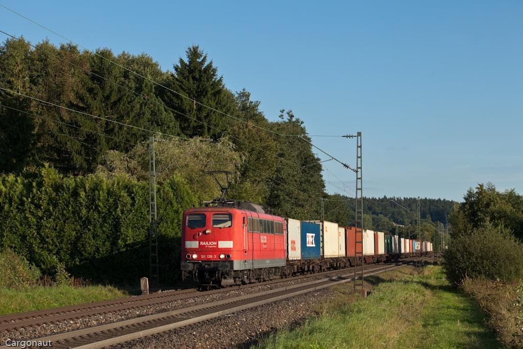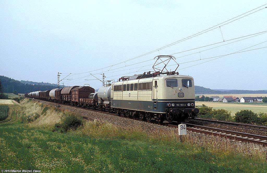 km 34,0 vor Parsberg - 151 153 mit einem gemischten Güterzug