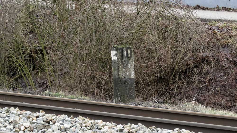 km 87,6 (Stein und Tafel) in Feucht - Blick Richtung Regensburg