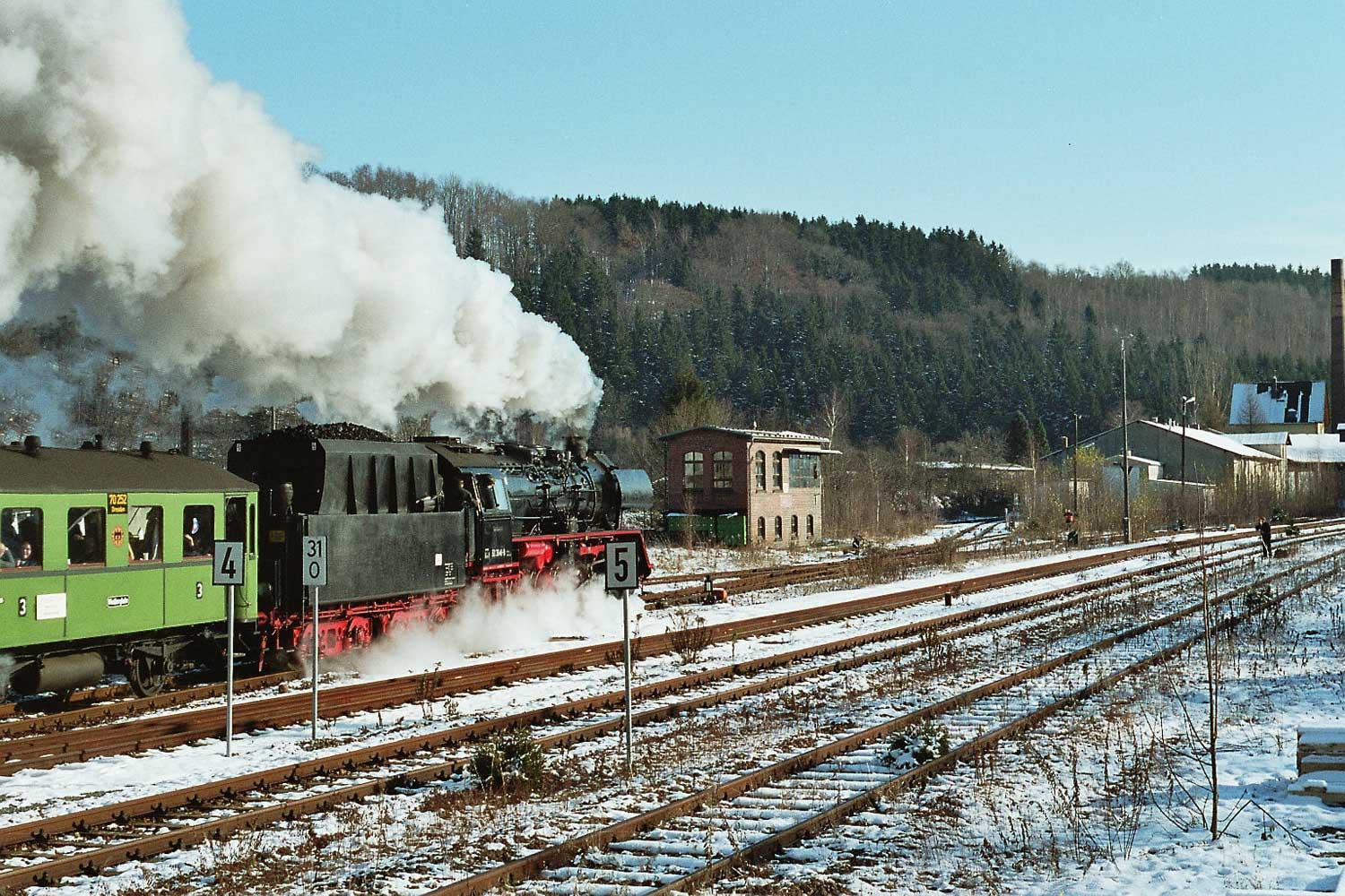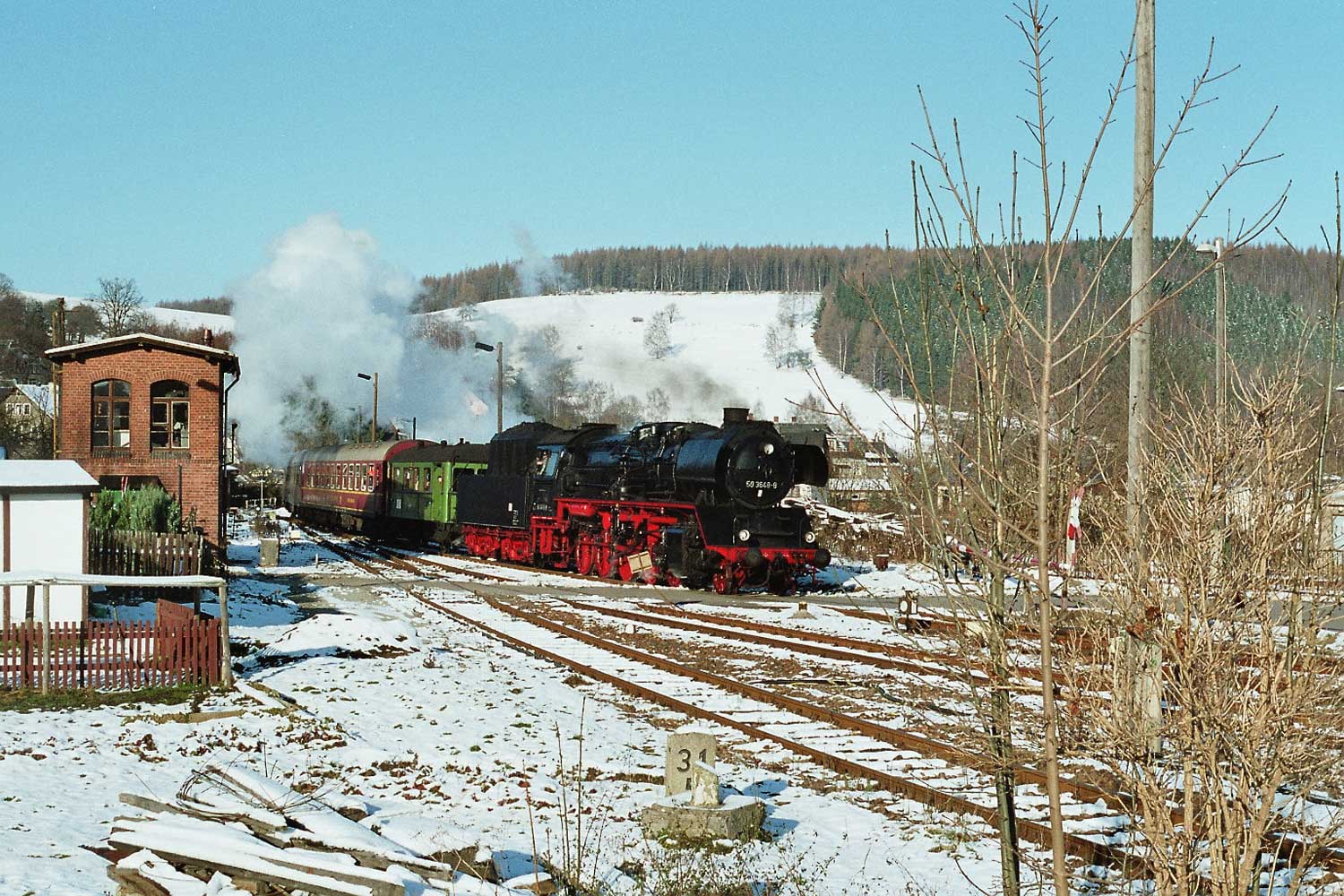 Pockau-Lengefeld | 31,23 | km 0,04 der Strecke Pockau-Lengefeld 0,04 - Olbernhau-Grünthal 12,89 - Neuhausen (Erzgeb) 22,12 (PN) |