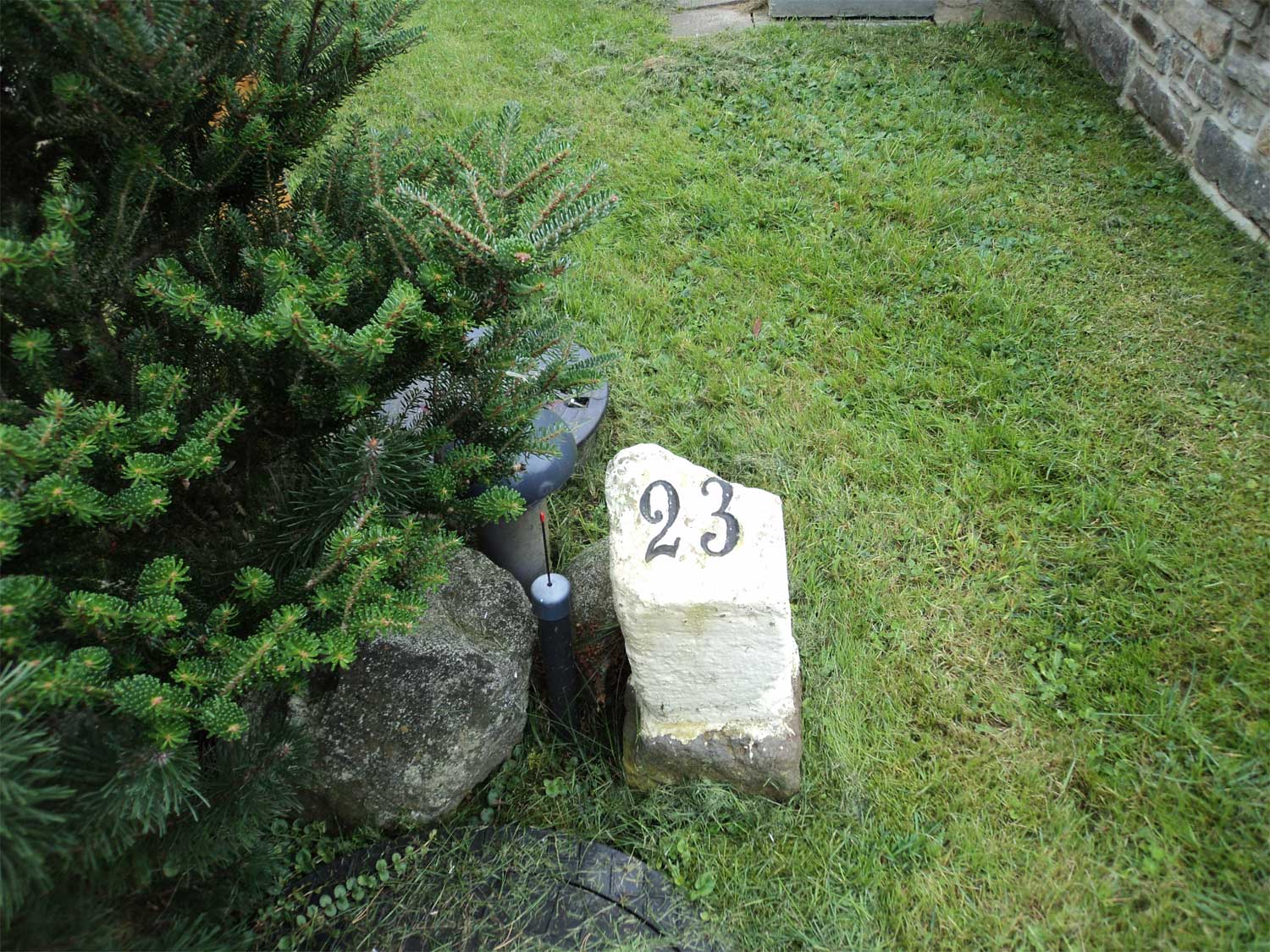 Heute nicht mehr am Originalstandort, sondern geborgen, vor dem Verfall gerettet und als Hausnummer verwendet.