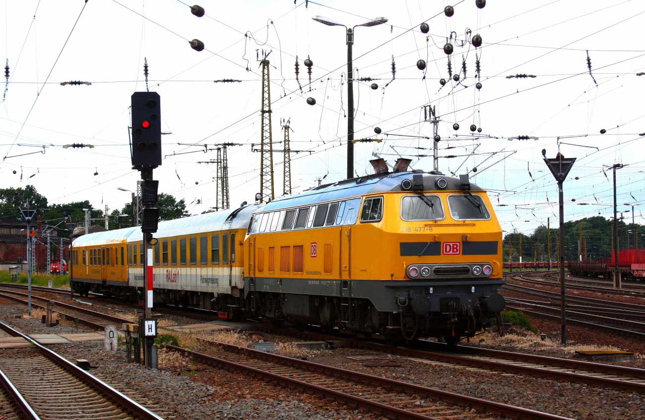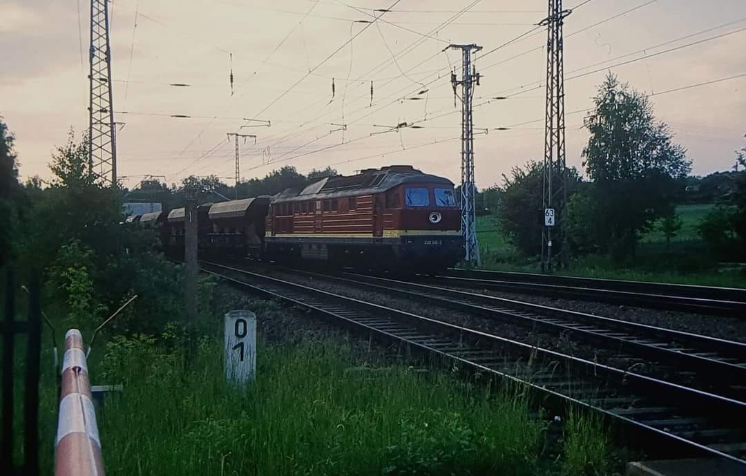km 0,1 und km 0,2 in Riesa - 218 477 mit Meßzug
