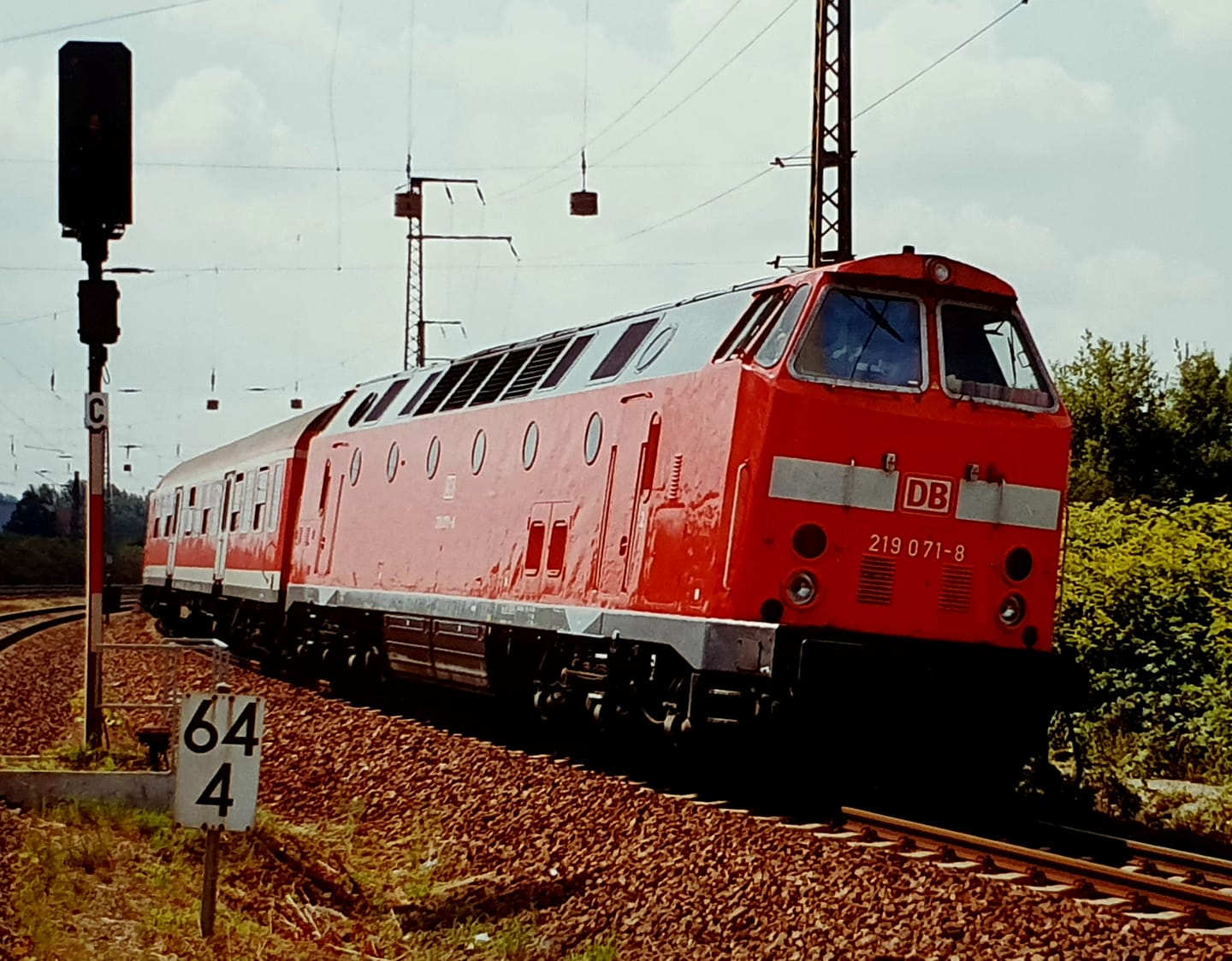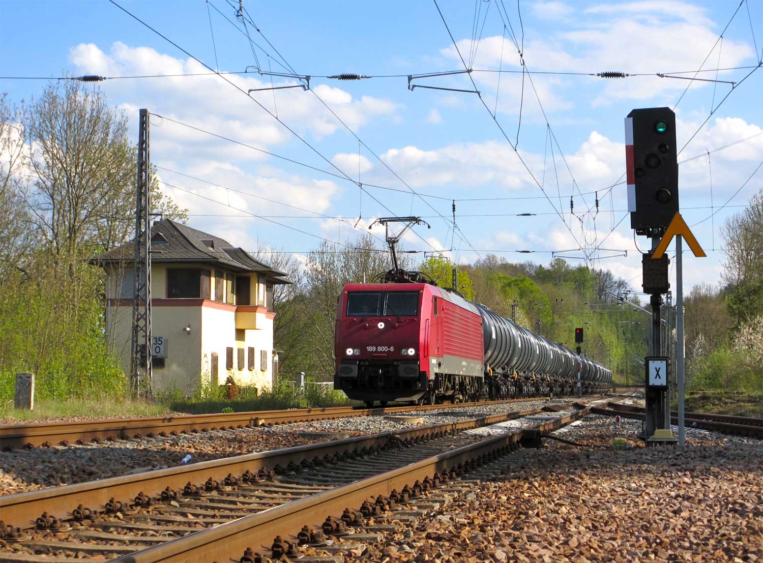 Die vordere km-Tafel wurde sicherlich aufgestellt, bevor die Tafeln an die Masten der Oberleitungsanlage kamen.
