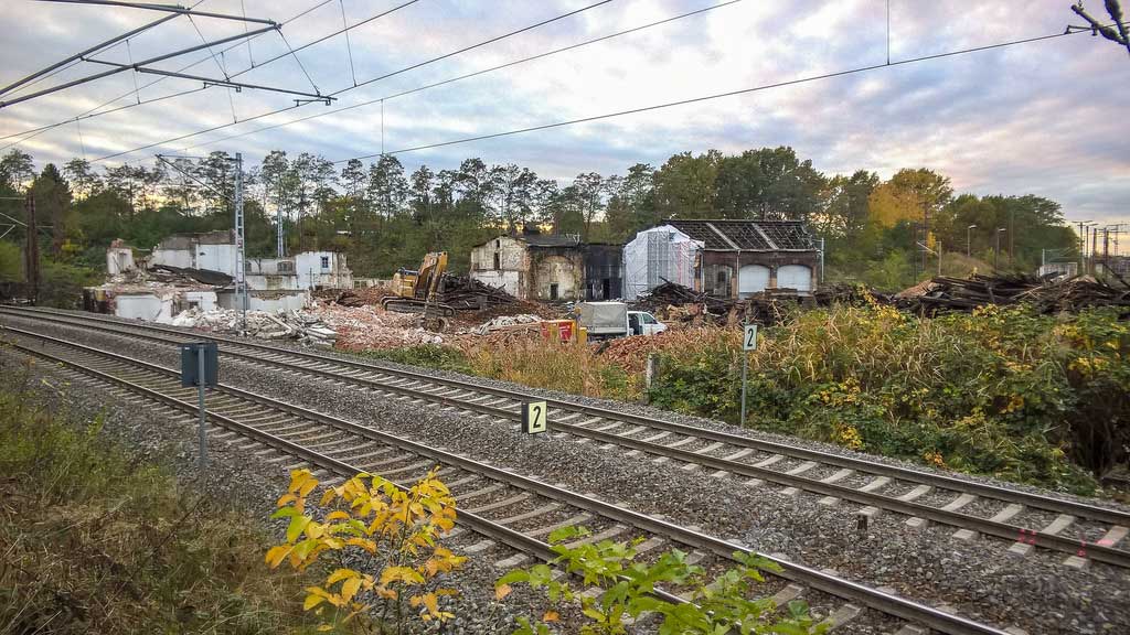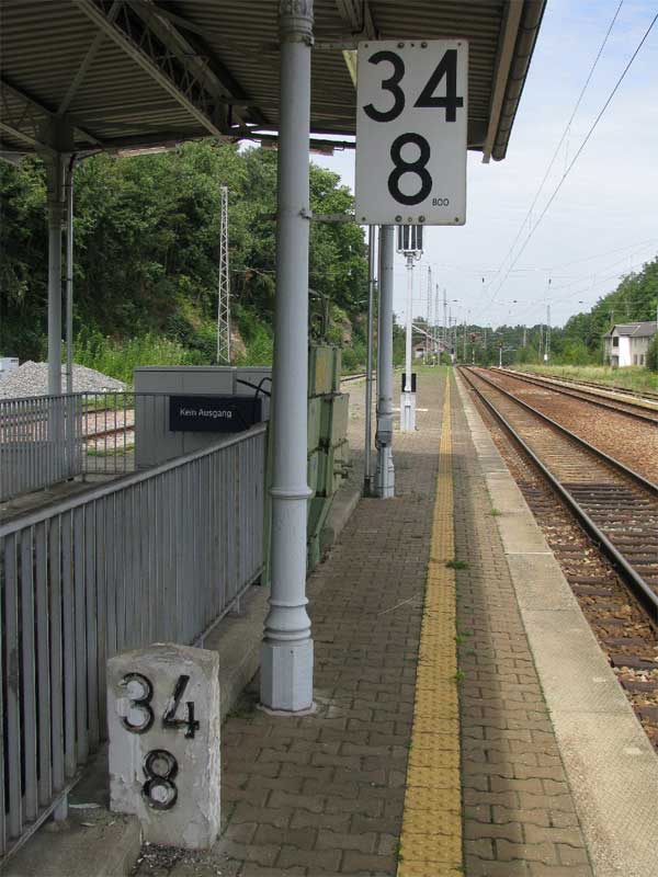 Der Kilometerstein scheint eher für den Bus als für die Bahn gedacht zu sein!