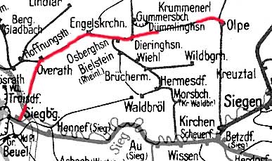 Siegburg 0,0 - Overath 20,45 - Dieringhausen 45,10 - Olpe 73,56 (1946)