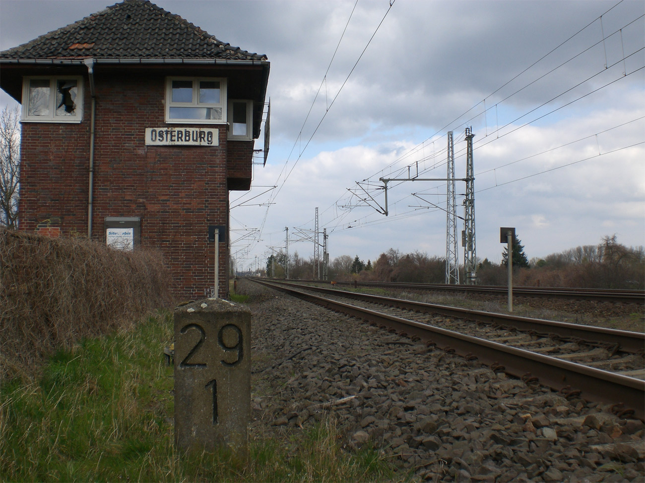 km 106,4 (links) gehört zur Strecke Berlin Lehrter Bf 0,0 - Stendal 105,11 - Oebisfelde 167,34 - Staatsgrenze DDR/BRD km 168,93 - Lehrte 239,39