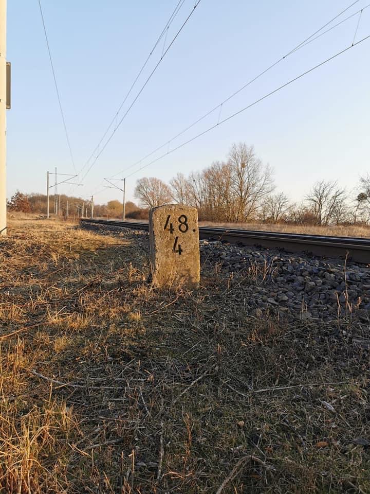 km 1,8 (rechts) gehört zum Richtungsgleis der Strecke