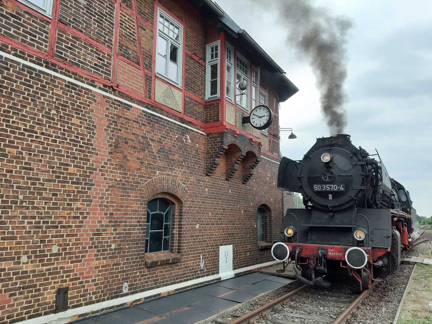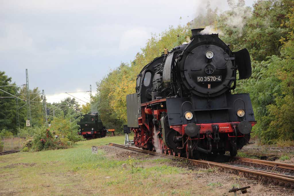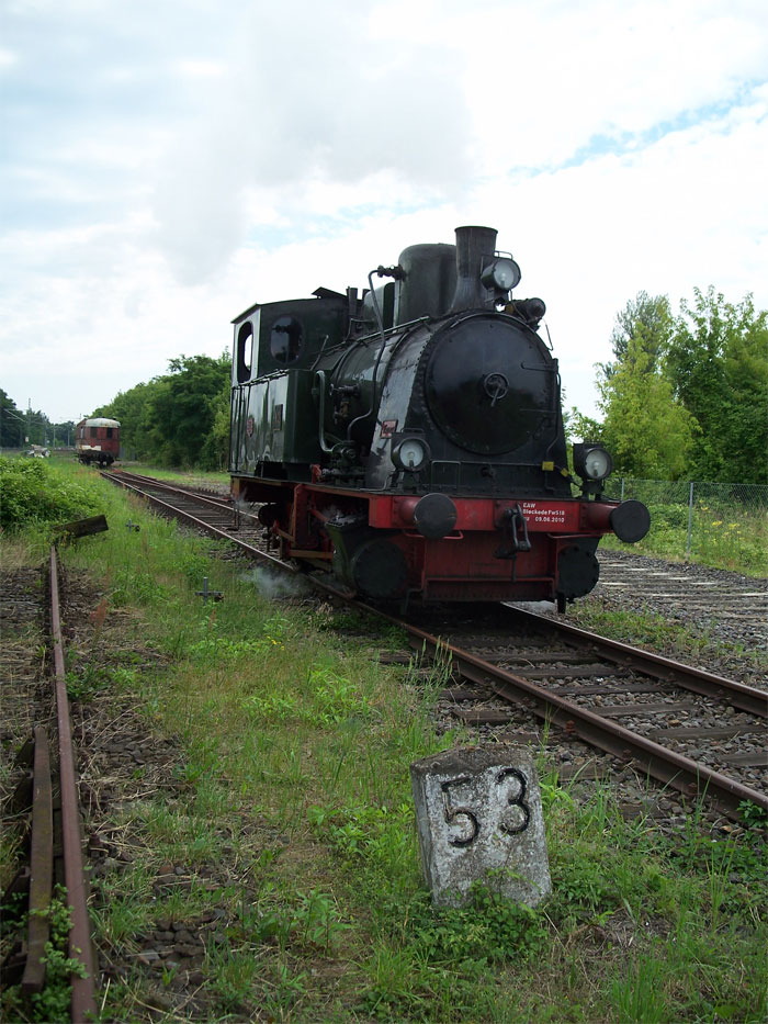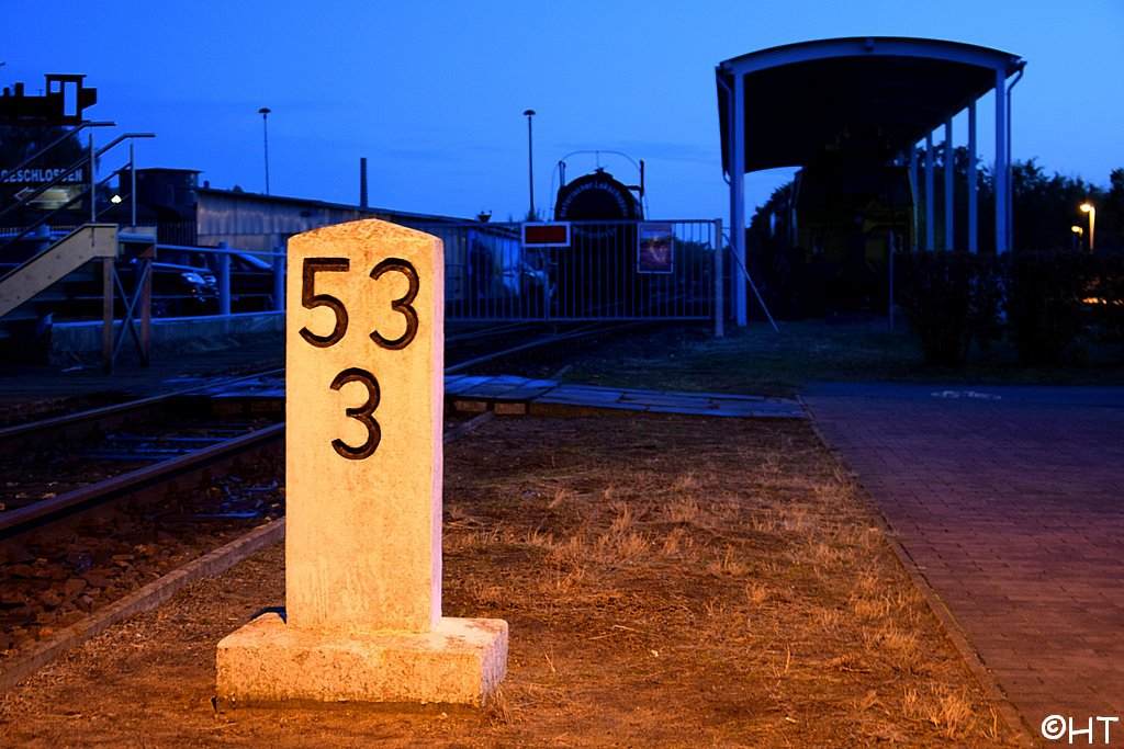 Neben der Lok befindet sich der Kilometerstein km 52,0 (?)