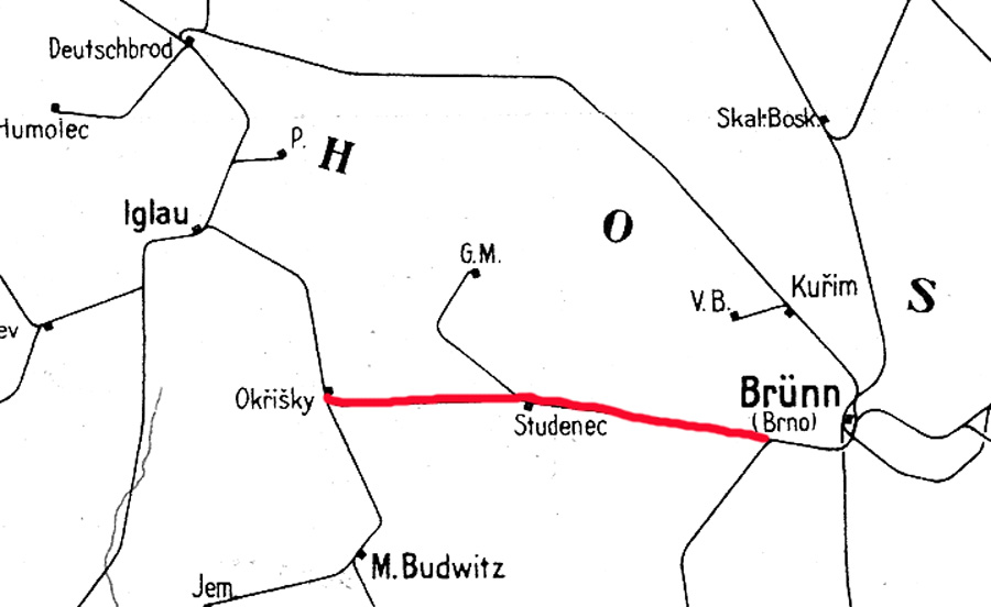 Strelitz / Střelice 0,0 - Studnitz / Studenec 35,806 - Klein Wartenberg / Okříšky 61,846