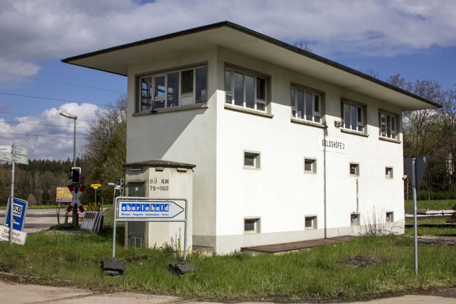 BÜ km 79,065 in Goldshöfe und Stellwerk 2